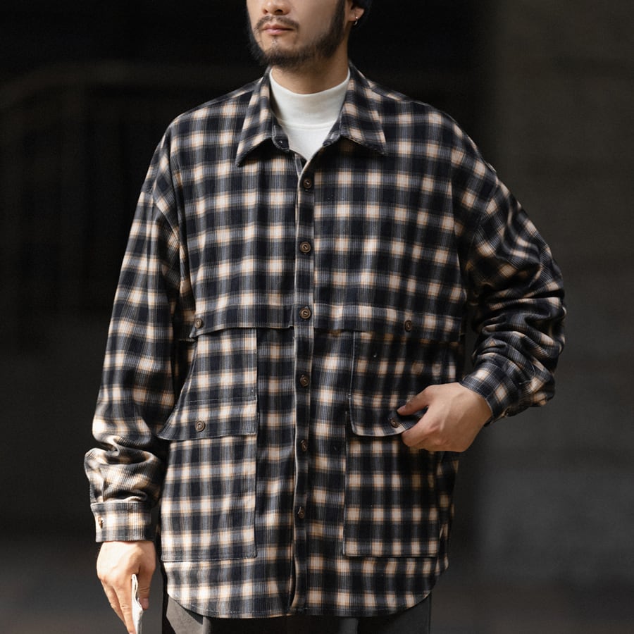 細めのコーデュロイ生地を使用したワイドシルエットのオンブレチェックシャツ。 細かいオンブレチェック柄にする事で程よくクリーンな印象に仕上がっています。 マルチポケットのディテールがポイントなりトレンド感のある一着。 ワイドシルエットパンツとのスタイリングがオススメです。 ■ color オレンジ ブルー ■ material ポリエステル ■ size M / L / XL M :肩幅59cm 袖丈56cm 胸囲136cm 着丈79cm L :肩幅60cm 袖丈57cm 胸囲140cm 着丈81cm XL :肩幅61cm 袖丈58cm 胸囲144cm 着丈83cm ※採寸方法により多少の誤差がある場合がございます ■モデル身長:178cm ■着用サイズ : XL [ 商品管理番号:a-1058] 【お買い物にあたっての注意事項】 ご購入前にこちらをご覧ください。 https://store.path-online.shop/about ▶<PATH>TOP PAGEから、新商品やお得な情報をチェック! https://store.path-online.shop/ ▶【Instagram】公式インスタグラムページはこちら。 https://www.instagram.com/path_official_jp/