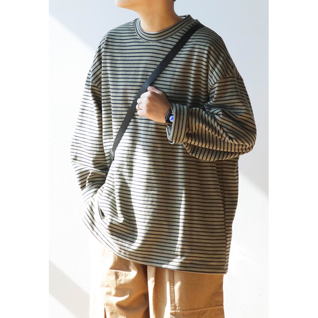 しっかりとしたルーズシルエットのボーダーカットソー。 ルーズシルエットにしながらもだらしいなくないバランスに仕上げています。 ワイドシルエットのパンツと相性が良く、袖をロースアップした着こなしもオススメです。 ■ color グリーン ■ material コットン ■ size S / M / L / XL / 2XL S :肩幅55cm 袖丈50cm 胸囲120cm 着丈69cm M :肩幅57cm 袖丈51cm 胸囲124cm 着丈71cm L :肩幅59cm 袖丈52cm 胸囲128cm 着丈73cm XL :肩幅61cm 袖丈53cm 胸囲132cm 着丈75cm 2XL :肩幅63cm 袖丈54cm 胸囲136cm 着丈79cm ※採寸方法により多少の誤差がある場合がございます ■モデル身長:168cm ■着用サイズ : S [ 商品管理番号:a-1081] 【お買い物にあたっての注意事項】 ご購入前にこちらをご覧ください。 https://store.path-online.shop/about ▶<PATH>TOP PAGEから、新商品やお得な情報をチェック! https://store.path-online.shop/ ▶【Instagram】公式インスタグラムページはこちら。 https://www.instagram.com/path_official_jp/