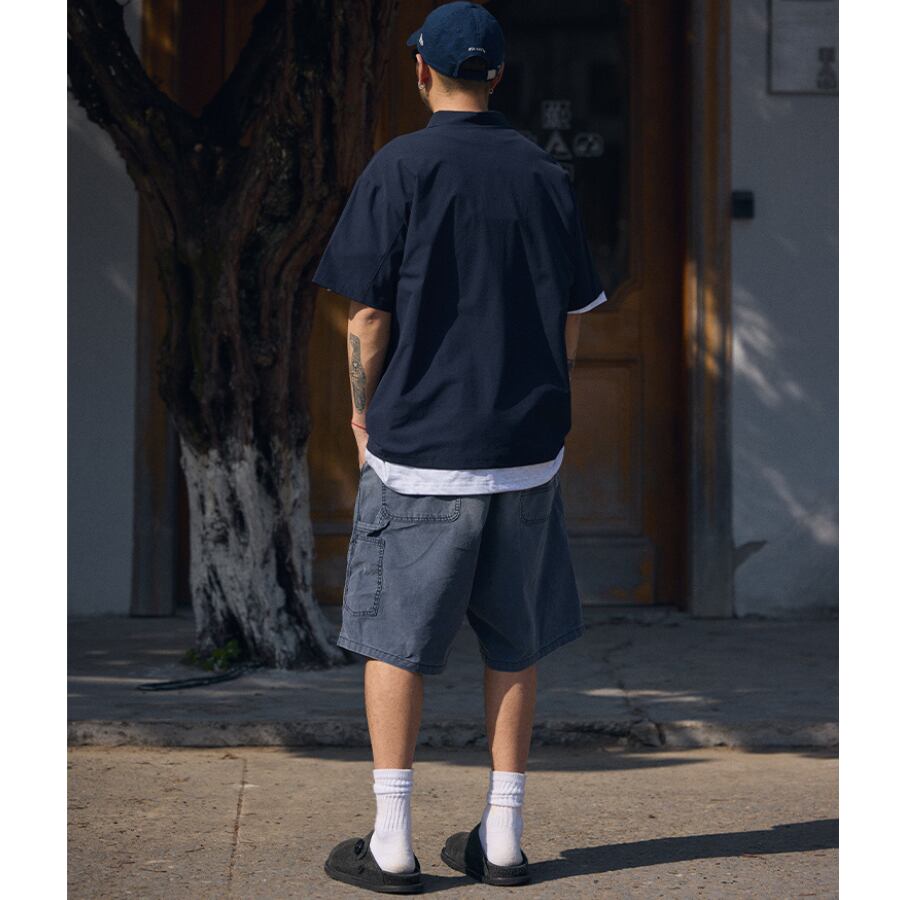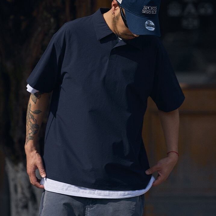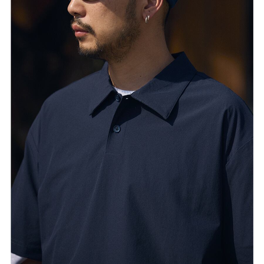 プルオーバー仕様のワイドシルエットシャツ。