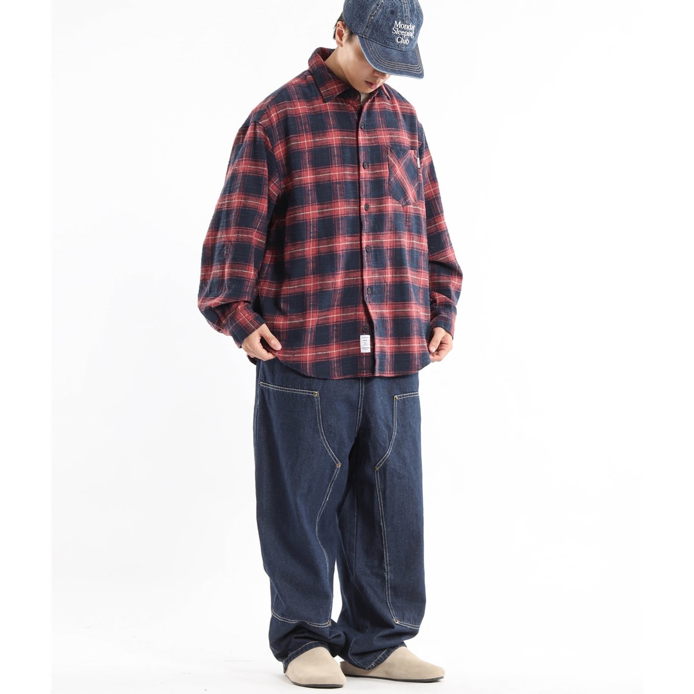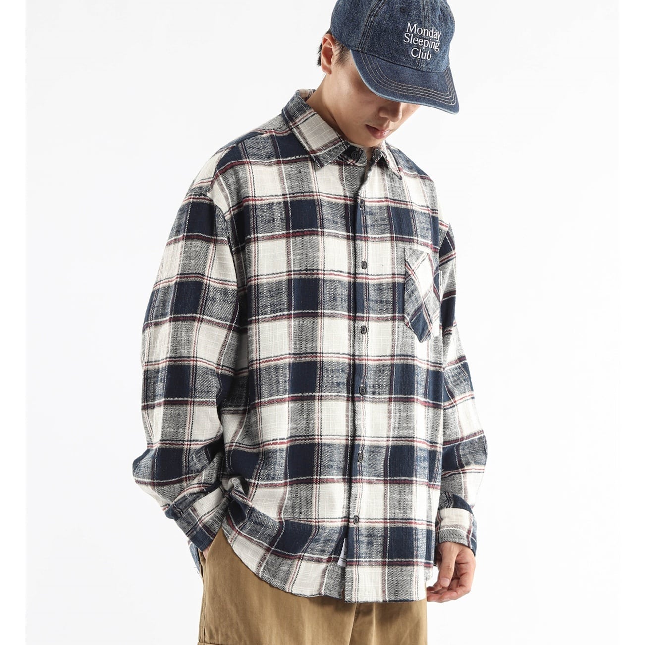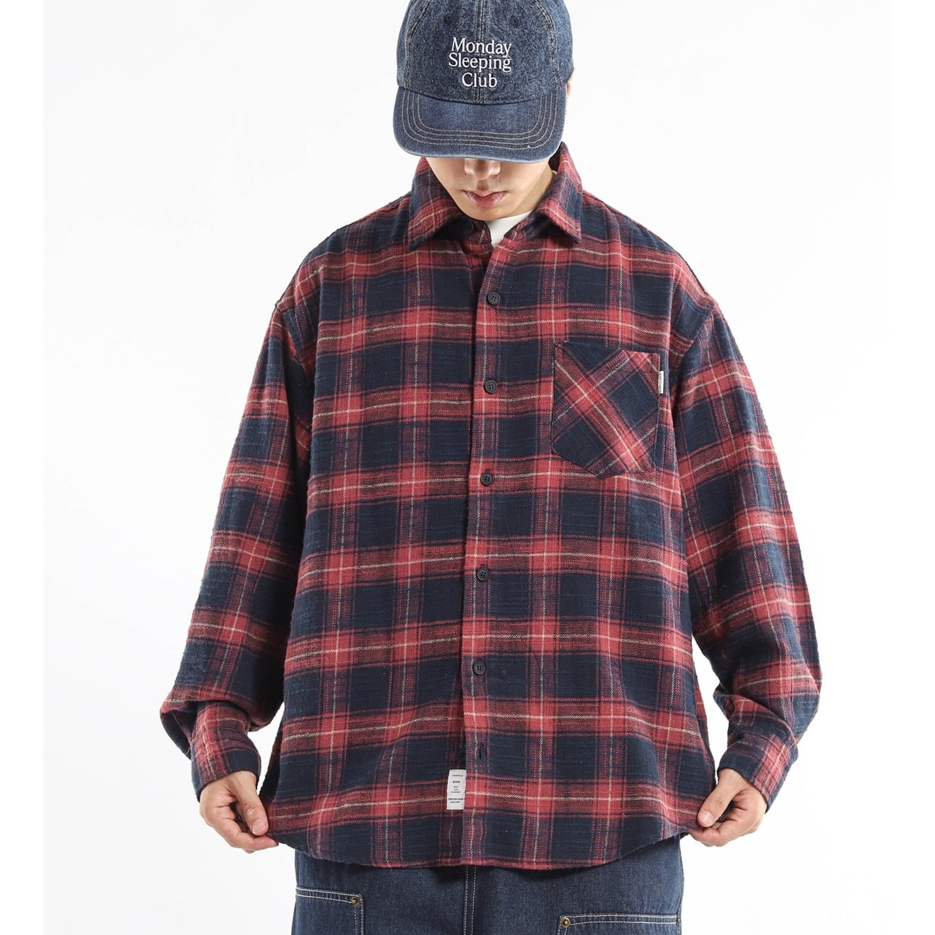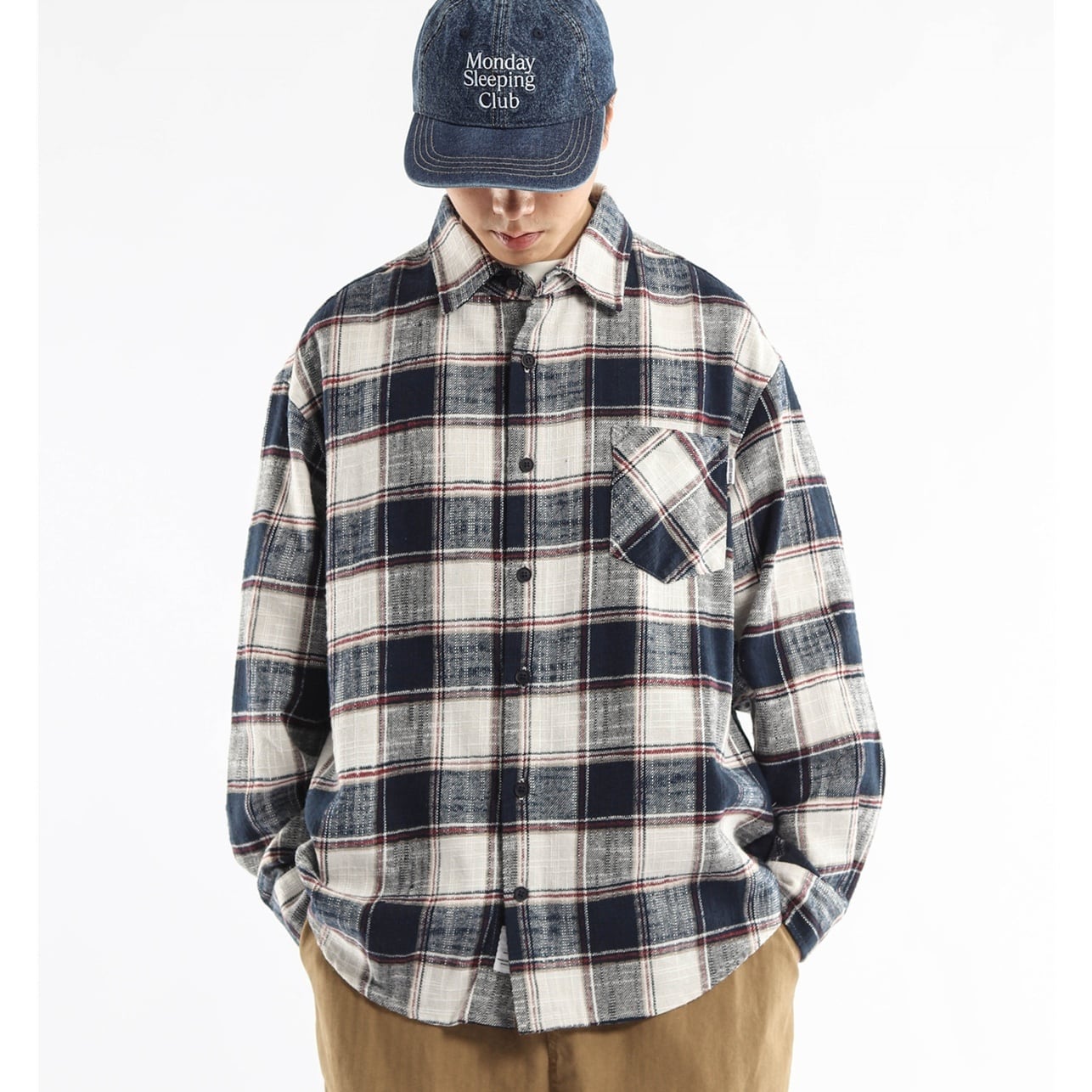 程よくラフな風合いと、落ち着いた配色が魅力のチェック柄シャツ。 ゆとりのあるシルエットで、羽織りとしてもシャツ一枚でも様になるデザインです。 胸ポケットの柄合わせや、自然な色落ちを感じるウォッシュ感もポイント。 デニムやチノパンと合わせたカジュアルなコーディネートから、スラックスと合わせた抜け感のある着こなしまで、幅広く活躍します。 ■ color レッド ネイビー ■ material コットン ポリエステル ■ size M / L / XL / 2XL M :肩幅54cm 袖丈56.5cm 胸囲125cm 着丈73cm L :肩幅55.5cm 袖丈58cm 胸囲129cm 着丈75cm XL :肩幅57cm 袖丈59.5cm 胸囲133cm 着丈77cm 2XL :肩幅58.5cm 袖丈61cm 胸囲137cm 着丈79cm ※採寸方法により多少の誤差がある場合がございます ■モデル身長:176cm ■着用サイズ : L [ 商品管理番号:a-1165] 【お買い物にあたっての注意事項】 ご購入前にこちらをご覧ください。 https://store.path-online.shop/about ▶<PATH>TOP PAGEから、新商品やお得な情報をチェック! https://store.path-online.shop/ ▶【Instagram】公式インスタグラムページはこちら。 https://www.instagram.com/path_official_jp/