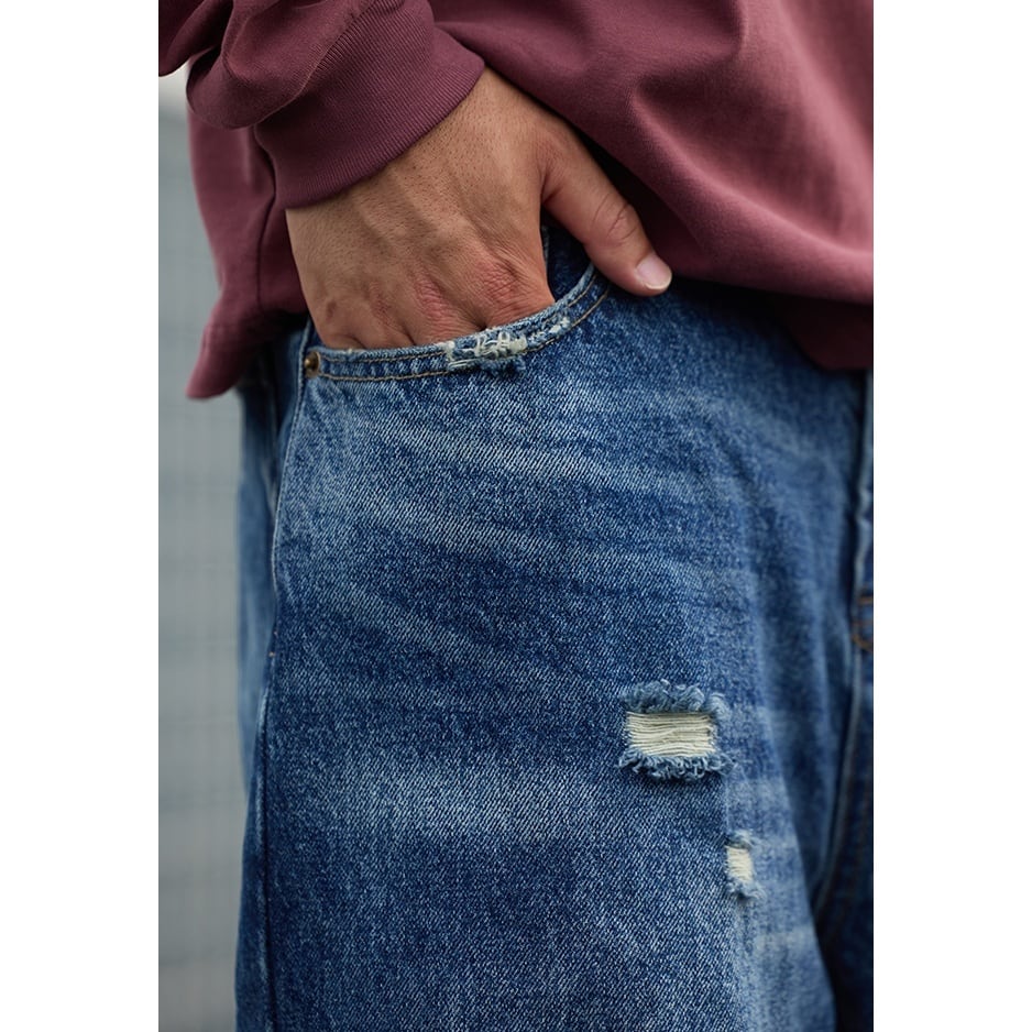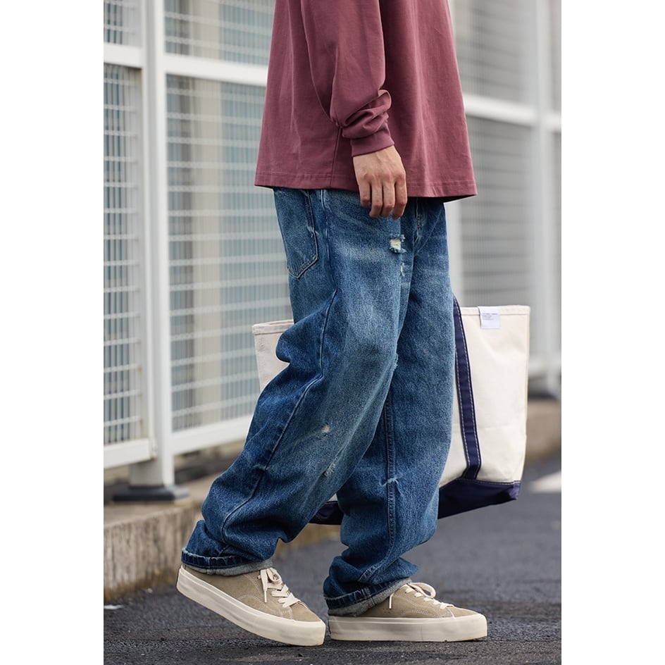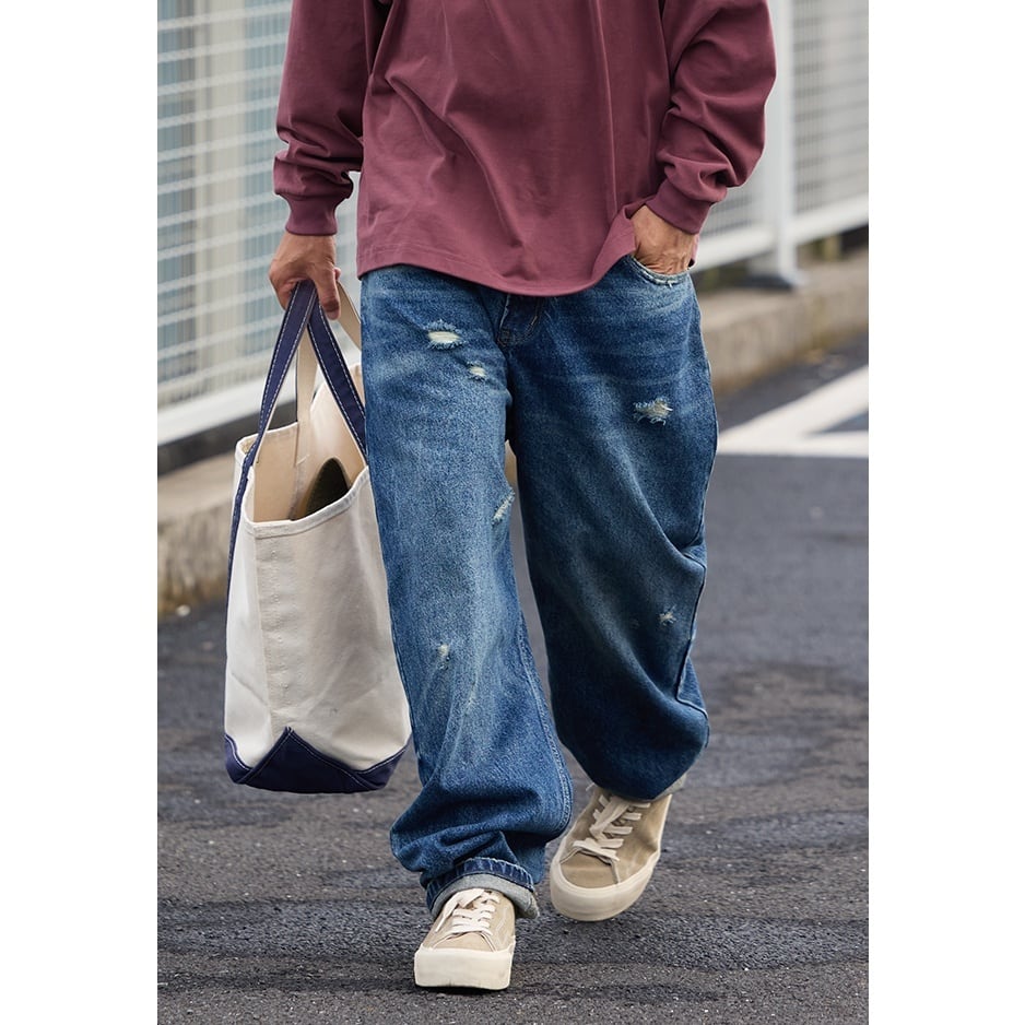 こなれ感たっぷりのルーズなシルエットが魅力のダメージジーンズ。 ゆったりとしたワイドなラインと、ランダムに施されたダメージ加工が絶妙にマッチし、抜け感のあるストリートスタイルを演出します。 ラフに穿くだけで雰囲気が出る一本で、スウェットやロングTシャツとの組み合わせも好相性です。 スニーカーとのバランスも取りやすく、デイリーユースに活躍するアイテムです。 ■ color ブルー ■ material コットン ※色落ちの可能性がある為、洗濯は単品洗い推奨しております ※素材特性上、白色等の薄めの色味のアイテムに色移りする可能性がございます ■ size S / M / L / XL / 2XL S :ウエスト76cm ヒップ108cm 総丈100cm M :ウエスト80cm ヒップ112cm 総丈102cm L :ウエスト84cm ヒップ116cm 総丈104cm XL :ウエスト88cm ヒップ120cm 総丈106cm 2XL :ウエスト92cm ヒップ124cm 総丈108cm ※採寸方法により多少の誤差がある場合がございます ■モデル身長:175cm ■着用サイズ : L [ 商品管理番号:a-1169] 【お買い物にあたっての注意事項】 ご購入前にこちらをご覧ください。 https://store.path-online.shop/about ▶<PATH>TOP PAGEから、新商品やお得な情報をチェック! https://store.path-online.shop/ ▶【Instagram】公式インスタグラムページはこちら。 https://www.instagram.com/path_official_jp/