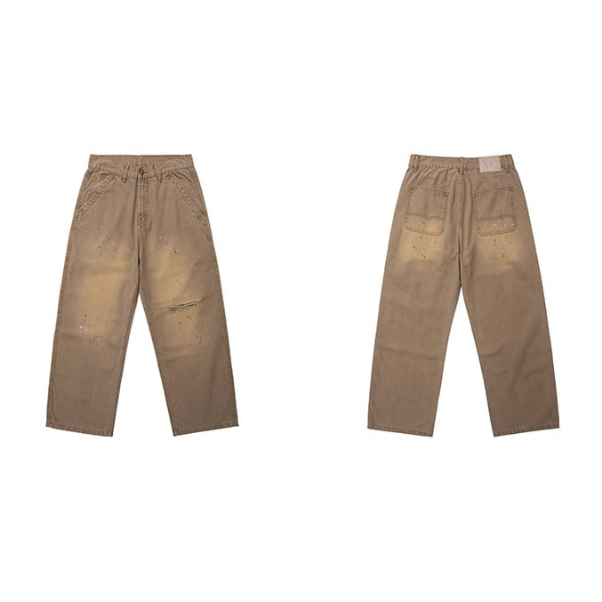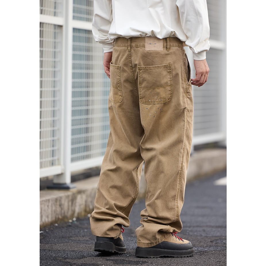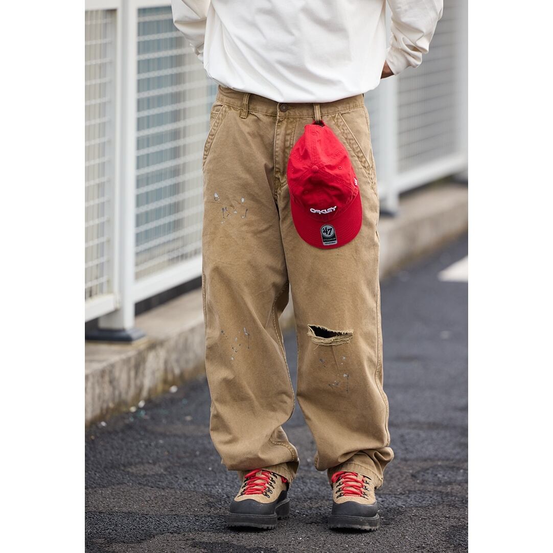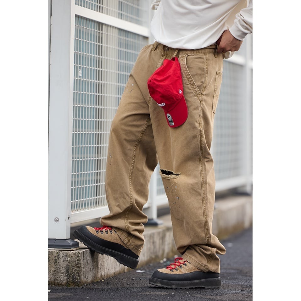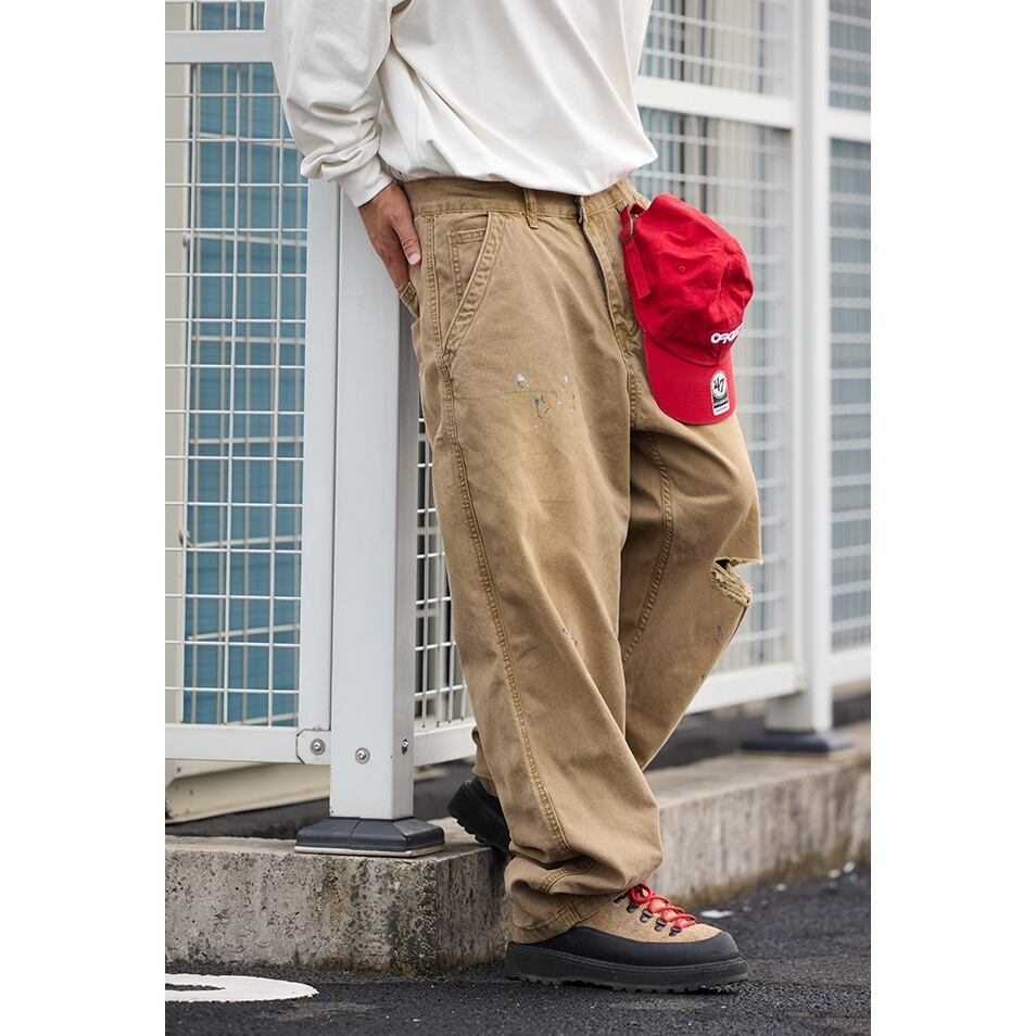 ワークテイストをベースに、ラフなこなれ感を加えたルーズシルエットのダメージパンツ。 大きめのバックポケットや大胆なダメージ加工、ペンキ飛びのようなデザインが、無骨でクールな雰囲気を演出します。 ゆったりとした穿き心地で、スウェットやフーディと合わせたストリートスタイルはもちろん、シャツで抜け感を出すコーディネートにもおすすめです。 いつものスタイリングに、遊び心と存在感をプラスしてくれる1本です。 ■ color ベージュ ■ material コットン ■ size S / M / L / XL / 2XL S :ウエスト76cm ヒップ110cm 総丈100cm M :ウエスト80cm ヒップ114cm 総丈102cm L :ウエスト84cm ヒップ118cm 総丈104cm XL :ウエスト88cm ヒップ122cm 総丈106cm 2XL :ウエスト92cm ヒップ126cm 総丈108cm ※採寸方法により多少の誤差がある場合がございます ■モデル身長:175cm ■着用サイズ : L [ 商品管理番号:a-1170] 【お買い物にあたっての注意事項】 ご購入前にこちらをご覧ください。 https://store.path-online.shop/about ▶<PATH>TOP PAGEから、新商品やお得な情報をチェック! https://store.path-online.shop/ ▶【Instagram】公式インスタグラムページはこちら。 https://www.instagram.com/path_official_jp/