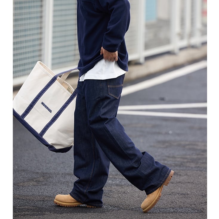 シンプルで合わせやすい、太めストレートシルエットのワイドデニムパンツ。 ゆったりとしたラインが程よく抜け感を演出し、カジュアルな着こなしにもクリーンな印象をプラスします。 主張しすぎないデザインなので、スウェットやシャツ、アウターなど幅広いアイテムとのコーディネートに馴染みます。 一本持っておくと心強い、デイリーに活躍するベーシックアイテム。 ■ color ネイビー ■ material コットン リヨセル ※色落ちの可能性がある為、洗濯は単品洗い推奨しております ※素材特性上、白色等の薄めの色味のアイテムに色移りする可能性がございます ■ size S / M / L / XL S :ウエスト78cm 総丈102cm M :ウエスト82cm 総丈104cm L :ウエスト86cm 総丈106cm XL :ウエスト90cm 総丈108cm ※採寸方法により多少の誤差がある場合がございます ■モデル身長:175cm ■着用サイズ : L [ 商品管理番号:a-1172] 【お買い物にあたっての注意事項】 ご購入前にこちらをご覧ください。 https://store.path-online.shop/about ▶<PATH>TOP PAGEから、新商品やお得な情報をチェック! https://store.path-online.shop/ ▶【Instagram】公式インスタグラムページはこちら。 https://www.instagram.com/path_official_jp/