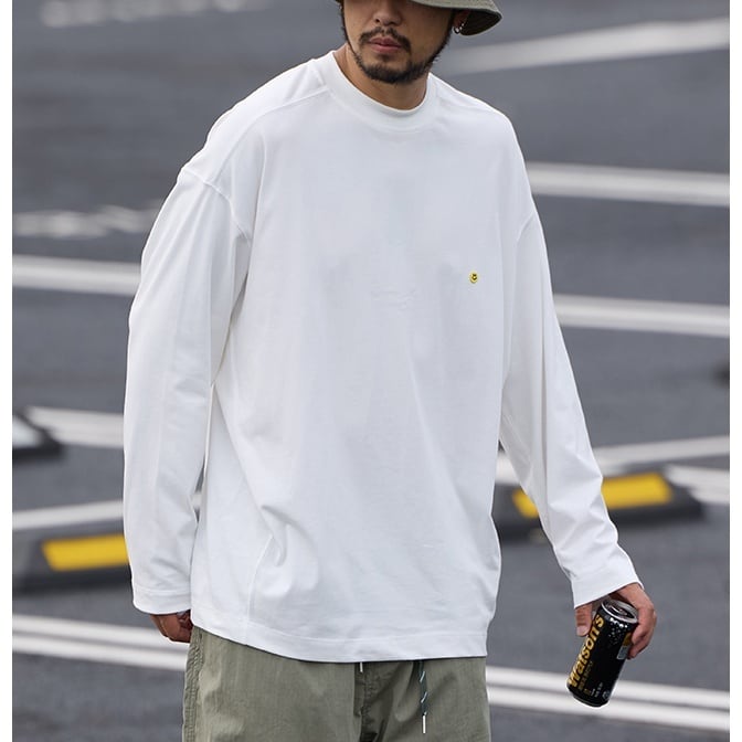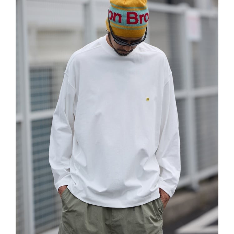 胸元にワンポイントのスマイル刺繍をあしらったロングスリーブTシャツ。 ベーシックなシルエットに、さりげない遊び心をプラスしたデザインが魅力です。 一枚でもレイヤードでも使いやすく、季節を問わず着まわせる万能なアイテムです。 カラーはターコイズ、パープル、ホワイトの3色展開。 気分に合わせて選べるカラーバリエーションで、デイリーコーディネートにちょうどいい抜け感を与えてくれます。 ■ color ブルー パープル ホワイト ■ material コットン ■ size S / M / L / XL / 2XL S :肩幅56.4cm 袖丈51cm 胸囲136cm 着丈65cm M :肩幅58.4cm 袖丈52cm 胸囲140cm 着丈67cm L :肩幅59cm 袖丈53cm 胸囲144cm 着丈69cm XL :肩幅60.4cm 袖丈54cm 胸囲148cm 着丈71cm 2XL :肩幅62.5cm 袖丈55cm 胸囲152cm 着丈73cm ※採寸方法により多少の誤差がある場合がございます ■モデル身長:175cm ■着用サイズ : L [ 商品管理番号:a-1173] 【お買い物にあたっての注意事項】 ご購入前にこちらをご覧ください。 https://store.path-online.shop/about ▶<PATH>TOP PAGEから、新商品やお得な情報をチェック! https://store.path-online.shop/ ▶【Instagram】公式インスタグラムページはこちら。 https://www.instagram.com/path_official_jp/