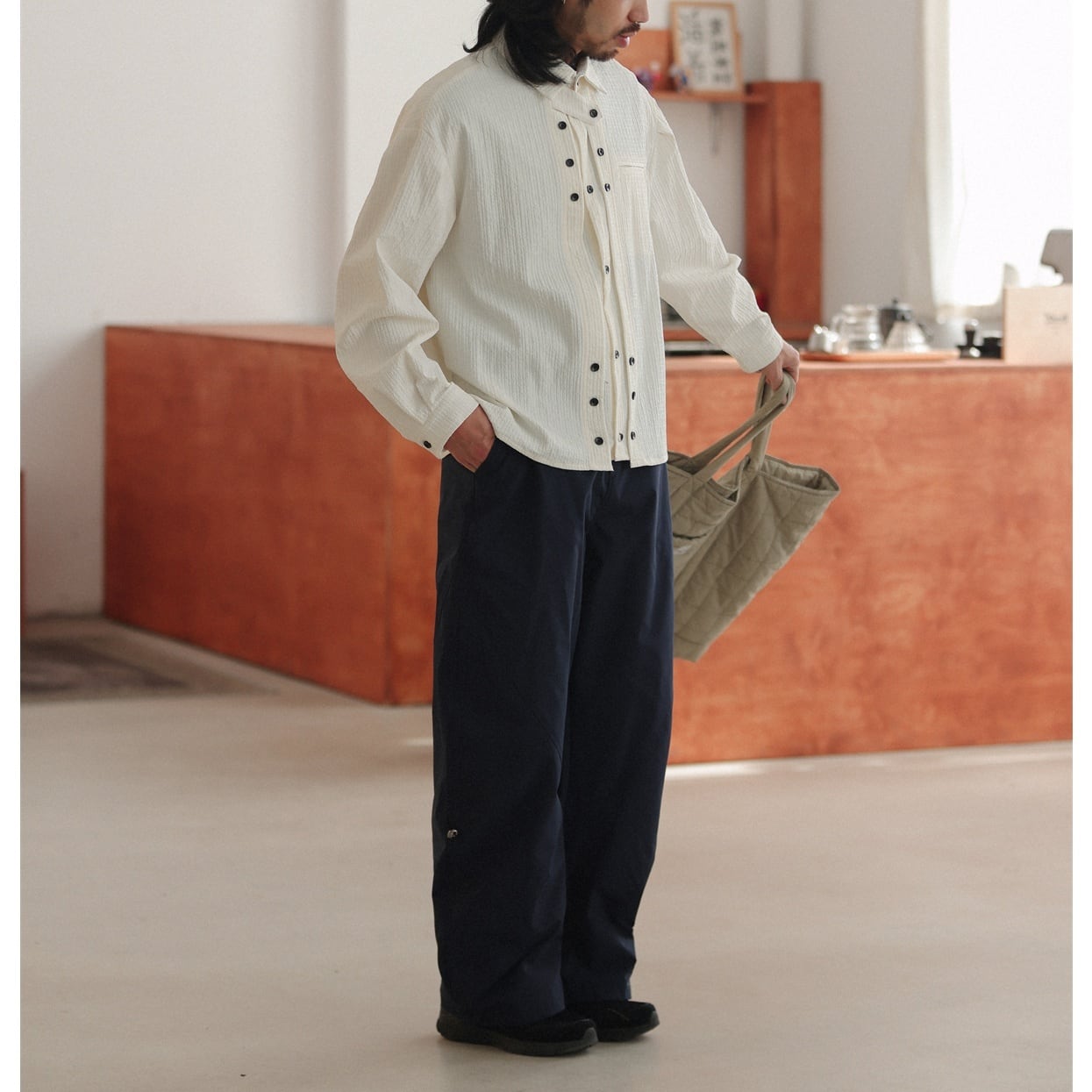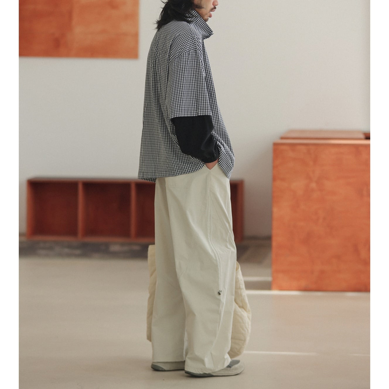クリーンな表情とアクティブな仕様が融合したワイドパンツ。 サイドにはジップ付きポケットや、裾のフィット感を調整できるドローコードを備え、実用性も抜群です。 ネイビーとオフホワイトの2色展開で、スタイルに合わせて選べます。 シティユースからライトなアウトドアシーンまで幅広く対応可能な一本です。 ■ color ネイビー オフホワイト ■ material ポリエステル ■ size M / L / XL / 2XL M :ウエスト78cm ヒップ107cm 総丈103cm L :ウエスト82cm ヒップ111cm 総丈105cm XL :ウエスト86cm ヒップ115cm 総丈107cm 2XL :ウエスト90cm ヒップ119cm 総丈109cm ※採寸方法により多少の誤差がある場合がございます ■モデル身長:178cm ■着用サイズ : XL [ 商品管理番号:a-1176] 【お買い物にあたっての注意事項】 ご購入前にこちらをご覧ください。 https://store.path-online.shop/about ▶<PATH>TOP PAGEから、新商品やお得な情報をチェック! https://store.path-online.shop/ ▶【Instagram】公式インスタグラムページはこちら。 https://www.instagram.com/path_official_jp/