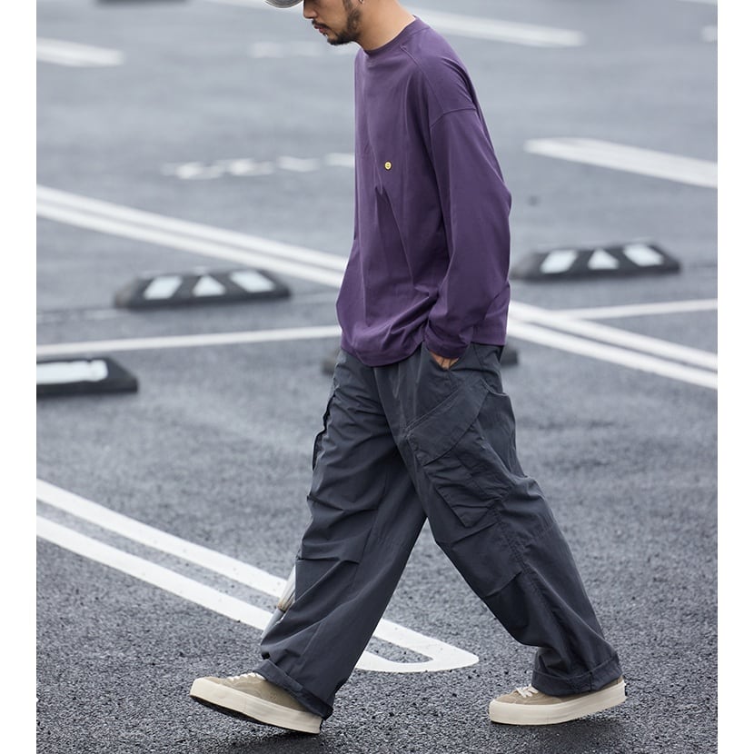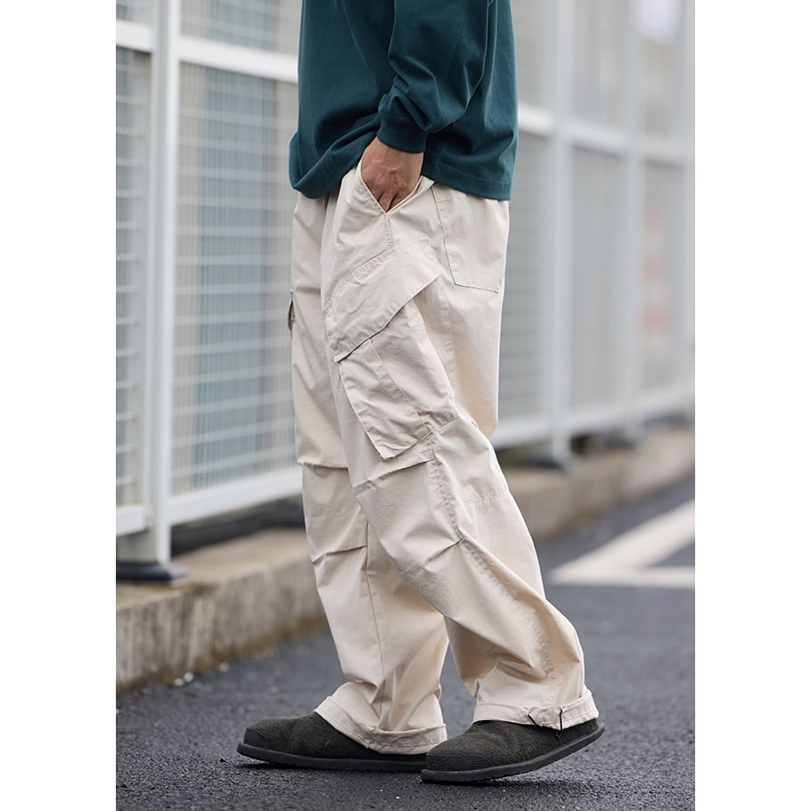 立体感のあるカーゴポケットがアクセントになった、リラックス感漂うワイドパンツ。 程よくボリュームのあるシルエットで、ストリートにもアウトドアにも馴染む一本です。 大きめのサイドポケットは機能性だけでなく、デザインのアクセントとしても存在感を発揮します。 ベーシックカラーから差し色まで揃った4色展開で、日常のコーディネートに取り入れやすいアイテムです。 ■ color ベージュ オリーブ ネイビー グレー ■ material コットン ナイロン ■ size S / M / L / XL S :ウエスト76cm 総丈100cm M :ウエスト80cm 総丈102cm L :ウエスト84cm 総丈104cm XL :ウエスト88cm 総丈106cm ※ウエストは伸縮性がございます ※採寸方法により多少の誤差がある場合がございます ■モデル身長:175cm ■着用サイズ : M [ 商品管理番号:a-1175] 【お買い物にあたっての注意事項】 ご購入前にこちらをご覧ください。 https://store.path-online.shop/about ▶<PATH>TOP PAGEから、新商品やお得な情報をチェック! https://store.path-online.shop/ ▶【Instagram】公式インスタグラムページはこちら。 https://www.instagram.com/path_official_jp/