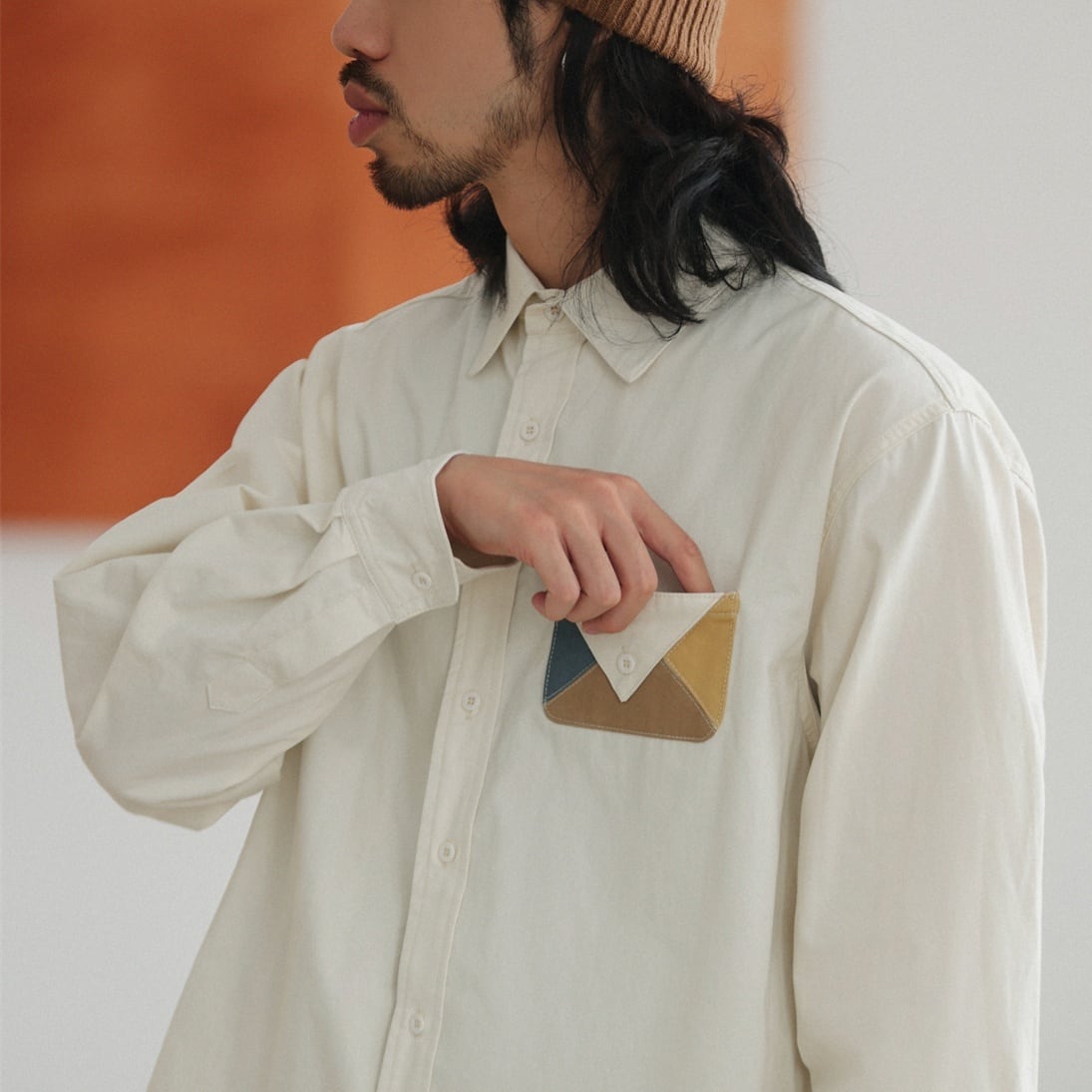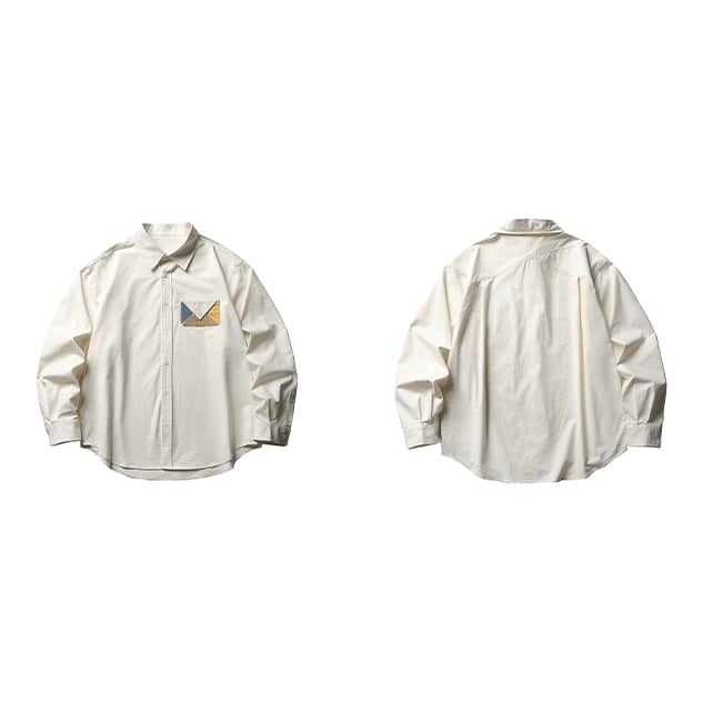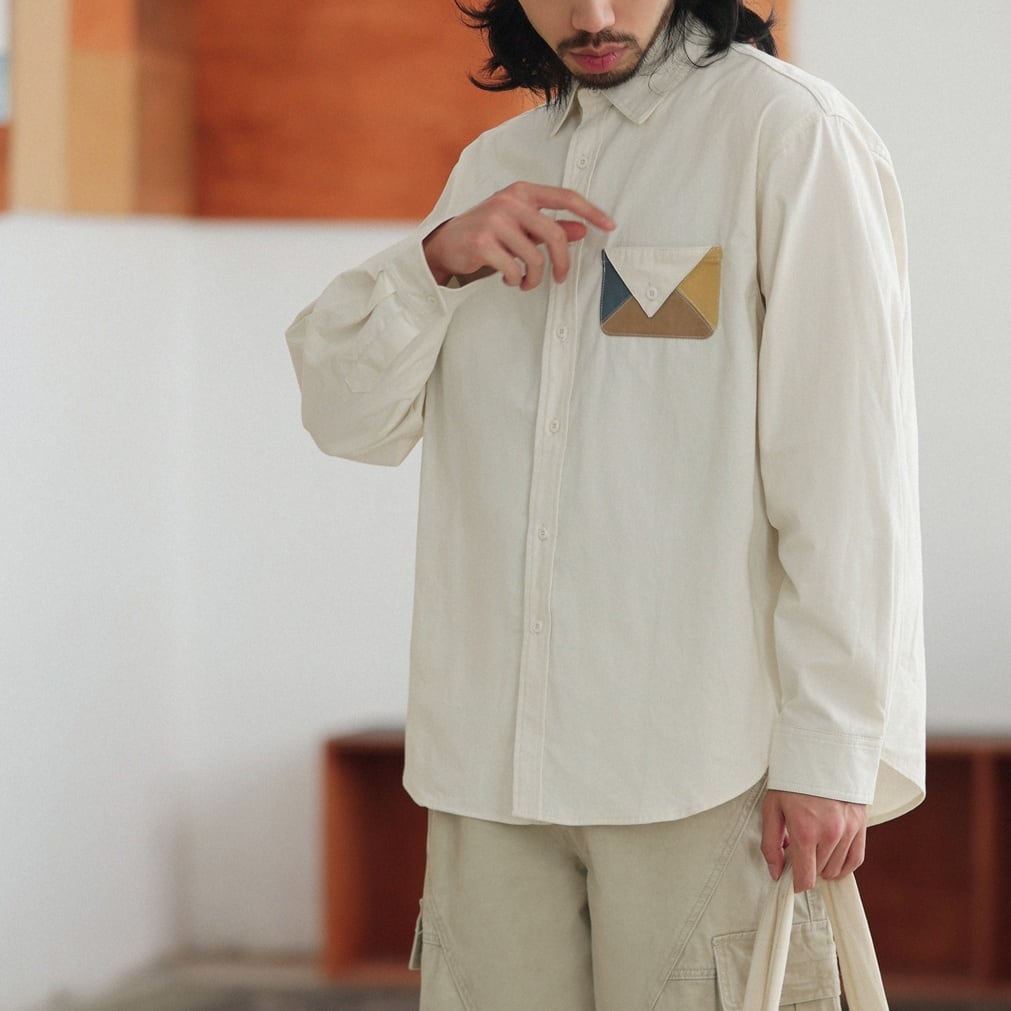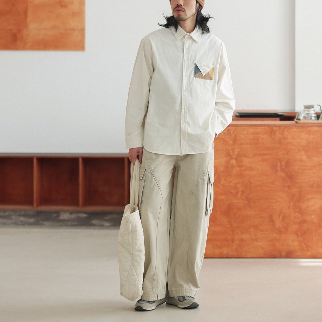 胸元にあしらったマルチカラーのパッチポケットが目を引く、さりげなく遊び心を効かせたシャツ。 ベースはシンプルなシルエットながら、封筒のようなフラップデザインがスタイリングのアクセントに。 柔らかいナチュラルカラーを基調に、ブルー・ブラウン・イエローの配色が映える仕上がりです。 デニムやチノパンと合わせるだけで雰囲気が出る、カジュアル使いにうれしい一枚。 ほどよくリラックスしたサイズ感で、インナー使いから羽織りまで幅広く活躍してくれます。 ■ color オフホワイト ■ material コットン ■ size M / L / XL / 2XL M :肩幅51.6cm 袖丈58cm 胸囲126cm 着丈72cm L :肩幅52.8cm 袖丈59.5cm 胸囲130cm 着丈74cm XL :肩幅54cm 袖丈61cm 胸囲134cm 着丈76cm 2XL :肩幅55.2cm 袖丈62.5cm 胸囲136cm 着丈78cm ※採寸方法により多少の誤差がある場合がございます ■モデル身長:178cm ■着用サイズ : XL [ 商品管理番号:a-1180] 【お買い物にあたっての注意事項】 ご購入前にこちらをご覧ください。 https://store.path-online.shop/about ▶<PATH>TOP PAGEから、新商品やお得な情報をチェック! https://store.path-online.shop/ ▶【Instagram】公式インスタグラムページはこちら。 https://www.instagram.com/path_official_jp/