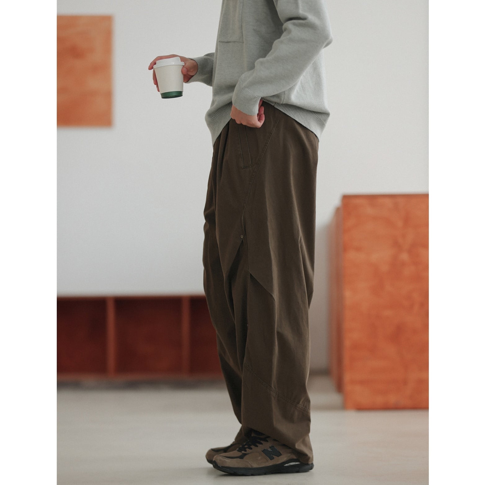 立体的な切り替えデザインが印象的なワイドパンツ。 膝部分のダーツやサイドのタックディテールが自然なボリュームを生み出し、個性的ながらも洗練されたシルエットに仕上がっています。 フロントとバックのミニマルなポケット配置で、すっきりとした表情に。 カジュアルからナチュラルなスタイルまで幅広く活躍する一本です。 ■ color オフホワイト ブラウン ■ material ポリエステル ■ size M / L / XL / 2XL M :ウエスト70cm ヒップ118cm 総丈108cm L :ウエスト74cm ヒップ122cm 総丈110cm XL :ウエスト78cm ヒップ126cm 総丈112cm 2XL :ウエスト80cm ヒップ130cm 総丈114cm ※採寸方法により多少の誤差がある場合がございます ■モデル身長:178cm ■着用サイズ : XL [ 商品管理番号:a-1185] 【お買い物にあたっての注意事項】 ご購入前にこちらをご覧ください。 https://store.path-online.shop/about ▶<PATH>TOP PAGEから、新商品やお得な情報をチェック! https://store.path-online.shop/ ▶【Instagram】公式インスタグラムページはこちら。 https://www.instagram.com/path_official_jp/