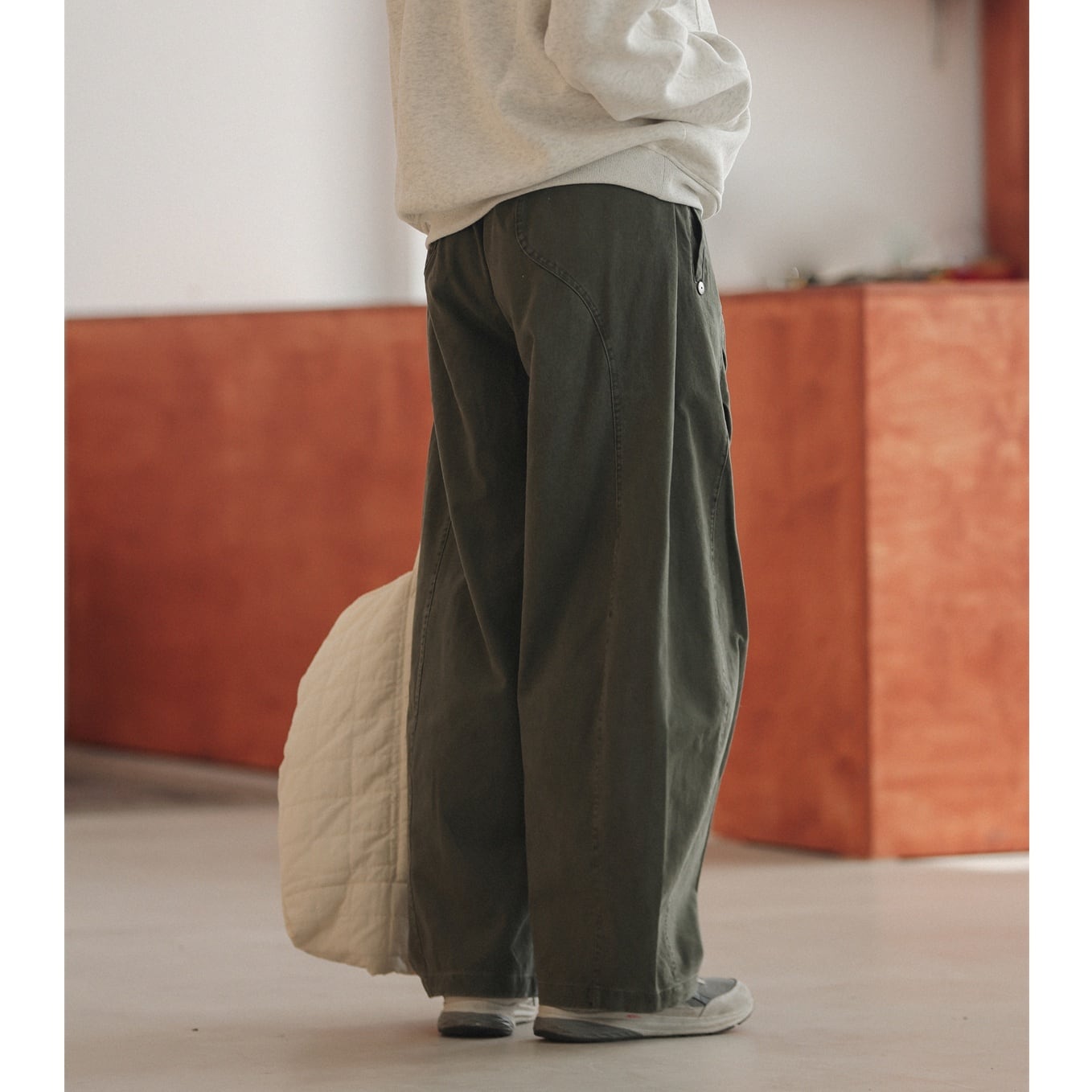 ボリュームのあるワイドシルエットが目を引くロングパンツ。 立体感のある切り替えデザインが、シンプルながらも存在感を演出します。 裾に向かってまっすぐ落ちるラインで、ゆったりしながらも洗練された仕上がりに。ウエストはベルトループ付きです。 日常使いから休日のリラックススタイルまで、幅広く活躍する一本です。 ■ color ブラウン ダークグリーン ■ material コットン ■ size M / L / XL / 2XL M :ウエスト74cm 総丈104cm L :ウエスト78cm 総丈105.5cm XL :ウエスト82cm 総丈107cm 2XL :ウエスト86cm 総丈107.5cm ※採寸方法により多少の誤差がある場合がございます ■モデル身長:178cm ■着用サイズ : XL [ 商品管理番号:a-1186] 【お買い物にあたっての注意事項】 ご購入前にこちらをご覧ください。 https://store.path-online.shop/about ▶<PATH>TOP PAGEから、新商品やお得な情報をチェック! https://store.path-online.shop/ ▶【Instagram】公式インスタグラムページはこちら。 https://www.instagram.com/path_official_jp/
