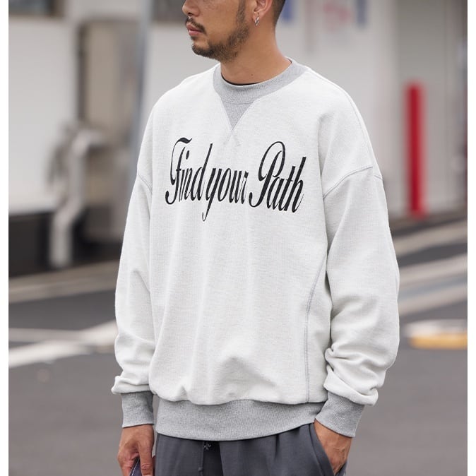 大胆なメッセージロゴが目を惹く、クルーネックタイプのスウェットトップス。 胸元に施された「Find your Path」のプリントが、シンプルながらもスタイルに強い個性を添えます。 ややゆったりとしたシルエットで、レイヤードにも最適。 リブ仕様のネック・袖・裾が全体のバランスを引き締め、デイリーにもアクティブなシーンにも対応しております。 背面にはオリジナルラベルを配置し、細部までこだわったデザインに仕上げた一枚です。 ■ color グレー ■ material コットン ■ size S / M / L / XL / 2XL S :肩幅58.6cm 袖丈55cm 胸囲124cm 着丈64cm M :肩幅60.6cm 袖丈56cm 胸囲128cm 着丈65cm L :肩幅62.6cm 袖丈57cm 胸囲132cm 着丈67cm XL :肩幅64.6cm 袖丈58cm 胸囲136cm 着丈69cm 2XL :肩幅66.6cm 袖丈59cm 胸囲140cm 着丈71cm ※採寸方法により多少の誤差がある場合がございます ■モデル身長:175cm ■着用サイズ : L [ 商品管理番号:a-1187] 【お買い物にあたっての注意事項】 ご購入前にこちらをご覧ください。 https://store.path-online.shop/about ▶<PATH>TOP PAGEから、新商品やお得な情報をチェック! https://store.path-online.shop/ ▶【Instagram】公式インスタグラムページはこちら。 https://www.instagram.com/path_official_jp/
