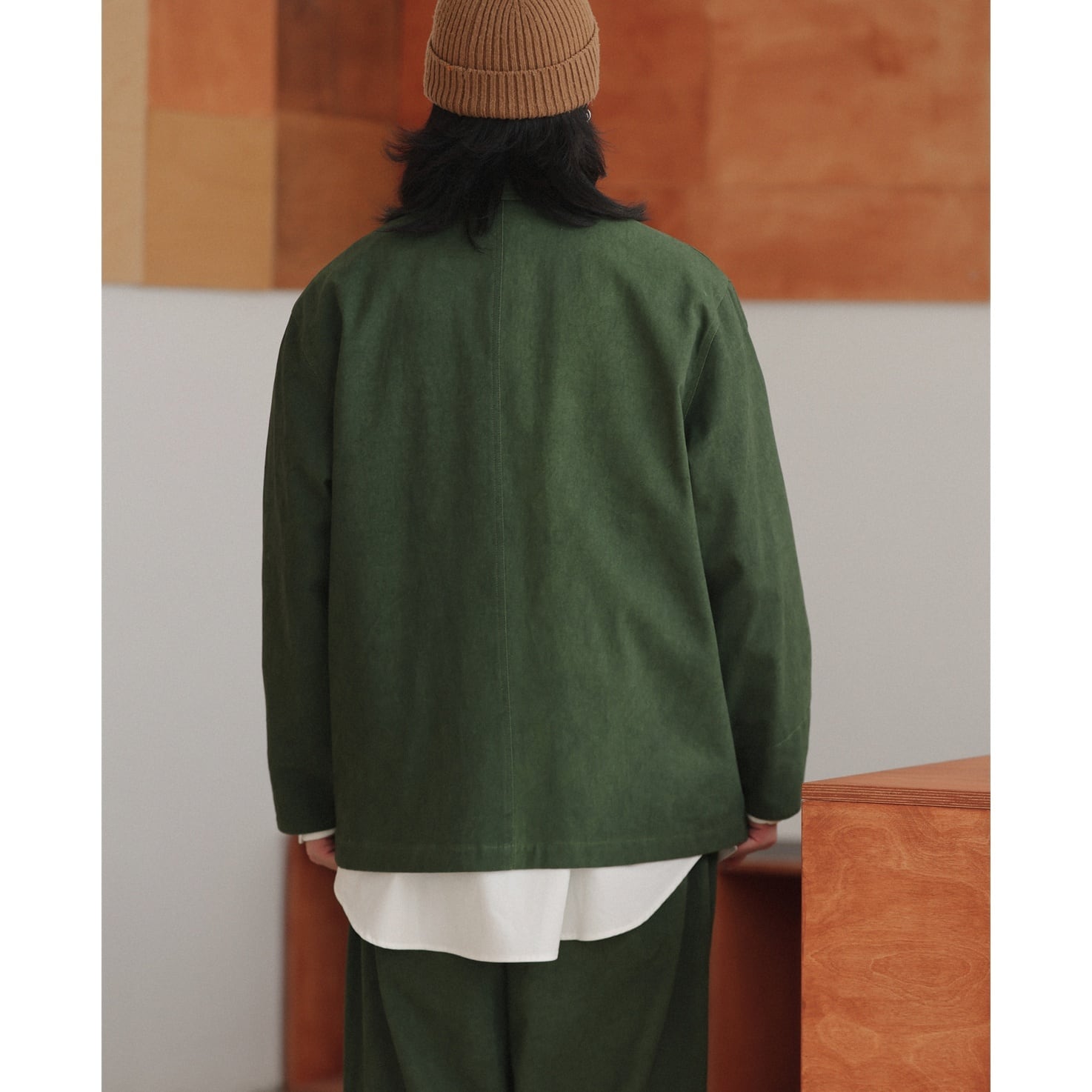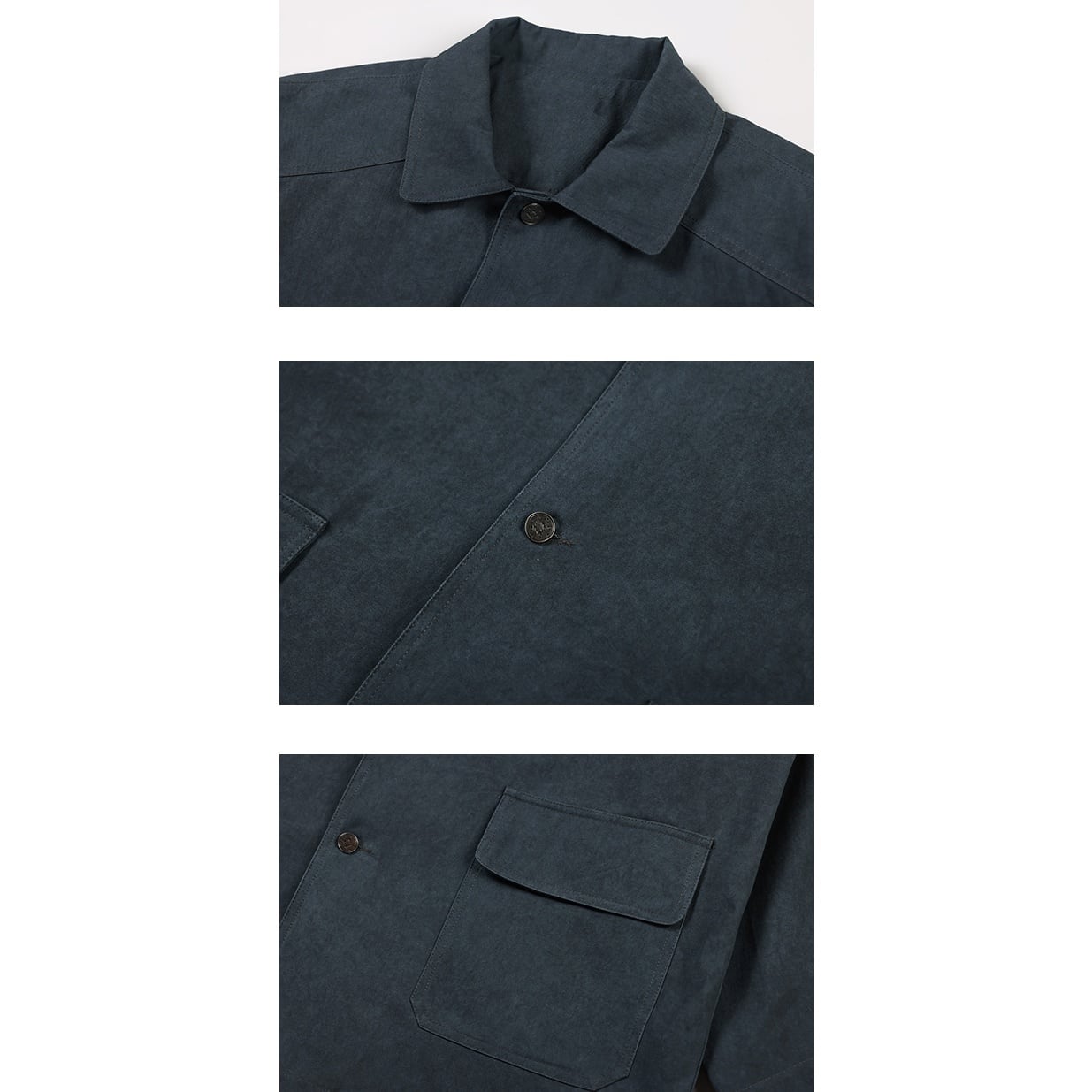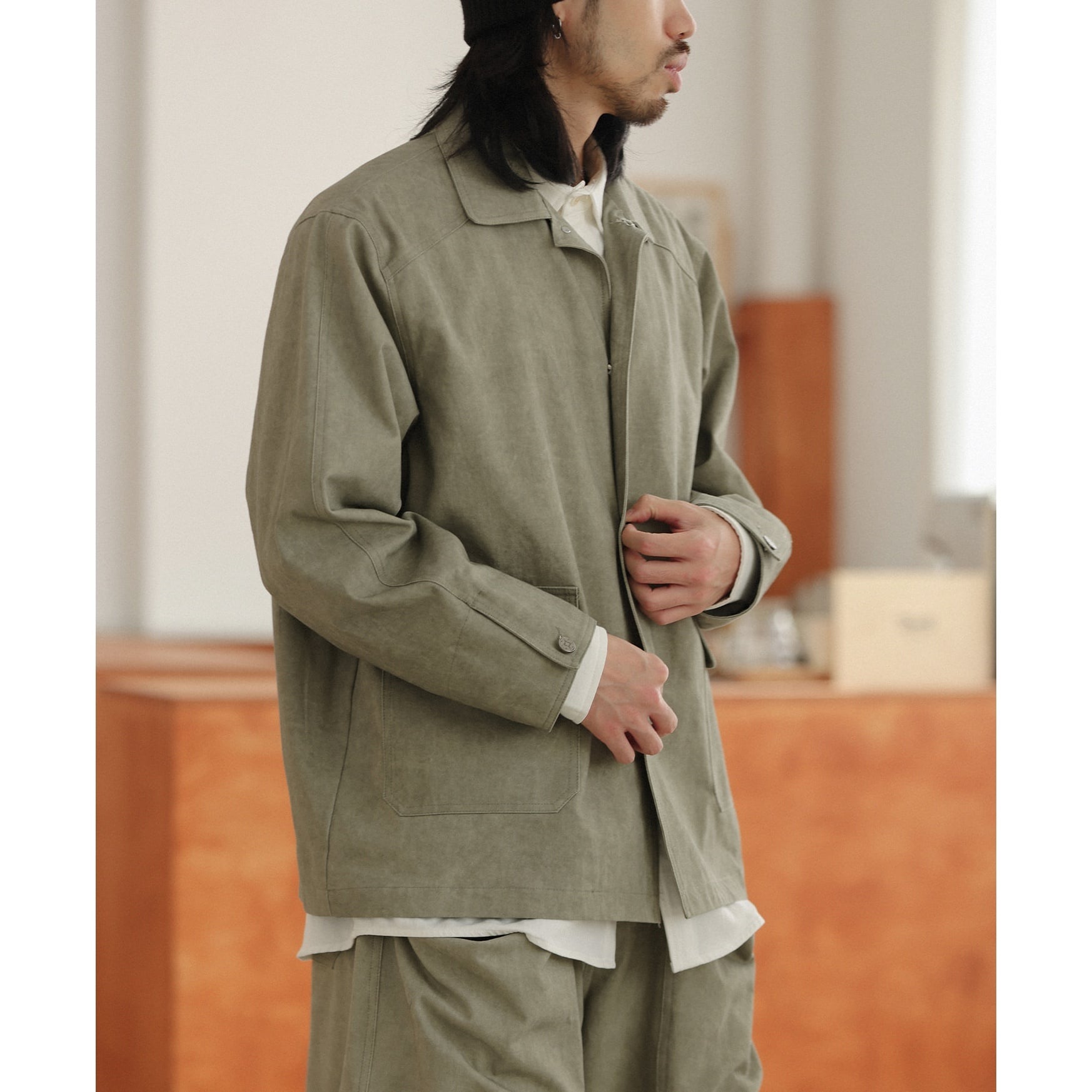 無駄を削ぎ落としたシンプルなデザインが際立つワークジャケット。 やや短めの着丈と程よくゆとりのある身幅がバランス良く、現代的なシルエットに仕上がっています。 大ぶりなフラップポケットやカフスボタンなどのあるディテールもポイント。 クリーンなデザインでスタイリングを選ばず、オン、オフ問わず着回せる万能アウターです。 ■ color グリーン ネイビー ライトグレー ■ material コットン ■ size M / L / XL M :肩幅52cm 袖丈58cm 胸囲124cm 着丈75cm L :肩幅53cm 袖丈59cm 胸囲128cm 着丈77cm XL :肩幅54cm 袖丈60cm 胸囲132cm 着丈79cm ※採寸方法により多少の誤差がある場合がございます ■モデル身長:178cm ■着用サイズ : XL [ 商品管理番号:a-1196] 【お買い物にあたっての注意事項】 ご購入前にこちらをご覧ください。 https://store.path-online.shop/about ▶<PATH>TOP PAGEから、新商品やお得な情報をチェック! https://store.path-online.shop/ ▶【Instagram】公式インスタグラムページはこちら。 https://www.instagram.com/path_official_jp/