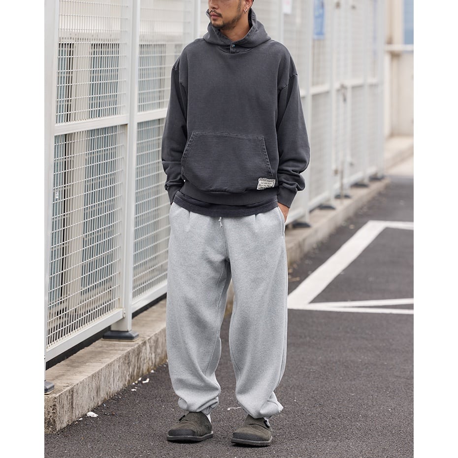 丸みを帯びたワイドテーパードシルエットが特徴のスウェットパンツ。 裏地がフリース素材となっており冬場のイージーパンツとしてオススメ。 深めの股上とゆとりある太腿まわりが、リラックスした抜け感を演出します。 裾にかけて自然に絞られたラインで、野暮ったさを感じさせないバランスに。 バックにはスクエア型のパッチポケットを配置し、後ろ姿にも表情を添えます。 裾リブ仕様で足元のアレンジも自在で、タウンユースからワンマイルまで幅広く活躍する一本です。 ■ color オフホワイト グレー ダークグレー ブラック ■ material コットン ポリエステル ■ size S / M / L / XL / 2XL S :ウエスト78cm 総丈104cm M :ウエスト80cm 総丈106cm L :ウエスト82cm 総丈108cm XL :ウエスト84cm 総丈110cm 2XL :ウエスト86cm 総丈112cm ※ウエストは伸縮性がございます ※採寸方法により多少の誤差がある場合がございます ■モデル身長:175cm ■着用サイズ : L [ 商品管理番号:a-1204] 【お買い物にあたっての注意事項】 ご購入前にこちらをご覧ください。 https://store.path-online.shop/about ▶<PATH>TOP PAGEから、新商品やお得な情報をチェック! https://store.path-online.shop/ ▶【Instagram】公式インスタグラムページはこちら。 https://www.instagram.com/path_official_jp/