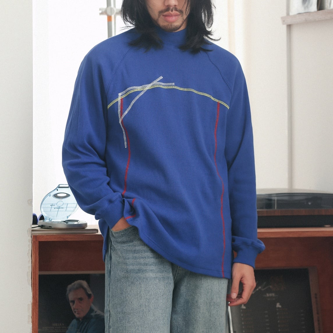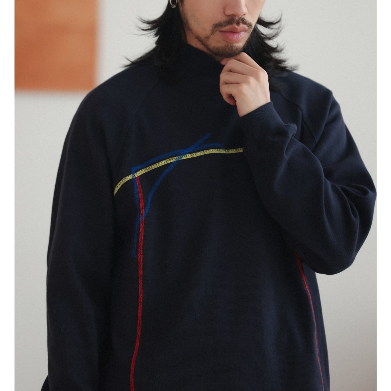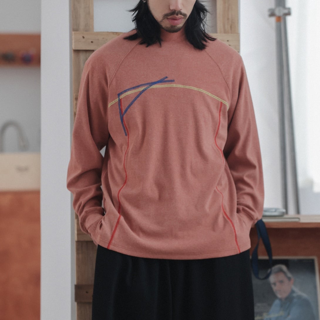 幾何学的な曲線ラインを大胆に配置した、唯一無二の存在感を放つロングスリーブTシャツ。 胸元から流れるように走るイエロー、ブルー、レッドの3色ステッチが、アートピースのような立体感と動きを生み出します。 緩やかなラグランスリーブが肩の可動域を広げ、リラックスした着用感を演出。 裾にはさりげなくスリットを設け、重たさを感じさせない軽やかなシルエットになっています。 一枚で着てもインナーとしても映えるデザインは、コーディネートの主役として活躍します。 シンプルなパンツと合わせるだけで、アートを纏ったような個性を添えます。 ■ color ピンク ダークネイビー ブルー レッド ■ material コットン スパンデックス ■ size M / L / XL M :袖丈(ゆき丈)81cm 胸囲112cm 着丈72cm L :袖丈(ゆき丈)82cm 胸囲116cm 着丈74cm XL :袖丈(ゆき丈)83cm 胸囲120cm 着丈76cm ※採寸方法により多少の誤差がある場合がございます ■モデル身長:178cm ■着用サイズ : XL [ 商品管理番号:a-1212] 【お買い物にあたっての注意事項】 ご購入前にこちらをご覧ください。 https://store.path-online.shop/about ▶<PATH>TOP PAGEから、新商品やお得な情報をチェック! https://store.path-online.shop/ ▶【Instagram】公式インスタグラムページはこちら。 https://www.instagram.com/path_official_jp/