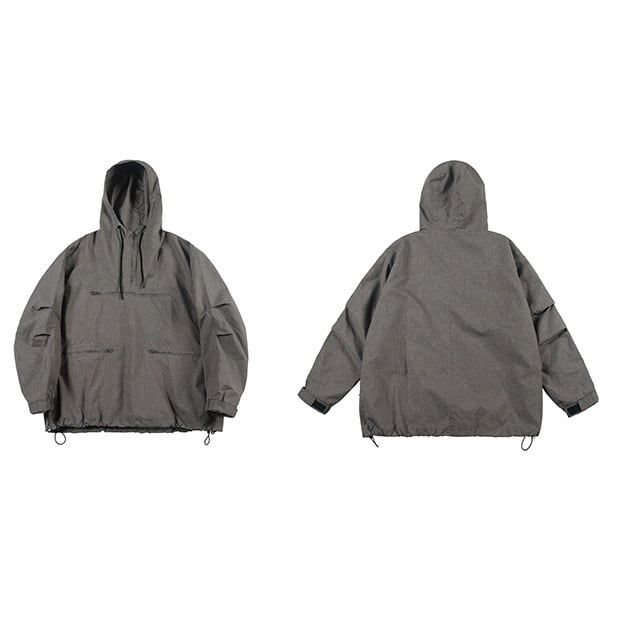 街にもアウトドアにもなじむ、ミニマルな表情のジャケット。 前面に配置された3つのジップポケットデザインがアクセントとなっています。 裾のドローコードやサイドジップによりシルエット調整が可能で、着脱もスムーズです。袖口のギャザー仕様やハーフジップのフードなど、防風性にも優れたディテールを搭載。ゆとりあるシルエットで重ね着もしやすく、季節の変わり目に重宝する一着です。 ■ color グレー ■ material ポリエステル ■ size M / L / XL M :肩幅57.5cm 袖丈62cm 胸囲140cm 着丈75.5cm L :肩幅58.5cm 袖丈63cm 胸囲144cm 着丈77.5cm XL :肩幅59.5cm 袖丈64cm 胸囲148cm 着丈79.5cm ※採寸方法により多少の誤差がある場合がございます ■モデル身長:178cm ■着用サイズ : XL [ 商品管理番号:a-1213] 【お買い物にあたっての注意事項】 ご購入前にこちらをご覧ください。 https://store.path-online.shop/about ▶<PATH>TOP PAGEから、新商品やお得な情報をチェック! https://store.path-online.shop/ ▶【Instagram】公式インスタグラムページはこちら。 https://www.instagram.com/path_official_jp/