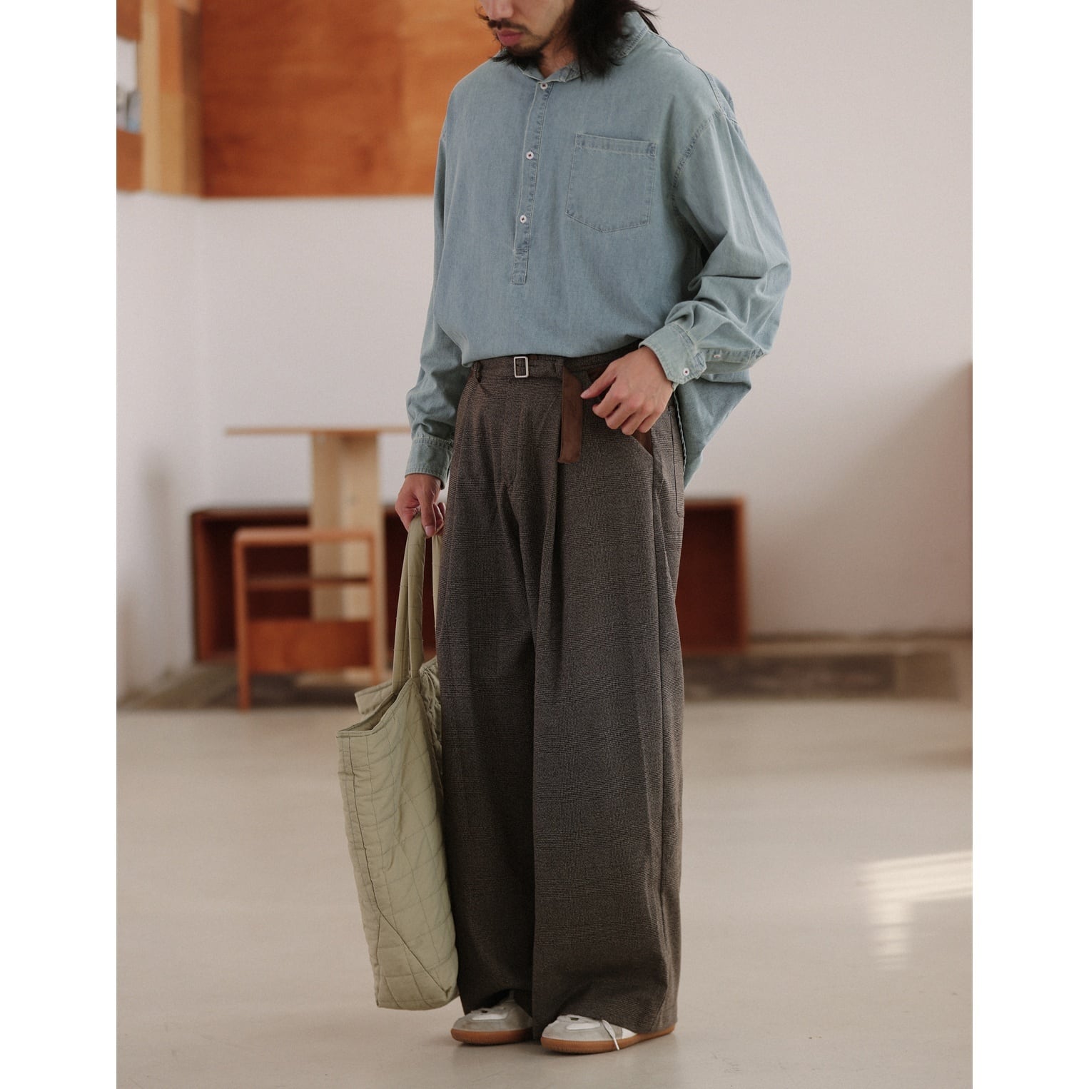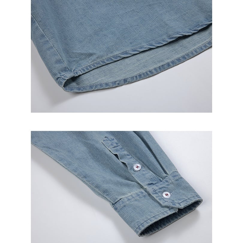 柔らかな風合いとゆとりのあるシルエットが魅力のデニムプルオーバーシャツ。 襟元の軽やかな開きと、胸元のボタンディテールが絶妙な抜け感を演出します。 リラックス感がありながらも、すっきりとまとまる絶妙なバランスで、カジュアルにもナチュラルにも溶け込む一着です。 ■ color ブルー ■ material コットン ■ size M / L / XL M :肩幅62cm 袖丈58cm 胸囲130cm 着丈72cm L :肩幅64cm 袖丈59cm 胸囲134cm 着丈74cm XL :肩幅66cm 袖丈60cm 胸囲138cm 着丈76cm ※採寸方法により多少の誤差がある場合がございます ■モデル身長:178cm ■着用サイズ : 2XL [ 商品管理番号:a-1218] 【お買い物にあたっての注意事項】 ご購入前にこちらをご覧ください。 https://store.path-online.shop/about ▶<PATH>TOP PAGEから、新商品やお得な情報をチェック! https://store.path-online.shop/ ▶【Instagram】公式インスタグラムページはこちら。 https://www.instagram.com/path_official_jp/