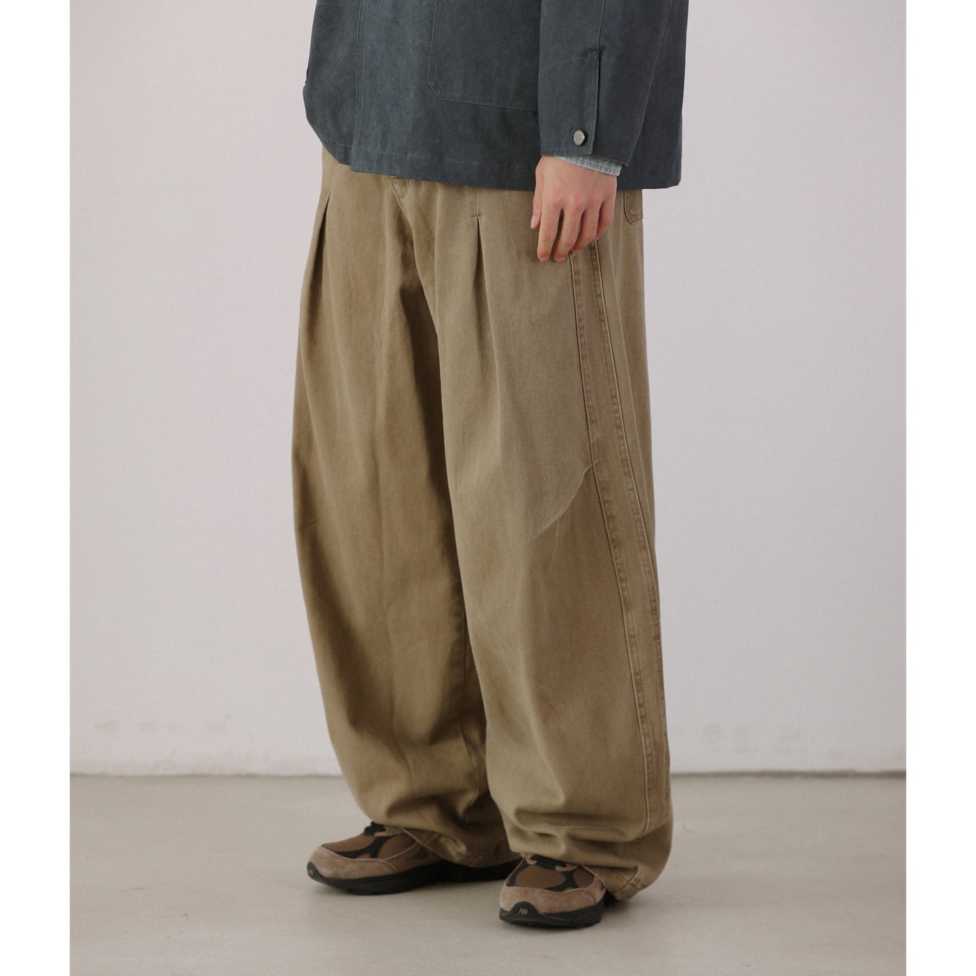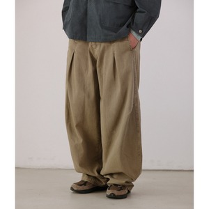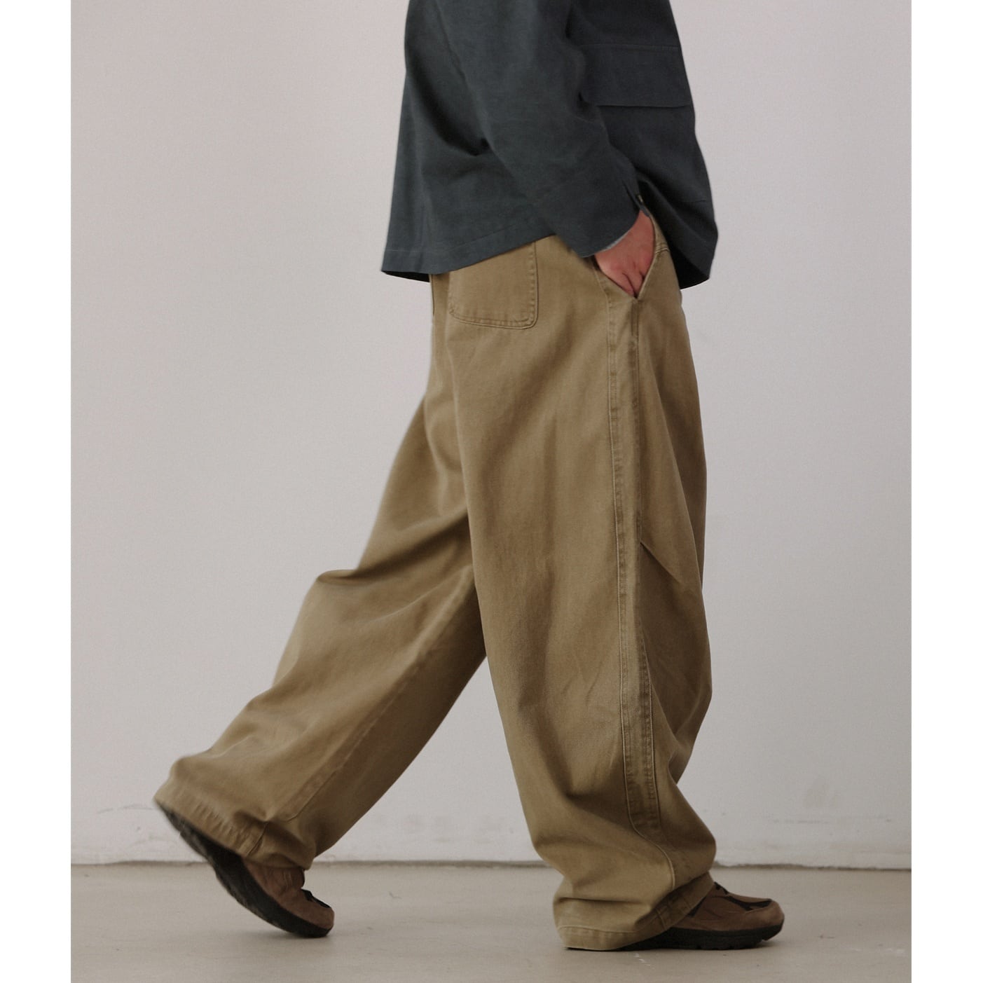 リラックス感と存在感を兼ね備えたワイドパンツ。 柔らかく洗いのかかった風合いが、穿くたびにこなれた雰囲気を演出します。 やや太めのシルエットながらも、計算されたタックと程よいテーパードにより、動きやすさとスマートな印象を両立。 バックポケットは外付けで、ミリタリーテイストをほんのりプラスします。 ラフなトップスと合わせるだけで、自然体のおしゃれが完成する一本です。 ■ color ベージュ グレー ■ material コットン ■ size M / L / XL / 2XL M :ウエスト78cm ヒップ108cm 総丈104cm L :ウエスト82cm ヒップ112cm 総丈106cm XL :ウエスト86cm ヒップ116cm 総丈108cm 2XL :ウエスト90cm ヒップ120cm 総丈110cm ※採寸方法により多少の誤差がある場合がございます ■モデル身長:178cm ■着用サイズ : XL [ 商品管理番号:a-1221] 【お買い物にあたっての注意事項】 ご購入前にこちらをご覧ください。 https://store.path-online.shop/about ▶<PATH>TOP PAGEから、新商品やお得な情報をチェック! https://store.path-online.shop/ ▶【Instagram】公式インスタグラムページはこちら。 https://www.instagram.com/path_official_jp/