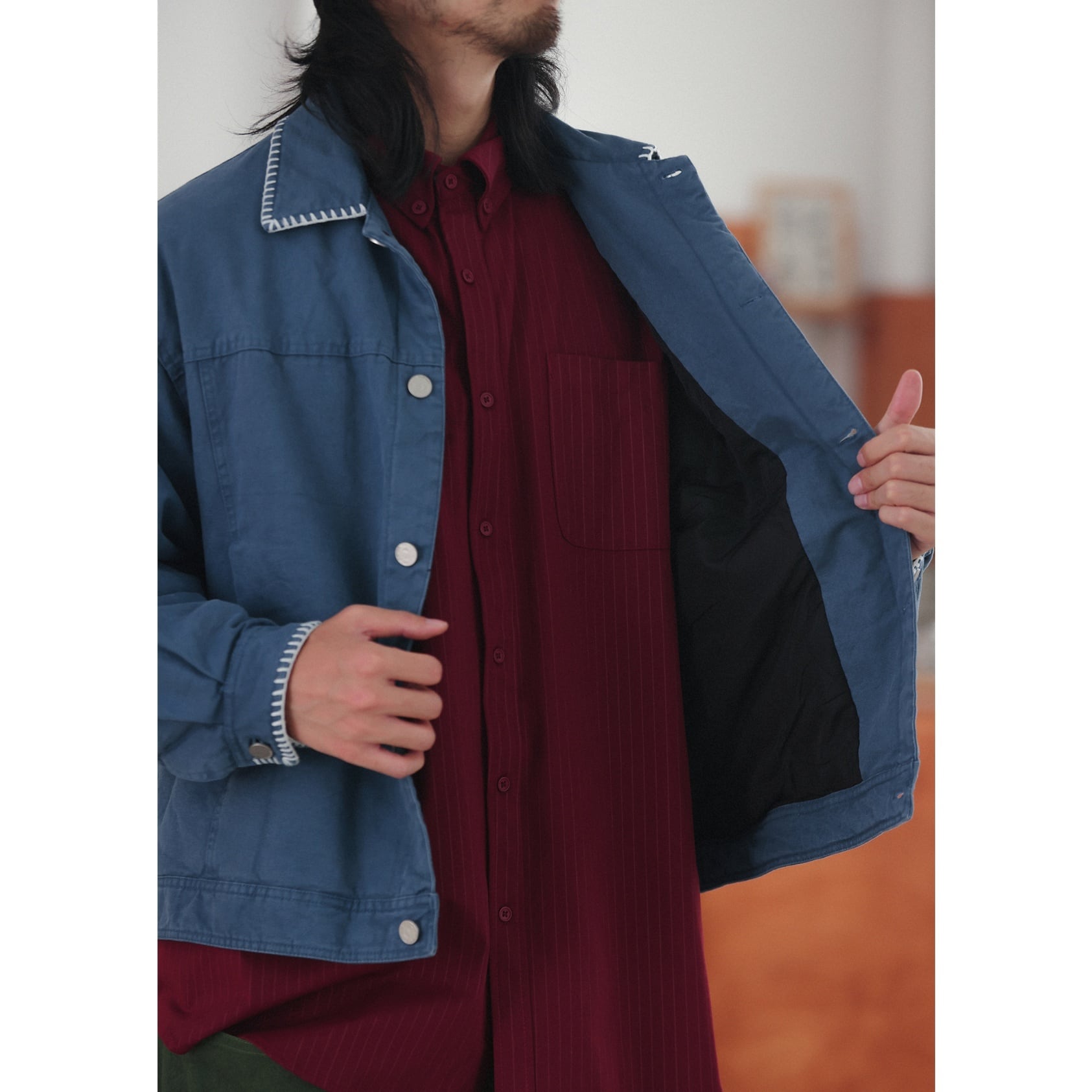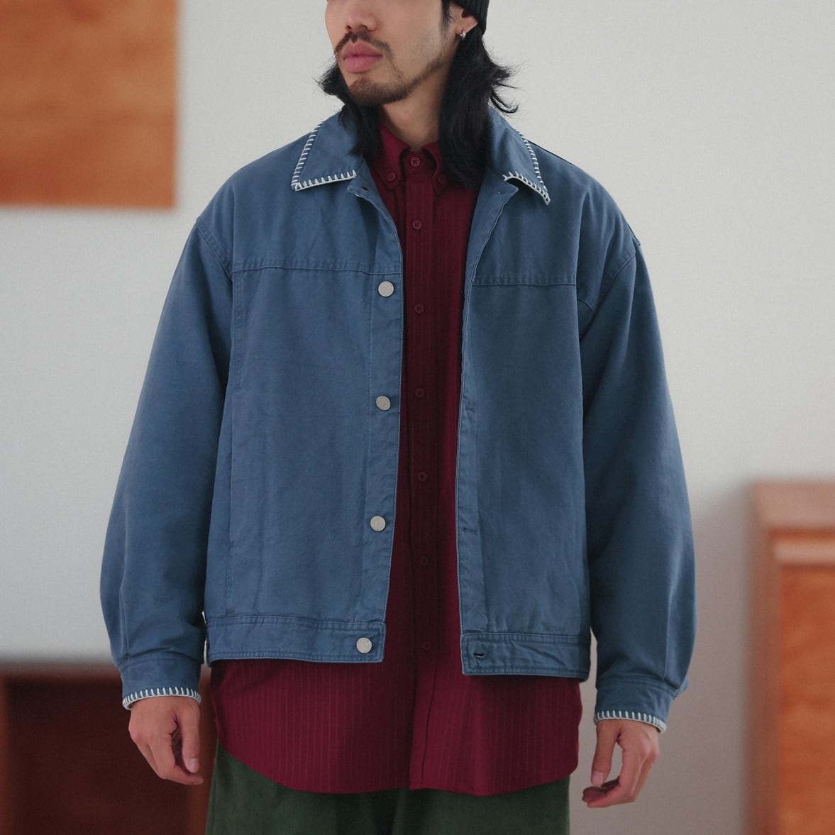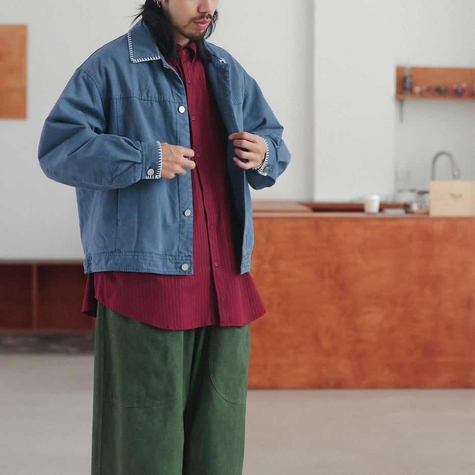 襟元と袖口にはハンドステッチ風の縁取りが施され、クラフト感と上品さを兼ね備えたデザインのワイドシルエットジャケット。 内側にはちょっとした中綿のキルティングを施し、軽やかであたたかな着心地を実現。 カジュアルにもシックにも着こなせる、秋冬シーズンに頼れる一枚です。 ■ color ブルー ■ material コットン ■ size M / L / XL / 2XL M :肩幅57.6cm 袖丈54cm 胸囲127cm 着丈65cm L :肩幅58.8cm 袖丈55.5cm 胸囲131cm 着丈67cm XL :肩幅60cm 袖丈57cm 胸囲135cm 着丈69cm 2XL :肩幅61.2cm 袖丈58.5cm 胸囲139cm 着丈71cm ※採寸方法により多少の誤差がある場合がございます ■モデル身長:178cm ■着用サイズ : XL [ 商品管理番号:a-1223] 【お買い物にあたっての注意事項】 ご購入前にこちらをご覧ください。 https://store.path-online.shop/about ▶<PATH>TOP PAGEから、新商品やお得な情報をチェック! https://store.path-online.shop/ ▶【Instagram】公式インスタグラムページはこちら。 https://www.instagram.com/path_official_jp/