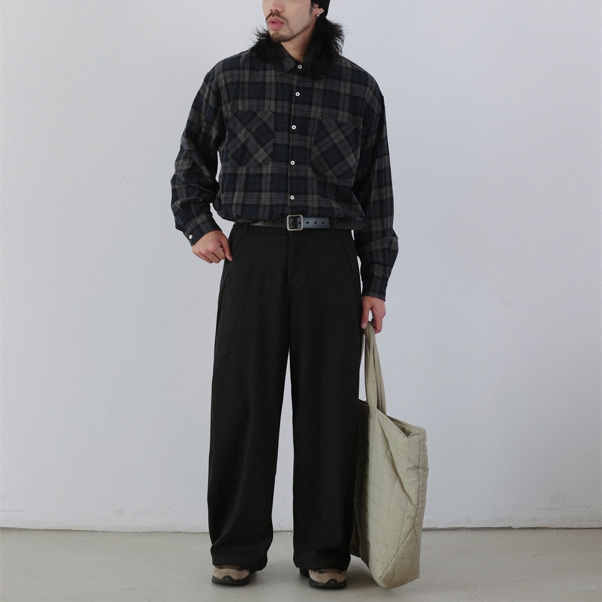 ウールの様な程よく光沢がある生地で、シルエットの美しさが際立つワイドスラックスパンツ。 ウエストはバックゴム仕様で着心地も快適になっています。 タックを効かせた立体感のあるフォルムは、動きに合わせて揺れ、日常にさりげない存在感をプラスします。 ベルトループ付きできちんと感も演出でき、カジュアルからきれいめまで幅広いコーディネートに活躍。 落ち着いた色味も魅力の一本です。 ■ color ブラウン ダークグレー ※ダークグレーはモデル着用画像よりもグレーに近いカラー、単品画像に近いイメージです ■ material ポリエステル その他 ■ size M / L / XL / 2XL M :ウエスト70cm ヒップ111.5cm 総丈106cm L :ウエスト74cm ヒップ115.5cm 総丈108cm XL :ウエスト78cm ヒップ119.5cm 総丈110cm 2XL :ウエスト82cm ヒップ123.5cm 総丈112cm ※ウエストは伸縮性がございます(10cm程度伸びるイメージ) ※採寸方法により多少の誤差がある場合がございます ■モデル身長:178cm ■着用サイズ : XL [ 商品管理番号:a-1224] 【お買い物にあたっての注意事項】 ご購入前にこちらをご覧ください。 https://store.path-online.shop/about ▶<PATH>TOP PAGEから、新商品やお得な情報をチェック! https://store.path-online.shop/ ▶【Instagram】公式インスタグラムページはこちら。 https://www.instagram.com/path_official_jp/