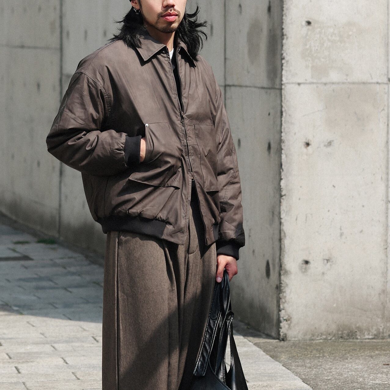 どこか無骨でクラシカル、なのに軽やかな印象を纏ったショートジャケット。 程よい丸みを描くシルエットに、立体感のあるポケットがアクセントになっています。 袖口と裾のリブがスタイリングに緩急を加え、着こなし全体を引き締めます。 日常に自然と馴染みながらも、スタイルの芯になる一着。 ■ color ブラウン ブラック ■ material ポリエステル ■ size M / L / XL / 2XL M :肩幅64cm 袖丈59cm 胸囲132cm 着丈67cm L :肩幅65cm 袖丈60cm 胸囲136cm 着丈69cm XL :肩幅66cm 袖丈61cm 胸囲140cm 着丈71cm 2XL :肩幅67cm 袖丈62cm 胸囲144cm 着丈73cm ※採寸方法により多少の誤差がある場合がございます ■モデル身長:178cm ■着用サイズ : XL [ 商品管理番号:a-1226] 【お買い物にあたっての注意事項】 ご購入前にこちらをご覧ください。 https://store.path-online.shop/about ▶<PATH>TOP PAGEから、新商品やお得な情報をチェック! https://store.path-online.shop/ ▶【Instagram】公式インスタグラムページはこちら。 https://www.instagram.com/path_official_jp/
