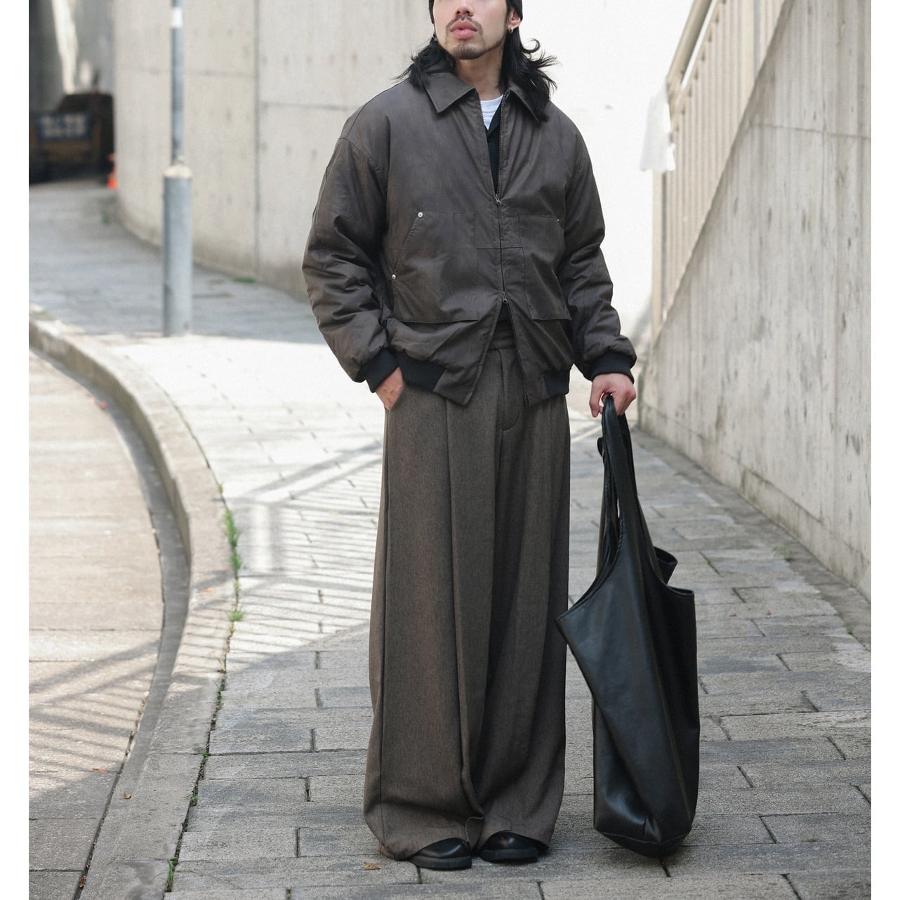 クラシックなスラックスディテールと、大胆なワイドシルエットが融合したワイドスラックス。 歩くたびに美しく波打つたっぷりとしたドレープ感が、上品さと抜け感を同時に演出します。 前後に施されたセンタープレスラインが、ゆったりとした形を保ちながらも全体にシャープな印象を添え、着るだけでスタイルを引き締めてくれます。 日常使いからきちんと感のあるスタイリングまで、シーンを問わず活躍する一本です。 ■ color ブラック ブラウン ■ material ポリエステル スパンデックス ■ size S / M / L / XL / 2XL S :ウエスト68cm ヒップ117cm 総丈101cm M :ウエスト72cm ヒップ121cm 総丈103cm L :ウエスト76cm ヒップ125cm 総丈105cm XL :ウエスト80cm ヒップ129cm 総丈107cm 2XL :ウエスト84cm ヒップ133cm 総丈109cm ※採寸方法により多少の誤差がある場合がございます ■モデル身長:178cm ■着用サイズ : XL [ 商品管理番号:a-1227] 【お買い物にあたっての注意事項】 ご購入前にこちらをご覧ください。 https://store.path-online.shop/about ▶<PATH>TOP PAGEから、新商品やお得な情報をチェック! https://store.path-online.shop/ ▶【Instagram】公式インスタグラムページはこちら。 https://www.instagram.com/path_official_jp/