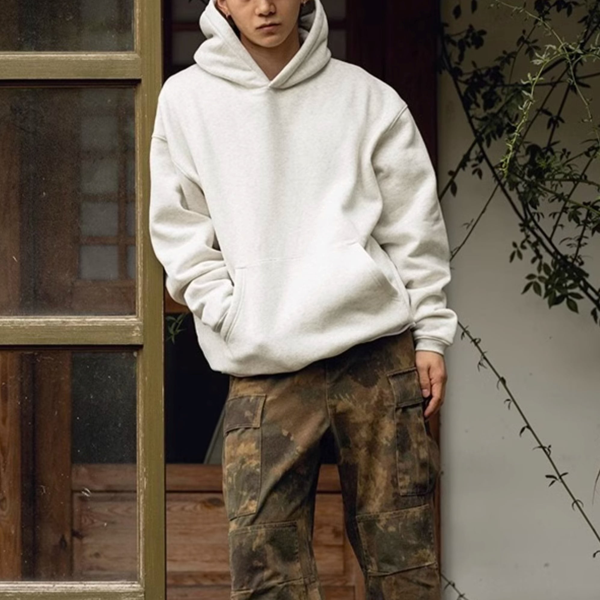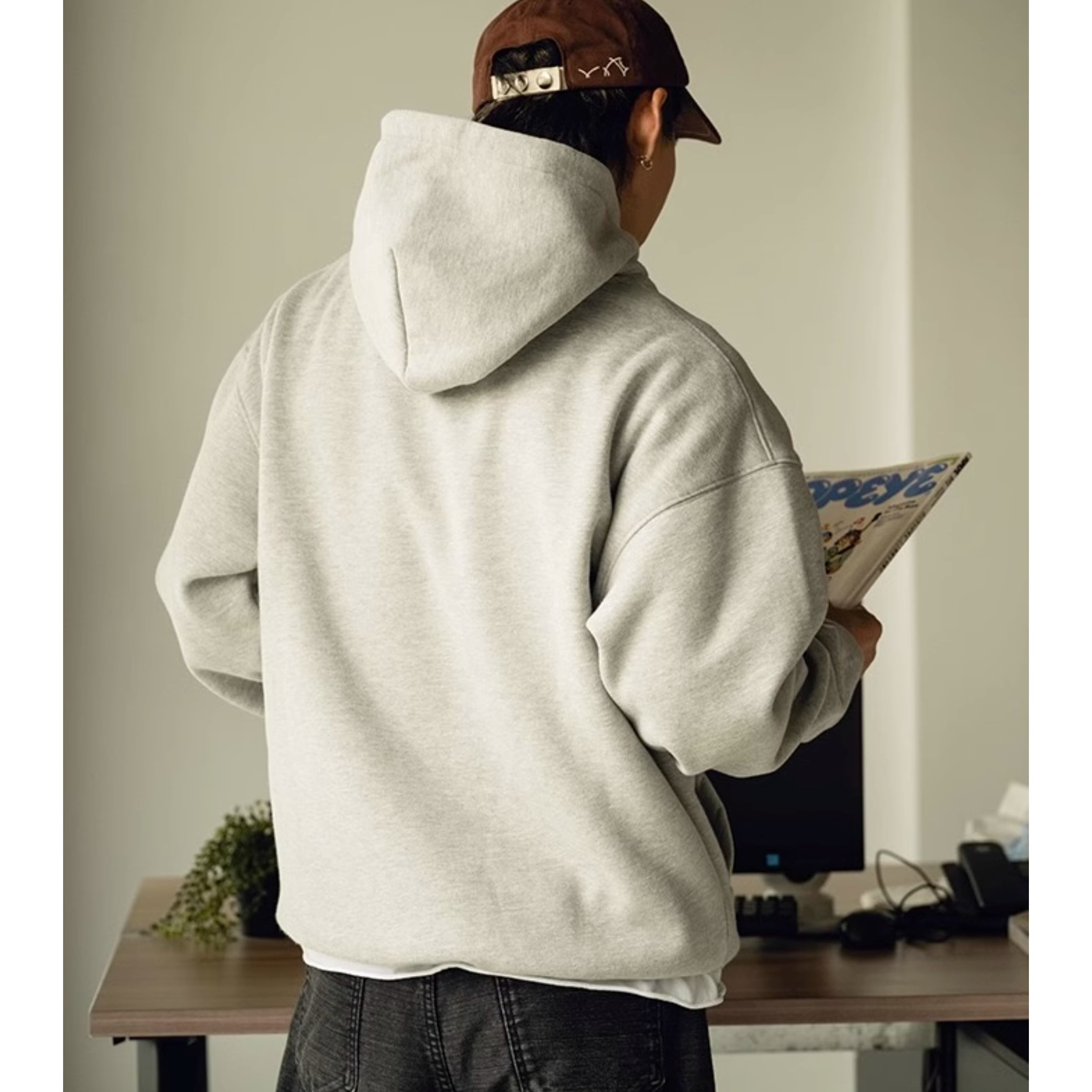 冬場に活躍する裏地がフリースになっているプルオーバーフーディー。 丸みを帯びたボリュームシルエットにより、ストリートにもナチュラルにも馴染むデザインです。 フロントには斜めラインが印象的なカンガルーポケットを配置し、機能性とデザイン性を両立。 袖口と裾のリブが全体のフォルムを引き締め、フードは立体感のある仕立てで後ろ姿にも存在感をプラスします。 一枚着でも、アウターのインにも映える、毎日のスタイリングに重宝するアイテムです。 ■ color ブラック ネイビー グレー オフホワイト ■ material コットン ■ size S / M / L / XL S :肩幅60cm 袖丈62cm 胸囲128cm 着丈68cm M :肩幅62cm 袖丈63cm 胸囲132cm 着丈70cm L :肩幅64cm 袖丈64cm 胸囲136cm 着丈72cm XL :肩幅66cm 袖丈65cm 胸囲140cm 着丈74cm ※採寸方法により多少の誤差がある場合がございます ■モデル身長:182cm ■着用サイズ : L [ 商品管理番号:a-1231] 【お買い物にあたっての注意事項】 ご購入前にこちらをご覧ください。 https://store.path-online.shop/about ▶<PATH>TOP PAGEから、新商品やお得な情報をチェック! https://store.path-online.shop/ ▶【Instagram】公式インスタグラムページはこちら。 https://www.instagram.com/path_official_jp/