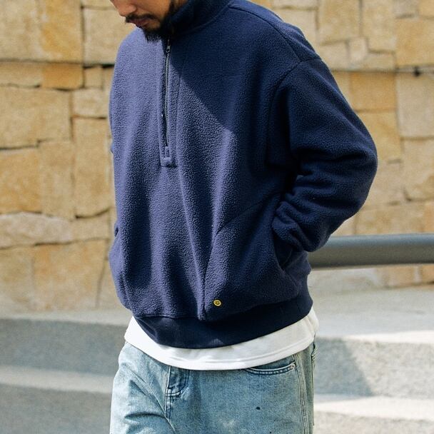 深みのあるパープルとネイビーで揃えたフリーストップス。 首元はハーフジップ仕様で、気分に合わせてシルエットを調整できる使いやすいデザインです。 全体はゆったりとしたカジュアルシルエットで、リラックスした着こなしに最適。 裾にはさりげなくスマイルマークをあしらい、大人の遊び心をほんの少しだけプラス。 デイリーにもアウトドアにも気軽に取り入れられる一枚です。 ■ color パープル ネイビー ■ material コットン ポリエステル ■ size S / M / L / XL / 2XL S :肩幅55cm 袖丈55.5cm 胸囲116cm 着丈64cm M :肩幅57cm 袖丈56.5cm 胸囲120cm 着丈65cm L :肩幅59cm 袖丈57.5cm 胸囲124cm 着丈67cm XL :肩幅61cm 袖丈58.5cm 胸囲128cm 着丈69cm 2XL :肩幅63cm 袖丈59.5cm 胸囲132cm 着丈71cm ※採寸方法により多少の誤差がある場合がございます ■モデル身長:175cm ■着用サイズ : L [ 商品管理番号:a-1237] 【お買い物にあたっての注意事項】 ご購入前にこちらをご覧ください。 https://store.path-online.shop/about ▶<PATH>TOP PAGEから、新商品やお得な情報をチェック! https://store.path-online.shop/ ▶【Instagram】公式インスタグラムページはこちら。 https://www.instagram.com/path_official_jp/