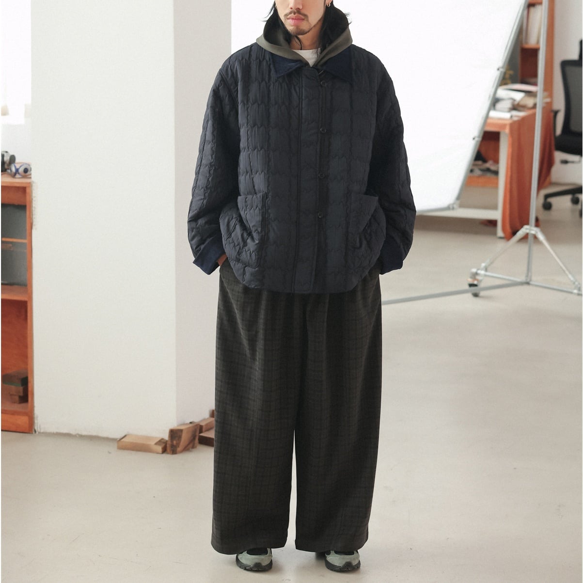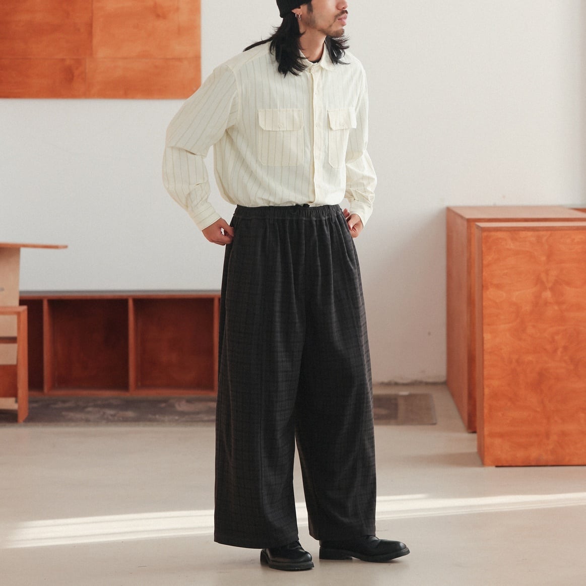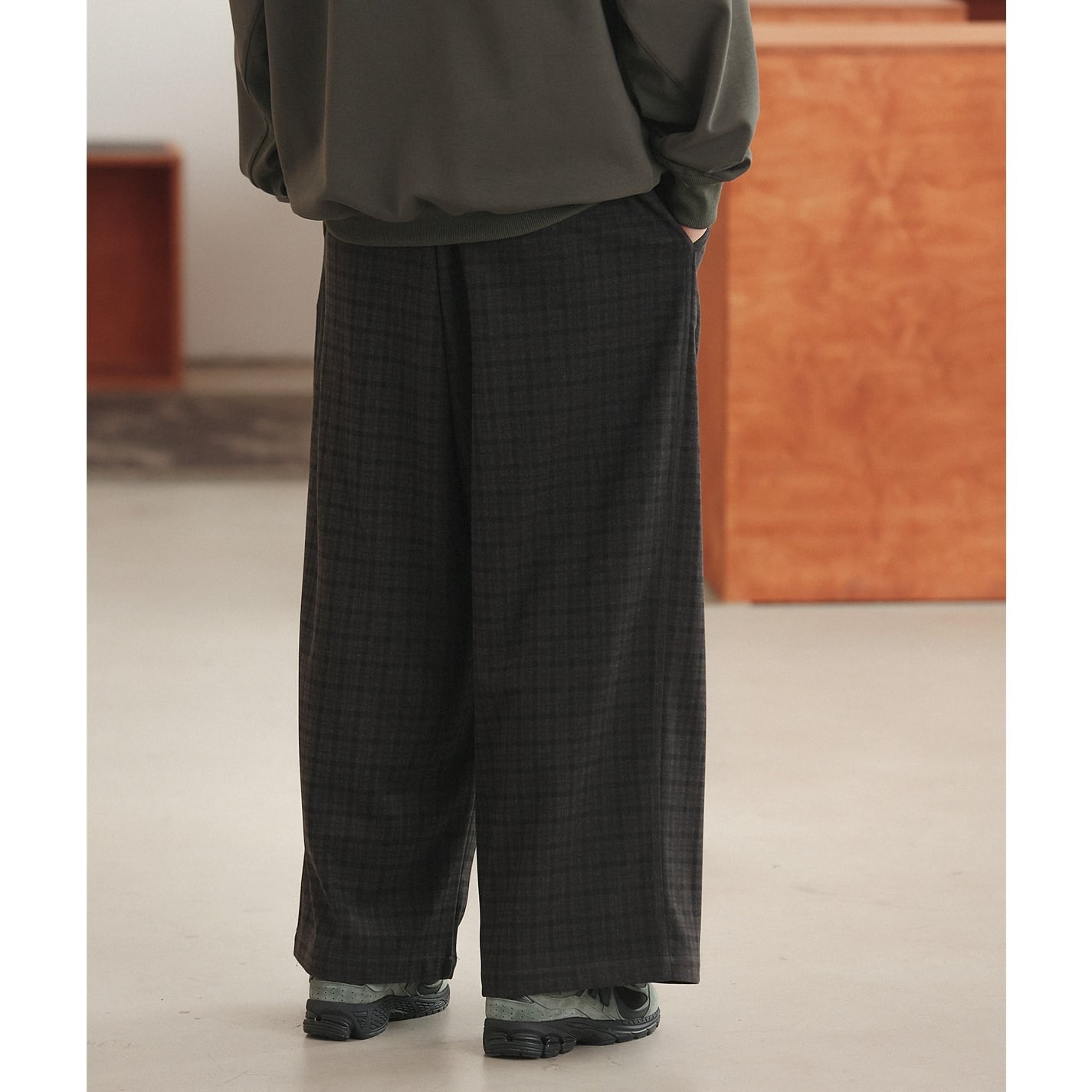 ダークグレーのチェック柄が都会的なムードを放つカジュアルパンツ。 ストレートシルエットとゆったりとした設計で、リラックス感がありながらも洗練された印象にまとまります。 厚手で季節感もしっかり演出し、ウエストにはドローストリングを備え、サイズ調整もしやすく快適な穿き心地に。 デイリーからシティスタイルまで幅広く活躍する一本です。 ■ color ダークグレー ■ material ポリエステル その他 ■ size S / M / L / XL S :ウエスト66-108cm ヒップ148cm 総丈92cm M :ウエスト70-112cm ヒップ152cm 総丈94cm L :ウエスト74-116cm ヒップ156cm 総丈96cm XL :ウエスト78-120cm ヒップ160cm 総丈98cm ※採寸方法により多少の誤差がある場合がございます ■モデル身長:178cm ■着用サイズ : XL [ 商品管理番号:a-1244] 【お買い物にあたっての注意事項】 ご購入前にこちらをご覧ください。 https://store.path-online.shop/about ▶<PATH>TOP PAGEから、新商品やお得な情報をチェック! https://store.path-online.shop/ ▶【Instagram】公式インスタグラムページはこちら。 https://www.instagram.com/path_official_jp/