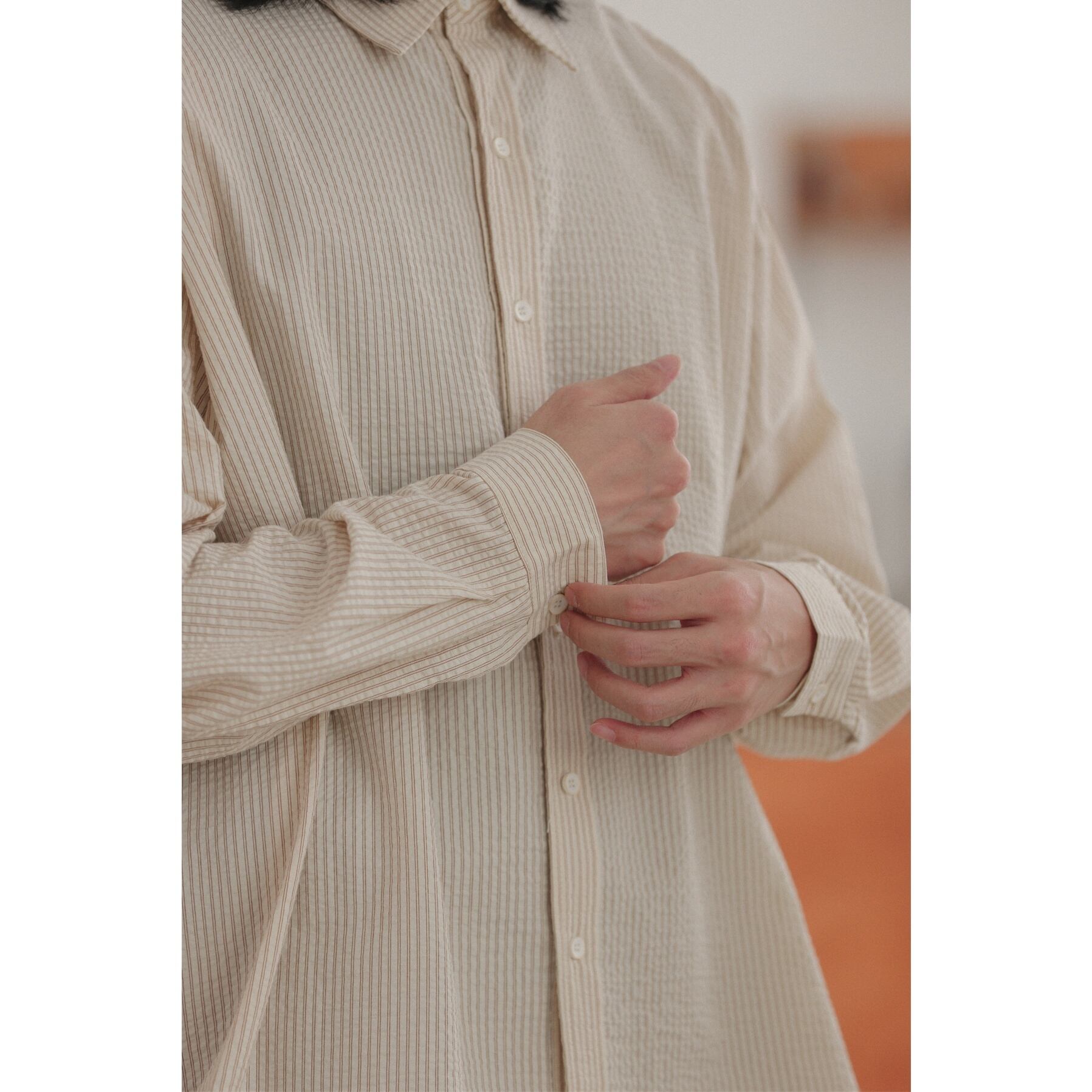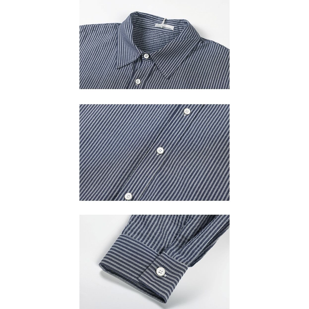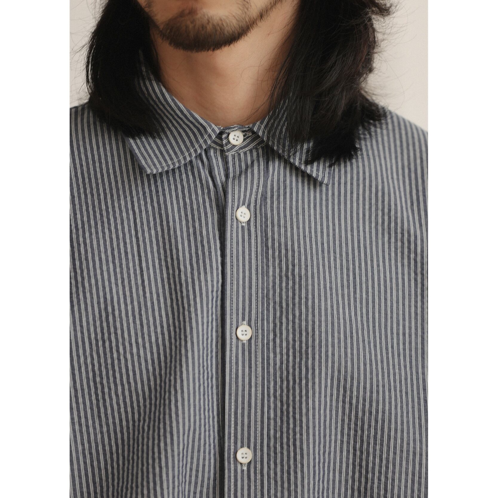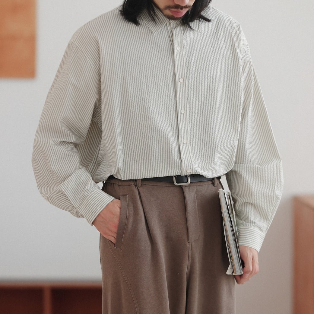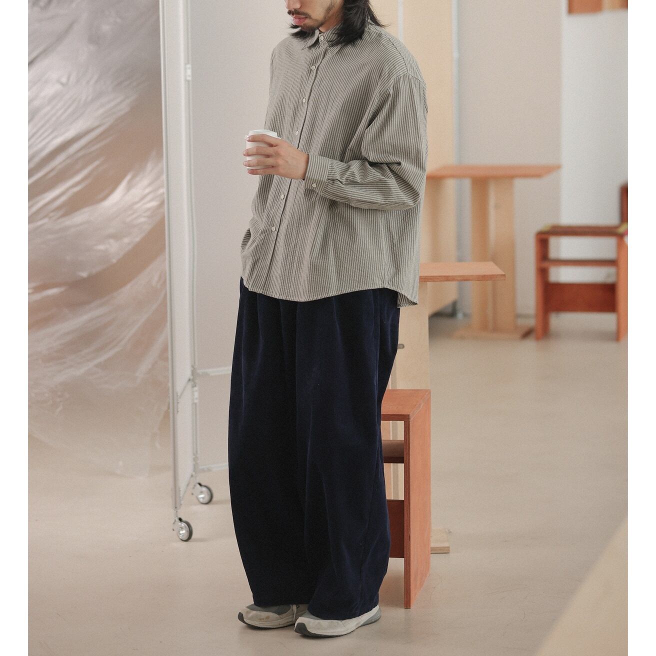 ワークシャツテイストのストライプシャツ。 繊細に走るストライプ柄が落ち着いた佇まいの中に上品な個性を添えます。 ゆったりとしたシルエットが肩の力を抜いたリラックス感を生み、日常のスタイルに自然と馴染む一枚です。 ■ color ホワイト ベージュ グリーン ネイビー ■ material コットン ■ size S / M / L / XL S :肩幅55cm 袖丈58cm 胸囲132cm 着丈69cm M :肩幅56cm 袖丈59cm 胸囲136cm 着丈71cm L :肩幅57cm 袖丈60cm 胸囲140cm 着丈73cm XL :肩幅58cm 袖丈61cm 胸囲144cm 着丈75cm ※採寸方法により多少の誤差がある場合がございます ■モデル身長:178cm ■着用サイズ : XL [ 商品管理番号:a-1246] 【お買い物にあたっての注意事項】 ご購入前にこちらをご覧ください。 https://store.path-online.shop/about ▶<PATH>TOP PAGEから、新商品やお得な情報をチェック! https://store.path-online.shop/ ▶【Instagram】公式インスタグラムページはこちら。 https://www.instagram.com/path_official_jp/