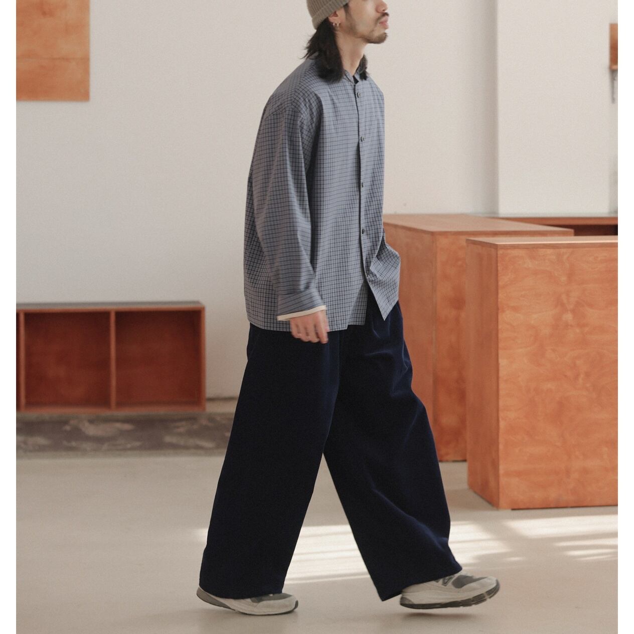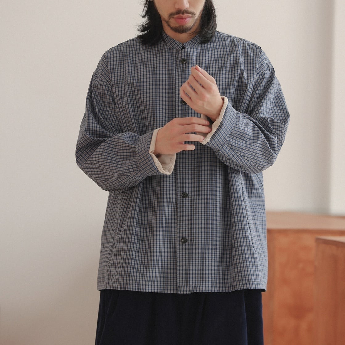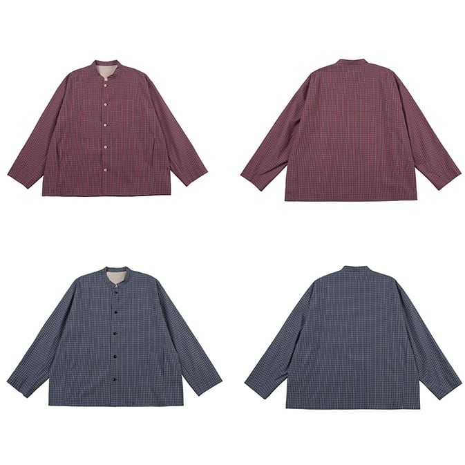 チェック柄のスタンドカラーシャツ。 紫寄りの深みあるレッドと、落ち着きのあるネイビーの2色展開で、どちらも大人っぽい雰囲気に仕上がっています。 スタンドカラーがすっきりとした印象をつくり、ゆったりとしたシルエットが抜け感のある着こなしを演出。 腰元のスリットポケットもポイントになっています。 シティカジュアルにも休日のリラックススタイルにも合わせやすい、一枚で存在感を放つシャツです。 ■ color レッド ネイビー ■ material コットン ■ size M / L / XL M :肩幅55cm 袖丈59cm 胸囲138cm 着丈76cm L :肩幅57cm 袖丈60cm 胸囲142cm 着丈78cm XL :肩幅59cm 袖丈61cm 胸囲146cm 着丈80cm ※採寸方法により多少の誤差がある場合がございます ■モデル身長:178cm ■着用サイズ : XL [ 商品管理番号:a-1247] 【お買い物にあたっての注意事項】 ご購入前にこちらをご覧ください。 https://store.path-online.shop/about ▶<PATH>TOP PAGEから、新商品やお得な情報をチェック! https://store.path-online.shop/ ▶【Instagram】公式インスタグラムページはこちら。 https://www.instagram.com/path_official_jp/