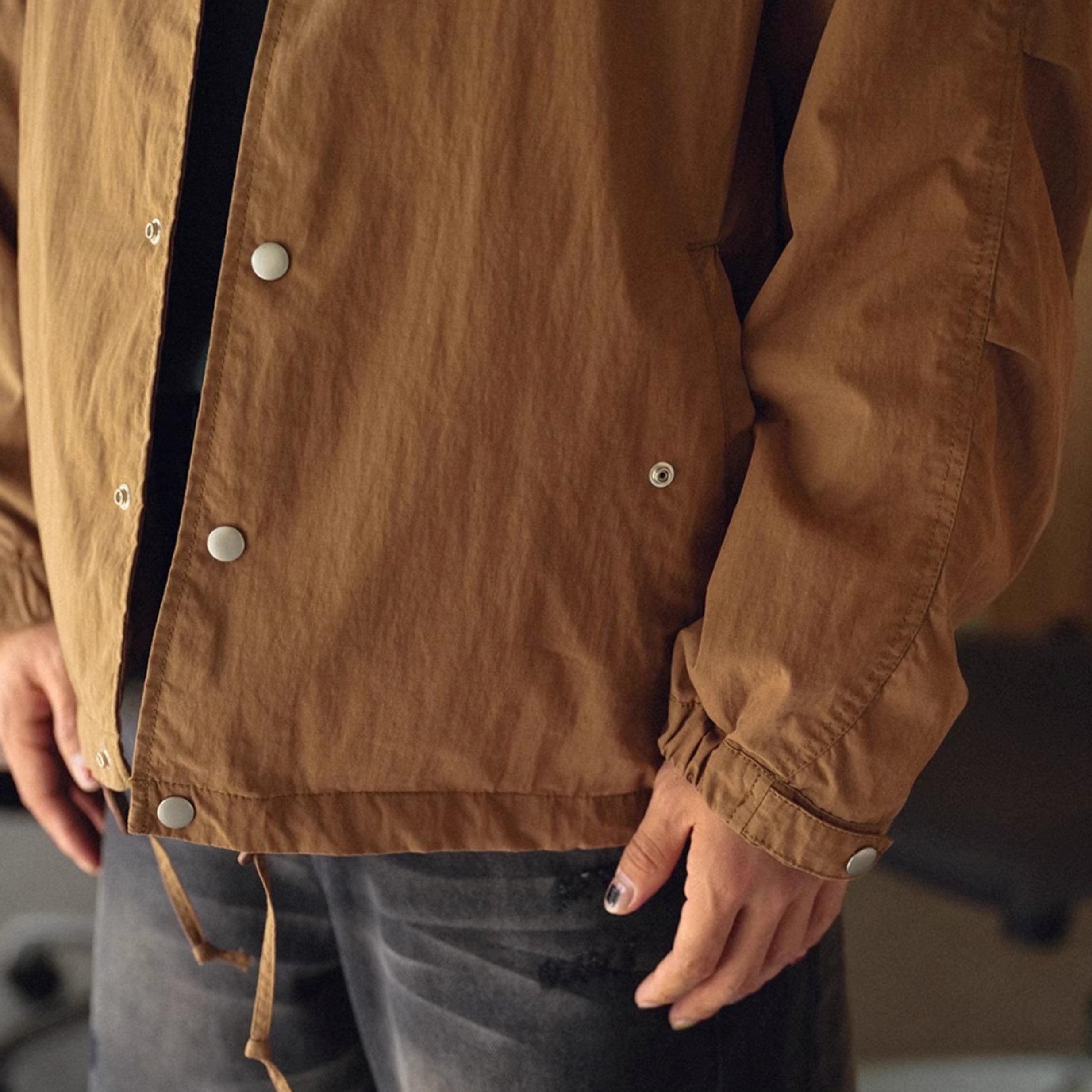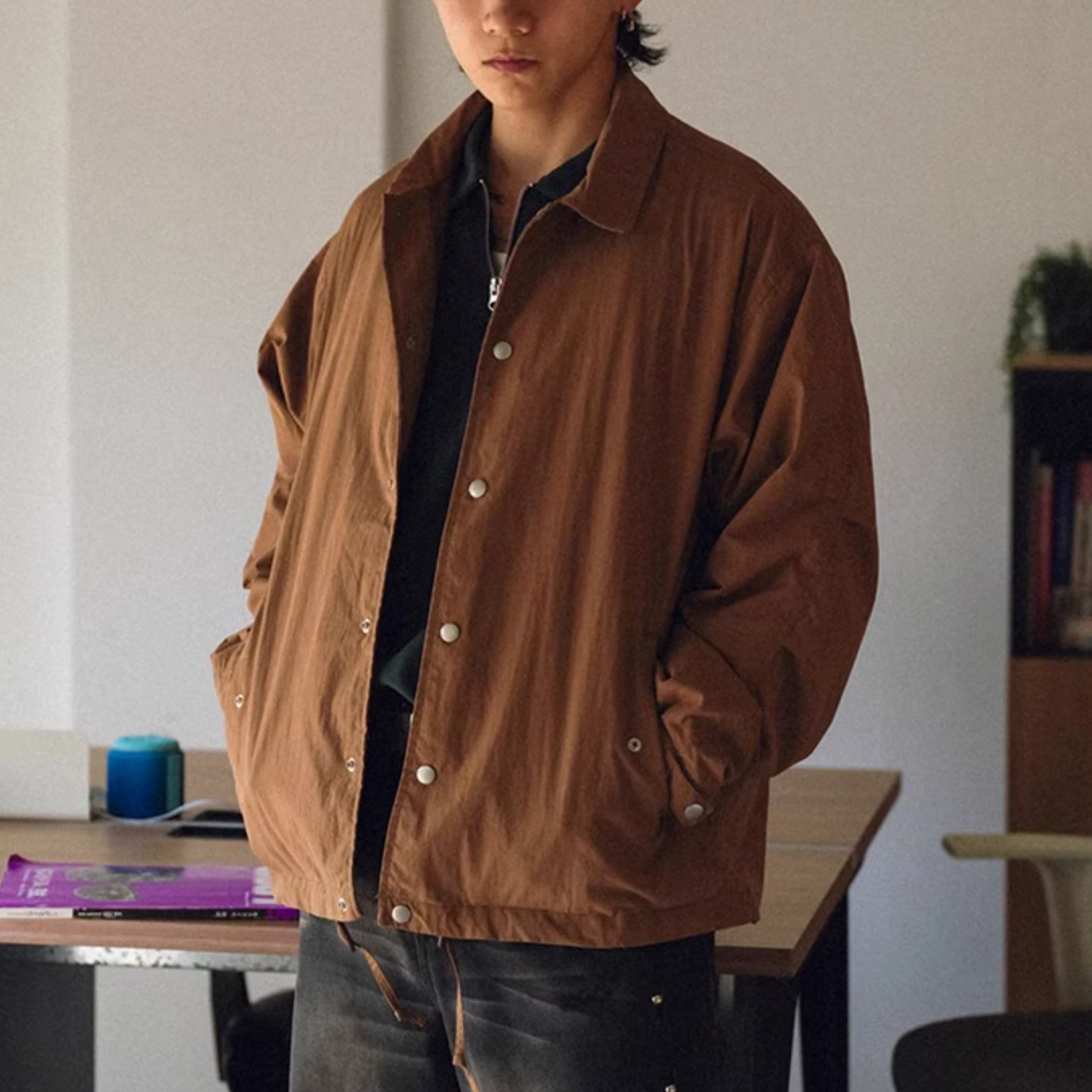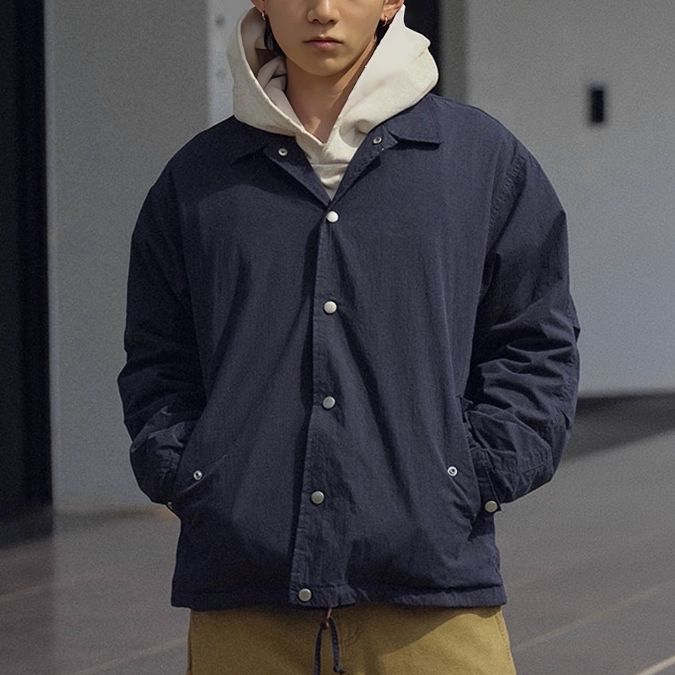 シンプルで使い勝手の良いワイドシルエットコーチジャケット。 ゆったりとしたシルエットで抜け感があり、カジュアルスタイルに自然に馴染む一枚です。 袖口はギャザー入りで程よいボリュームを生み、全体のバランスに奥行きをプラス。 フロントはボタン留めでクラシックな表情に仕上げ、裾のドローストリングでシルエット調整も可能です。 都会的なラフさと実用性を両立した万能なアイテム。 ■ color ネイビー グレー ブラウン ■ material ナイロン コットン ■ size S / M / L / XL / 2XL S:着丈72cm 胸囲116cm 肩幅51cm 袖丈57cm M:着丈74cm 胸囲120cm 肩幅52cm 袖丈58cm L:着丈76cm 胸囲124cm 肩幅53cm 袖丈59cm XL:着丈78cm 胸囲128cm 肩幅54cm 袖丈60cm 2XL:着丈80cm 胸囲132cm 肩幅55cm 袖丈61cm ※採寸方法により多少の誤差がある場合がございます ■モデル身長:182cm ■着用サイズ : L [ 商品管理番号:a-1253] 【お買い物にあたっての注意事項】 ご購入前にこちらをご覧ください。 https://store.path-online.shop/about ▶<PATH>TOP PAGEから、新商品やお得な情報をチェック! https://store.path-online.shop/ ▶【Instagram】公式インスタグラムページはこちら。 https://www.instagram.com/path_official_jp/