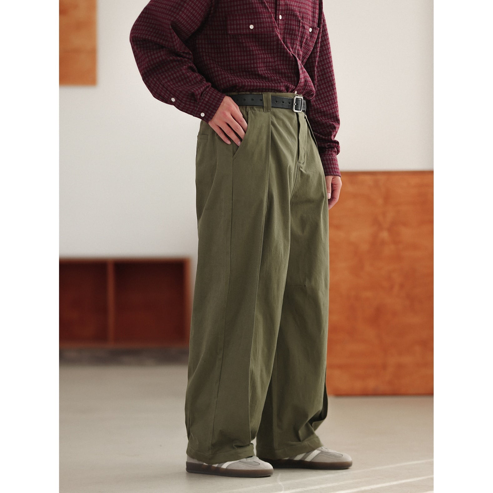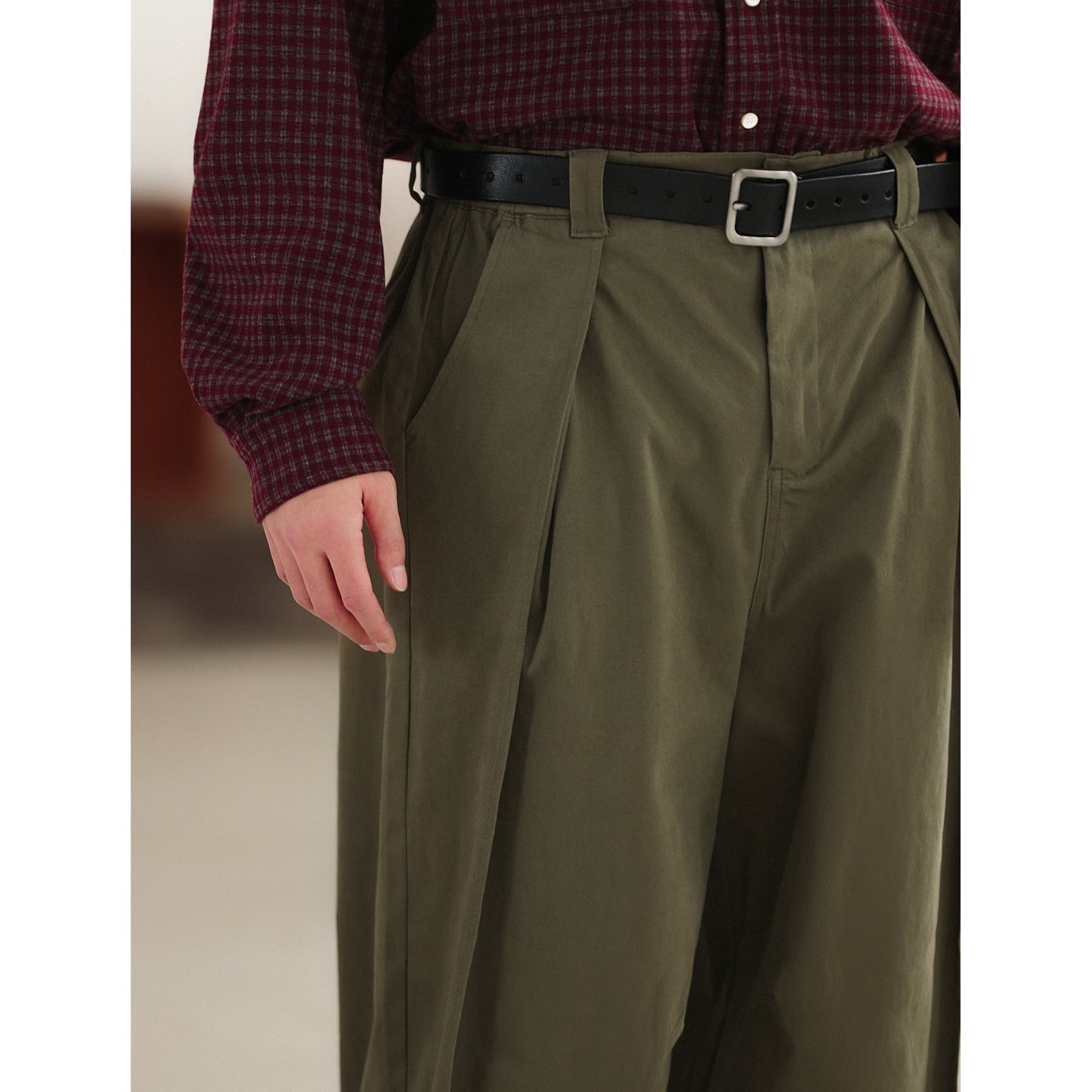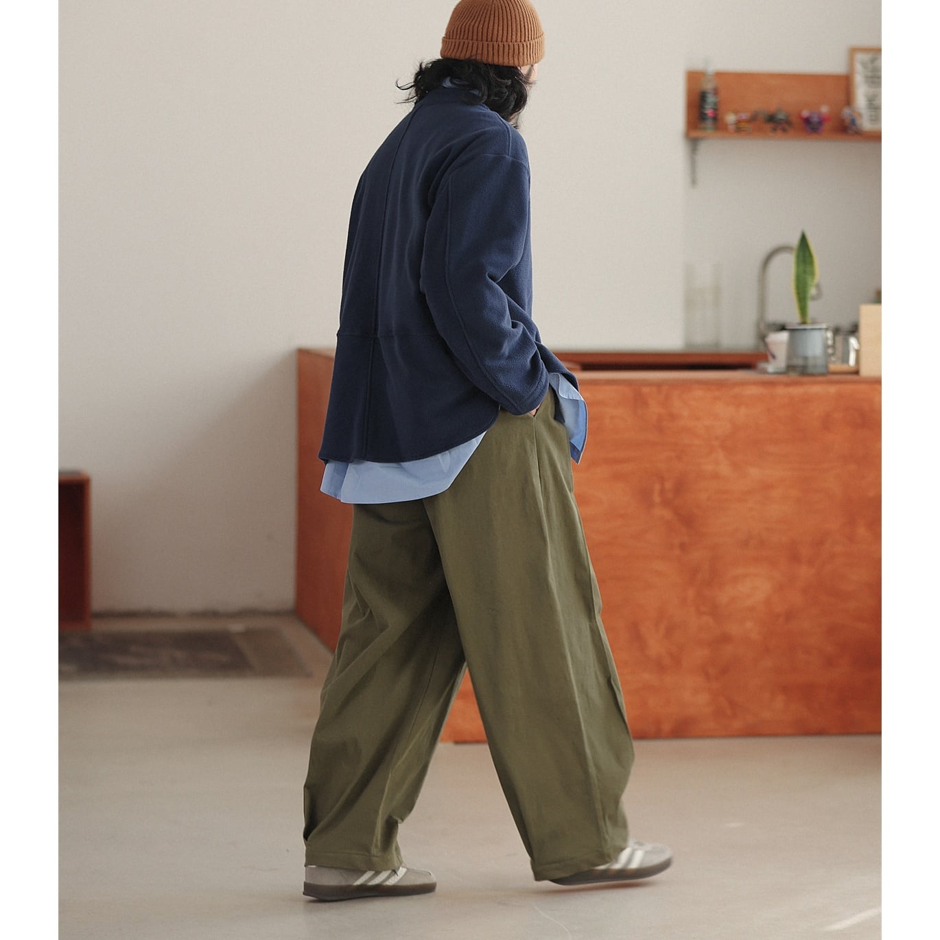 センターのプリーツデザインがポイントのワイドシルエットイージーパンツ。 ウエストは伸縮性のある仕様でリラックスした穿き心地を保ちながら、ベルトループも備えているため、ラフさときちんと感を両立できます。 落ち着いた存在感のあるデザインが、スウェットやシャツとの組み合わせを都会的にまとめてくれる一本です。 ■ color ブラウン グリーン ■ material コットン ポリエステル ■ size S / M / L / XL S :ウエスト78–92cm ヒップ122cm 総丈100cm M :ウエスト82–96cm ヒップ126cm 総丈102cm L :ウエスト86–100cm ヒップ130cm 総丈104cm XL :ウエスト90–104cm ヒップ134cm 総丈106cm ※採寸方法により多少の誤差がある場合がございます ■モデル身長:178cm ■着用サイズ : XL [ 商品管理番号:a-1258] 【お買い物にあたっての注意事項】 ご購入前にこちらをご覧ください。 https://store.path-online.shop/about ▶<PATH>TOP PAGEから、新商品やお得な情報をチェック! https://store.path-online.shop/ ▶【Instagram】公式インスタグラムページはこちら。 https://www.instagram.com/path_official_jp/