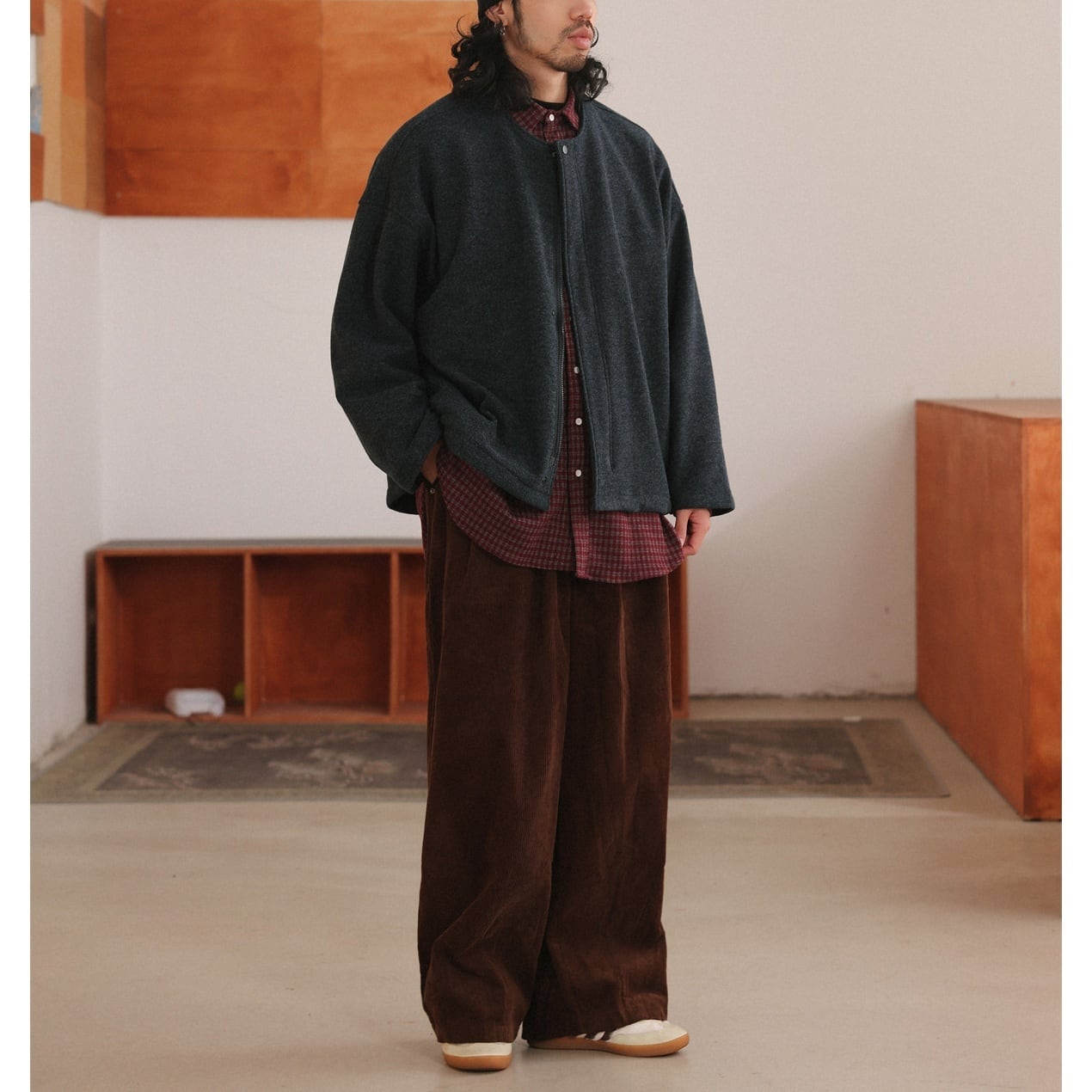 ドロップショルダーのリラックス感が漂うノーカラージャケット。 ラウンドネックと無地の構成でシンプルにまとめつつ、ジップとボタンの二重構造で開閉できる実用的な仕様を備えています。 ウール風の生地を使用したブラウンとネイビーの2色展開で、落ち着いたトーンが都会的なムードを演出。 幅広いスタイリングに馴染む、汎用性の高い一着です。 ■ color ブラウン ネイビー ■ material ビスコース ポリエステル スパンデックス ■ size S / M / L / XL S :肩幅69cm 袖丈50.5cm 胸囲146cm 着丈75.5cm M :肩幅70cm 袖丈51.5cm 胸囲150cm 着丈77.5cm L :肩幅71cm 袖丈52.5cm 胸囲154cm 着丈79.5cm XL :肩幅72cm 袖丈53.5cm 胸囲158cm 着丈81.5cm ※採寸方法により多少の誤差がある場合がございます ■モデル身長:178cm ■着用サイズ : XL [ 商品管理番号:a-1268] 【お買い物にあたっての注意事項】 ご購入前にこちらをご覧ください。 https://store.path-online.shop/about ▶<PATH>TOP PAGEから、新商品やお得な情報をチェック! https://store.path-online.shop/ ▶【Instagram】公式インスタグラムページはこちら。 https://www.instagram.com/path_official_jp/