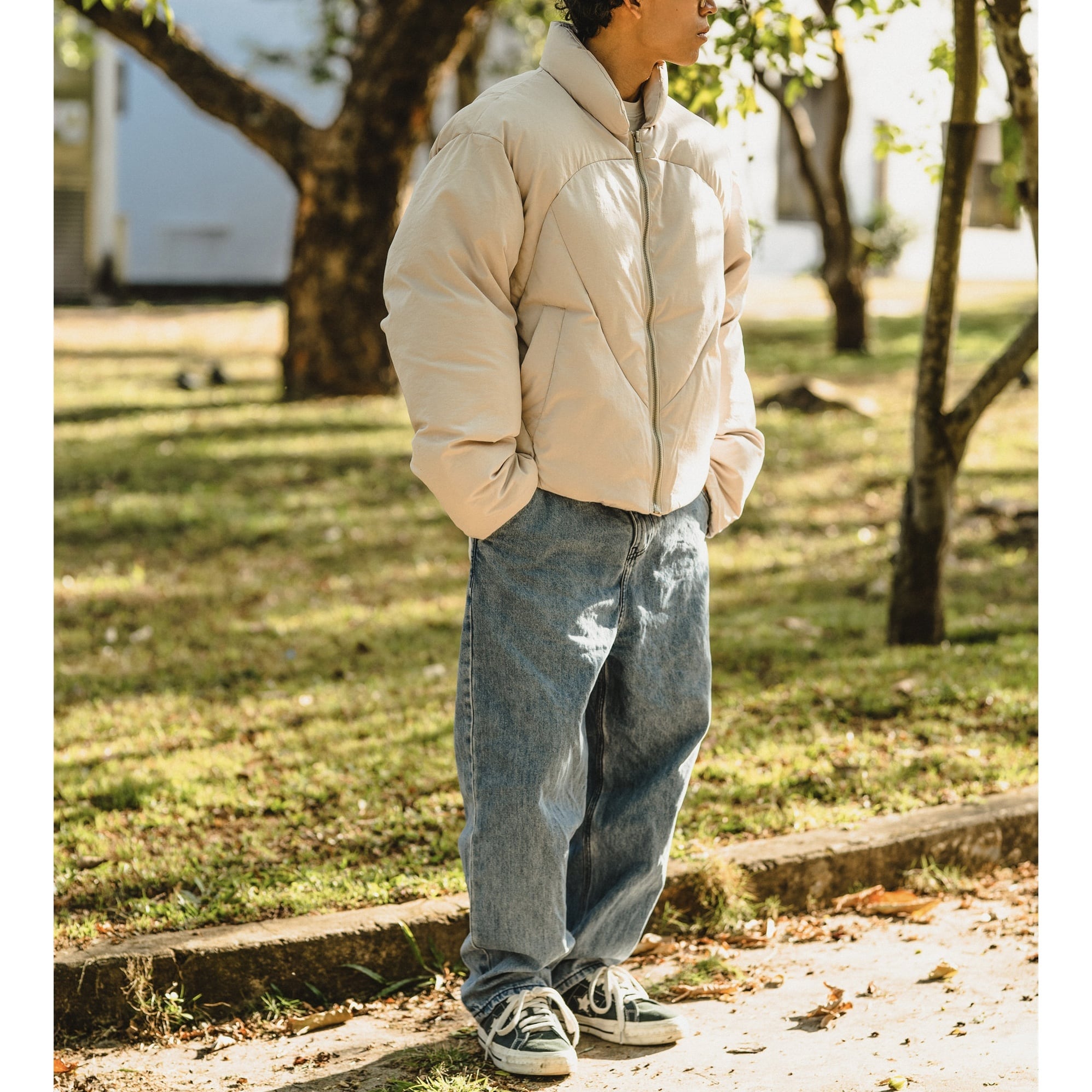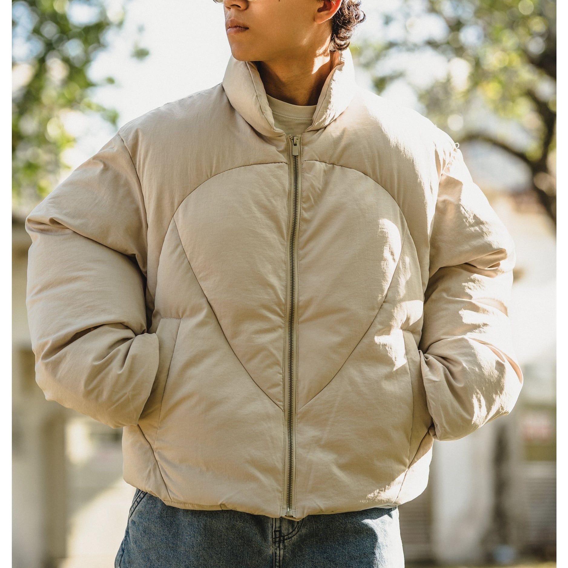 ショート丈の中綿入りアウター。 デザイン性のあるステッチによってシンプルながら存在感のある仕上がり。 カラーはブラックとベージュの2色展開。 都会的なスタイルにもカジュアルな着こなしにも馴染み、コンパクトな丈感がバランスよくスタイリングを整えてくれます。 ■ color ブラック ベージュ ■ material 生地:ポリエステル 中綿:コットン ■ size M / L / XL / 2XL M :肩幅55cm 袖丈61cm 胸囲132cm 着丈65cm L :肩幅56cm 袖丈63cm 胸囲134cm 着丈67cm XL :肩幅57cm 袖丈65cm 胸囲136cm 着丈69cm 2XL :肩幅58cm 袖丈67cm 胸囲138cm 着丈71cm ※採寸方法により多少の誤差がある場合がございます [ 商品管理番号:a-1274] 【お買い物にあたっての注意事項】 ご購入前にこちらをご覧ください。 https://store.path-online.shop/about ▶<PATH>TOP PAGEから、新商品やお得な情報をチェック! https://store.path-online.shop/ ▶【Instagram】公式インスタグラムページはこちら。 https://www.instagram.com/path_official_jp/
