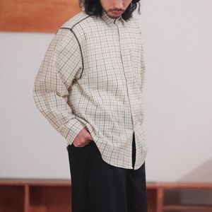 ブラックチェック ステッチデザイン ワイドフォルムシャツ a-1281