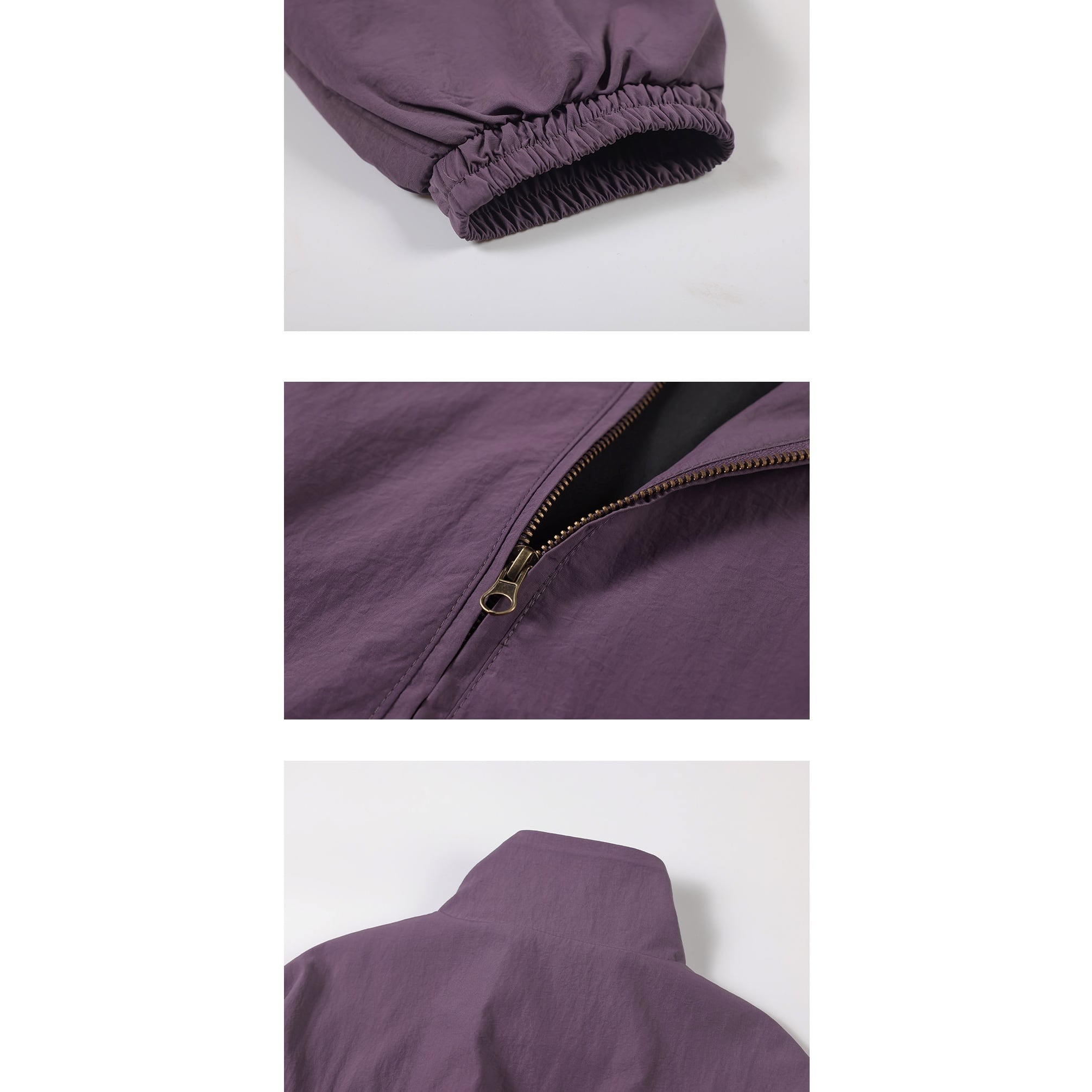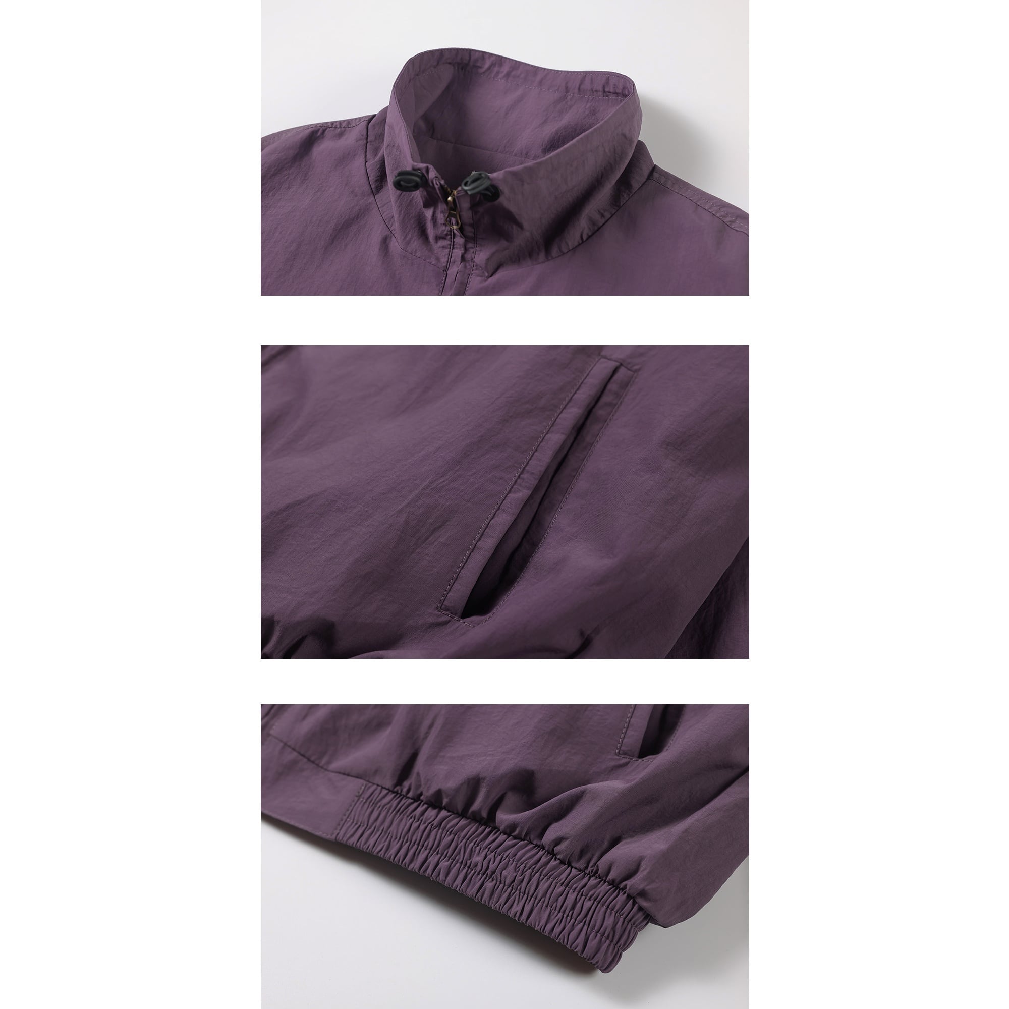 高めのスタンドカラーには調整用のドローコードを備え、ジップを上まで閉めれば首元をしっかり包み込みます。