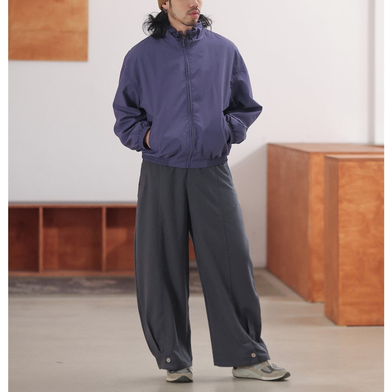 オーバーサイズのボリューム感が際立つスイングトップブルゾン。