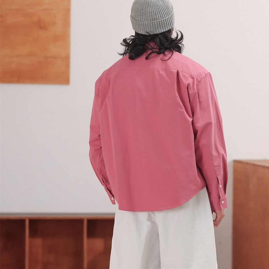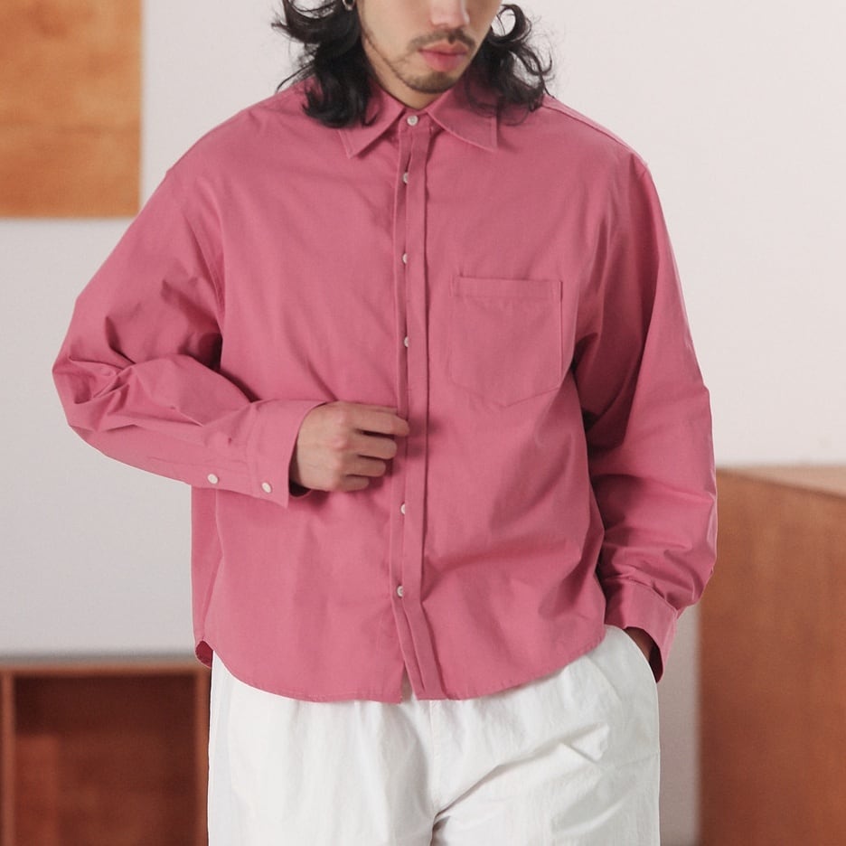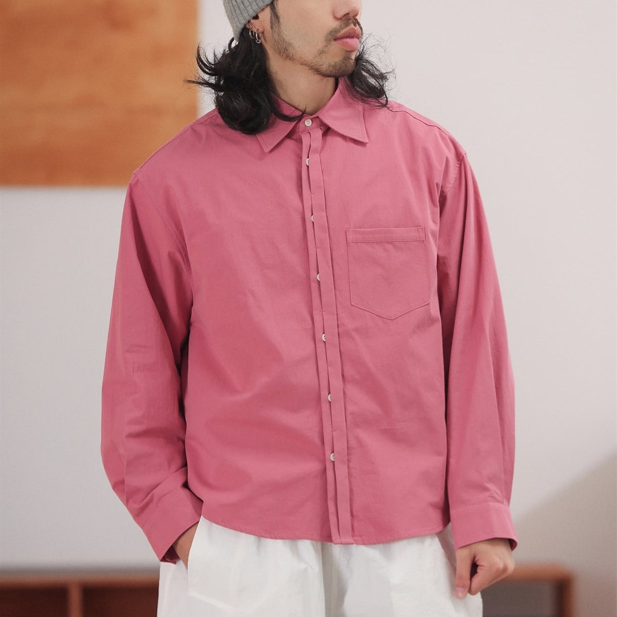左胸にはフラップなしのシンプルなポケットを1つ配置し、無地シャツの上品さを保ちながらさりげないアクセントに。