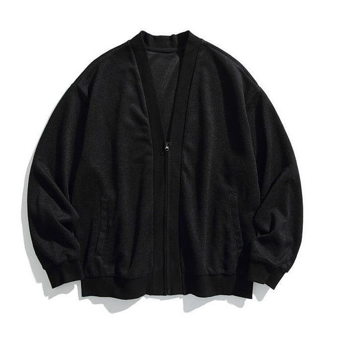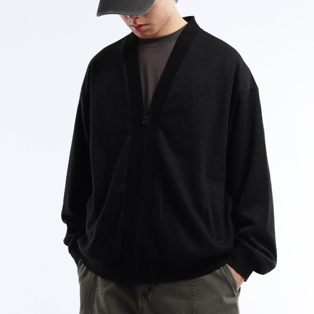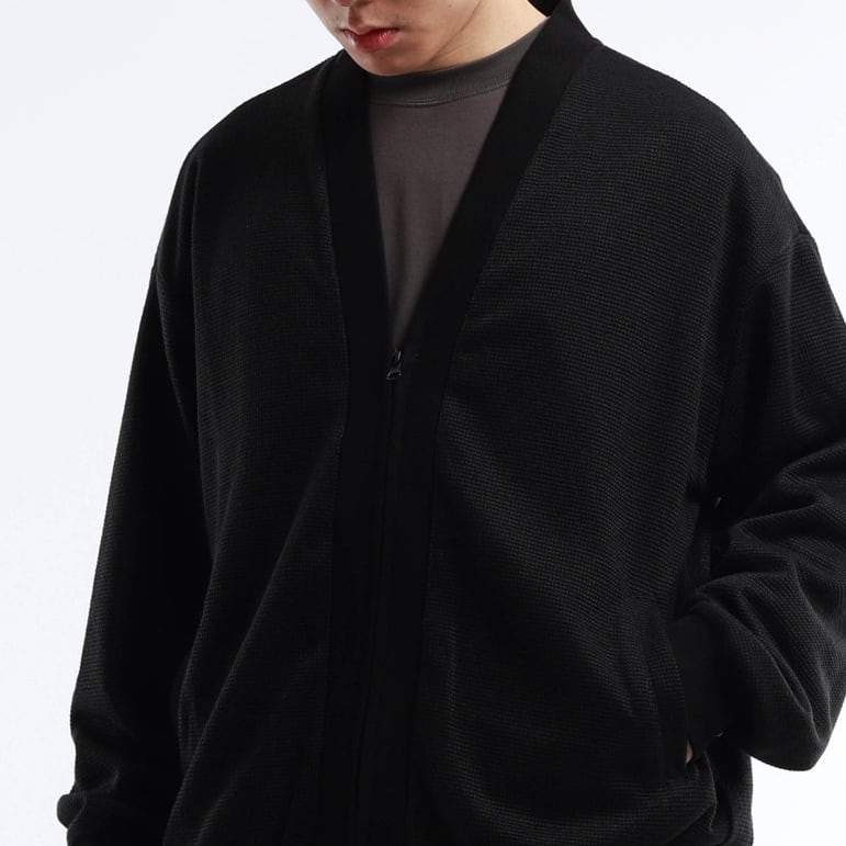 ワイドフォルム ワッフル ジップカーディガン a-1311