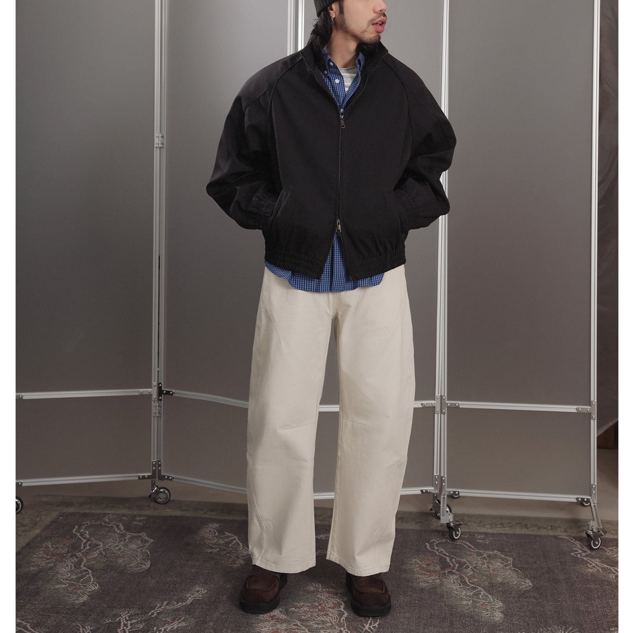 やや短めの丈感でボトムスとのバランスも取りやすく、Tシャツやシャツの上にさっと羽織るだけでこなれた印象に仕上がるアイテムです。