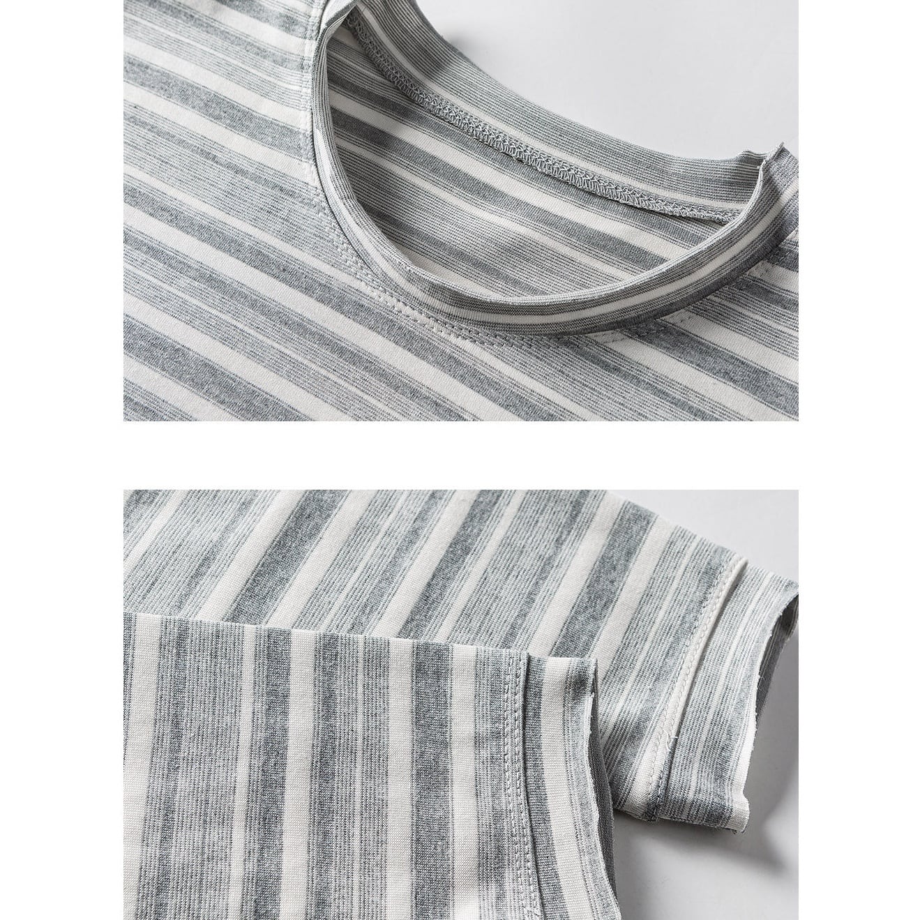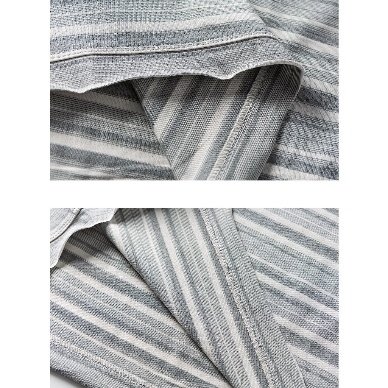 カットオフデザイン グレーストライプ カットソー a-1320
