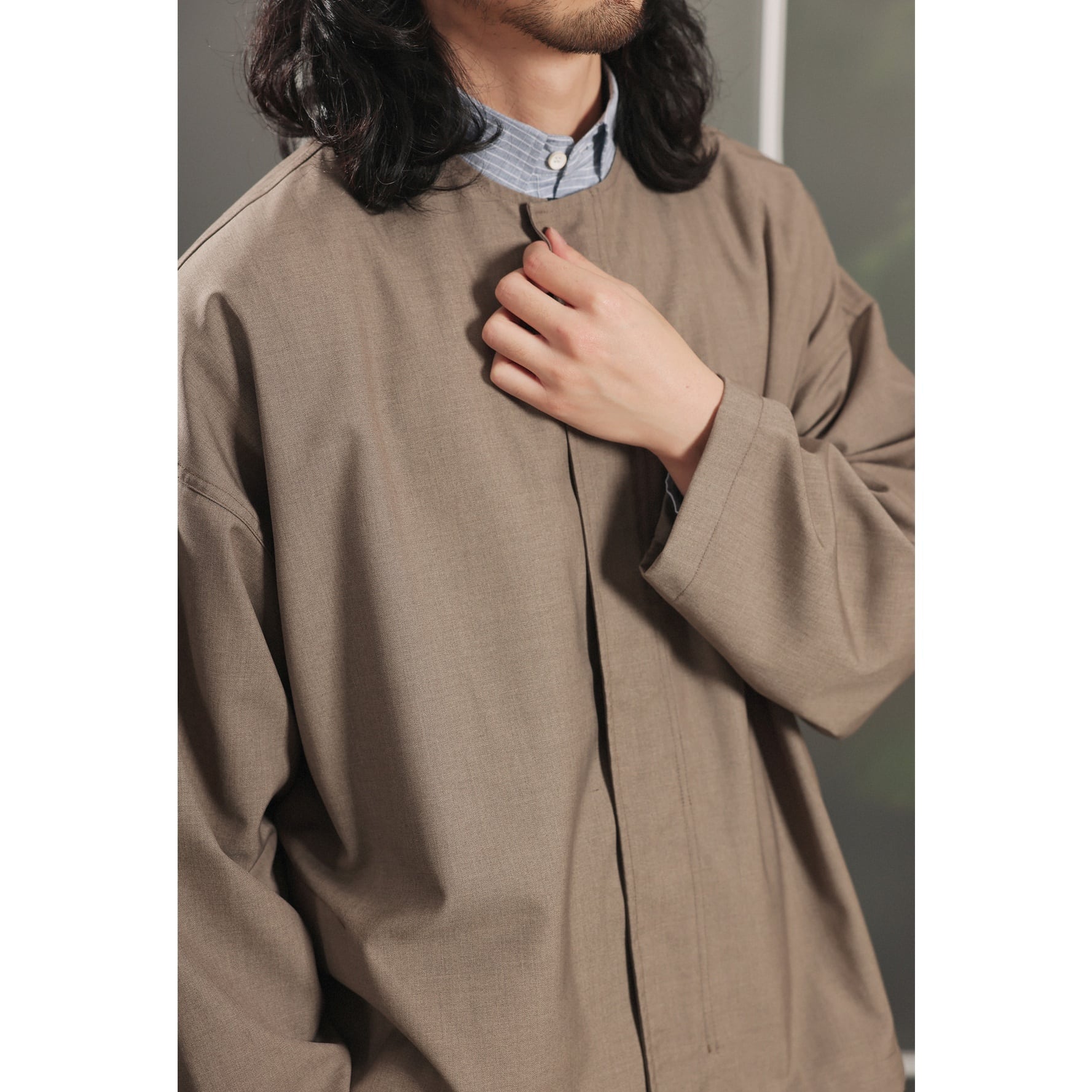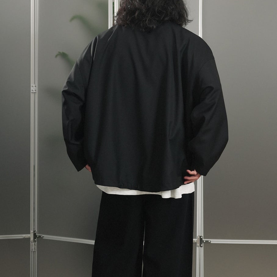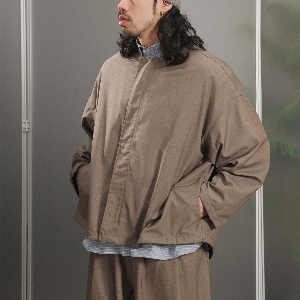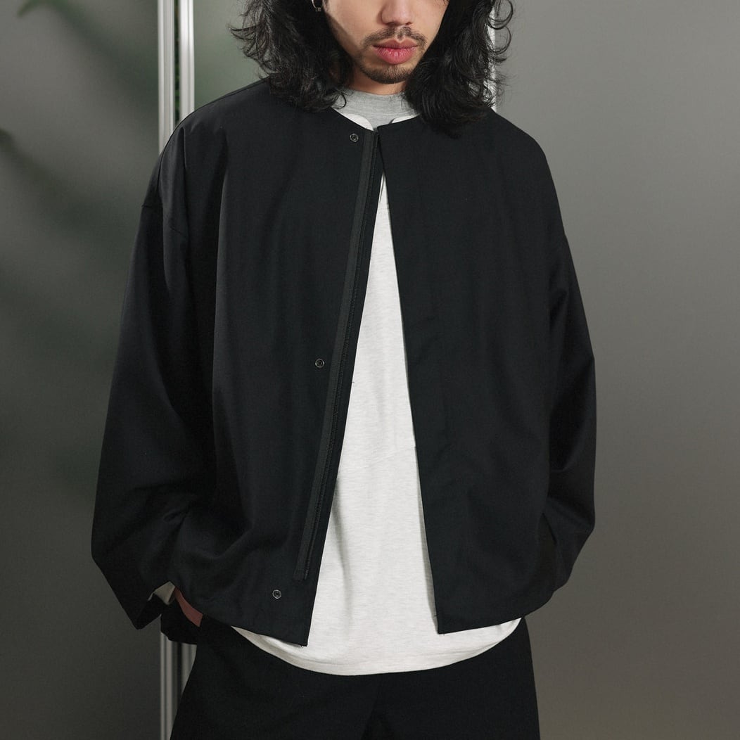 ノーカラーデザインですっきりとした印象のジップジャケット。
