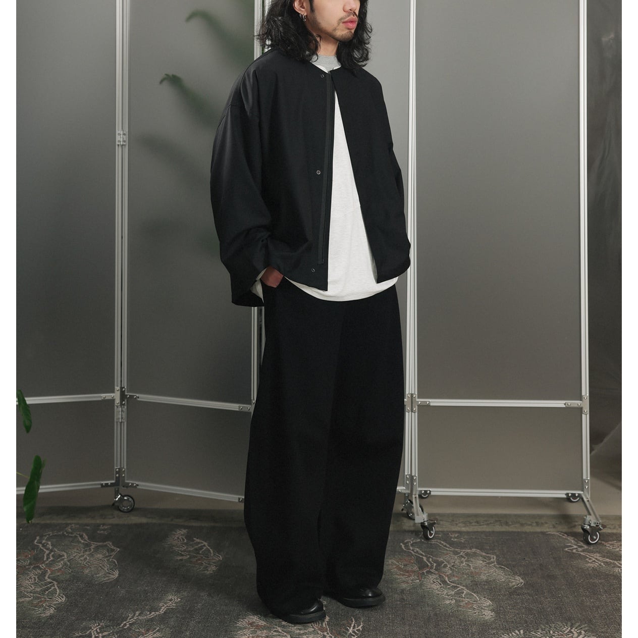 ワイドシルエットのトップスを合わせたスタイリングがオススメです。
