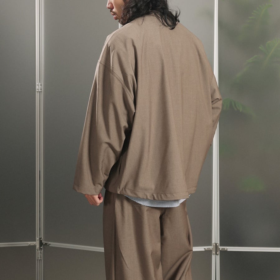 肩を落としたドロップショルダーとゆとりのあるルーズシルエットで、カジュアルからきれいめまで幅広いコーデに合わせやすい、ライトアウターとして活躍する一着です。