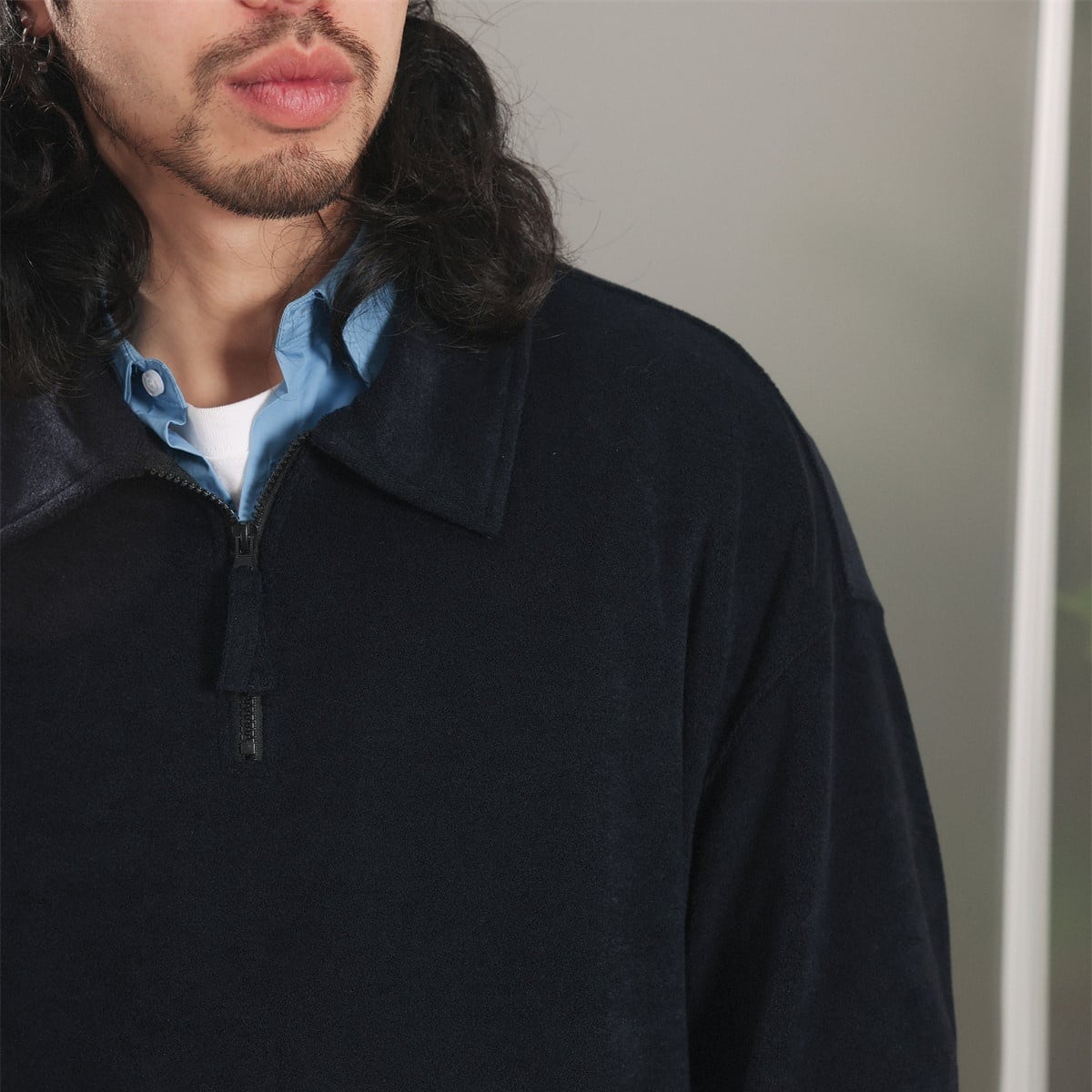 ハーフジップデザインがアクセントになったポロプルオーバー。