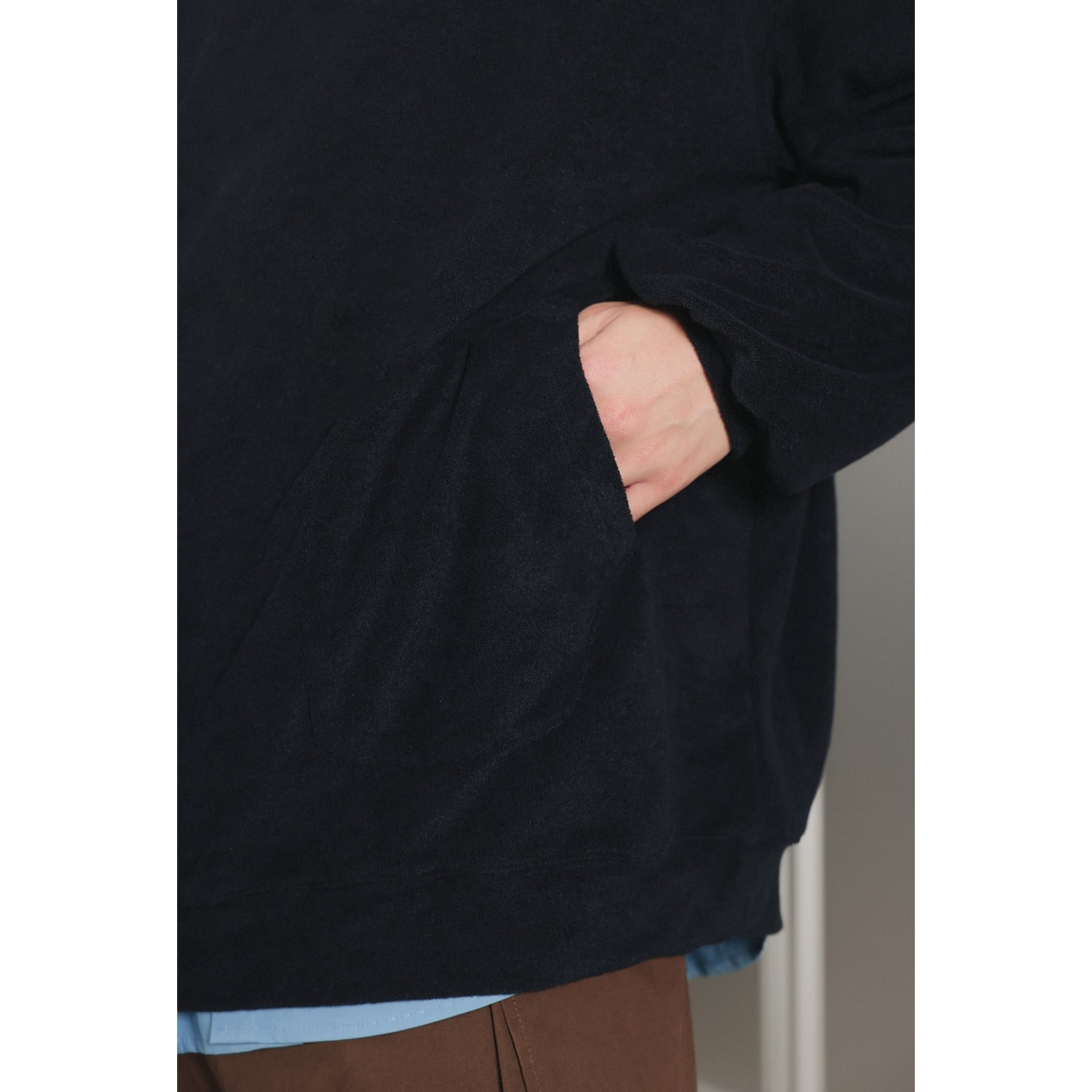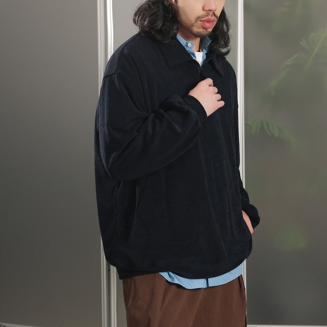 軽めのフリースの様な素材感で、Tシャツやシャツとの重ね着にもおすすめです。