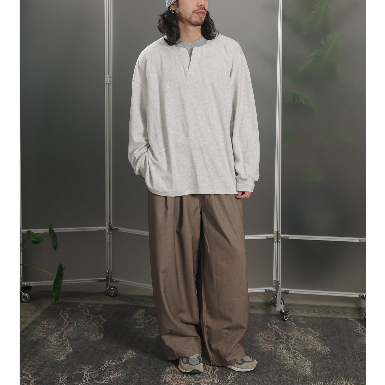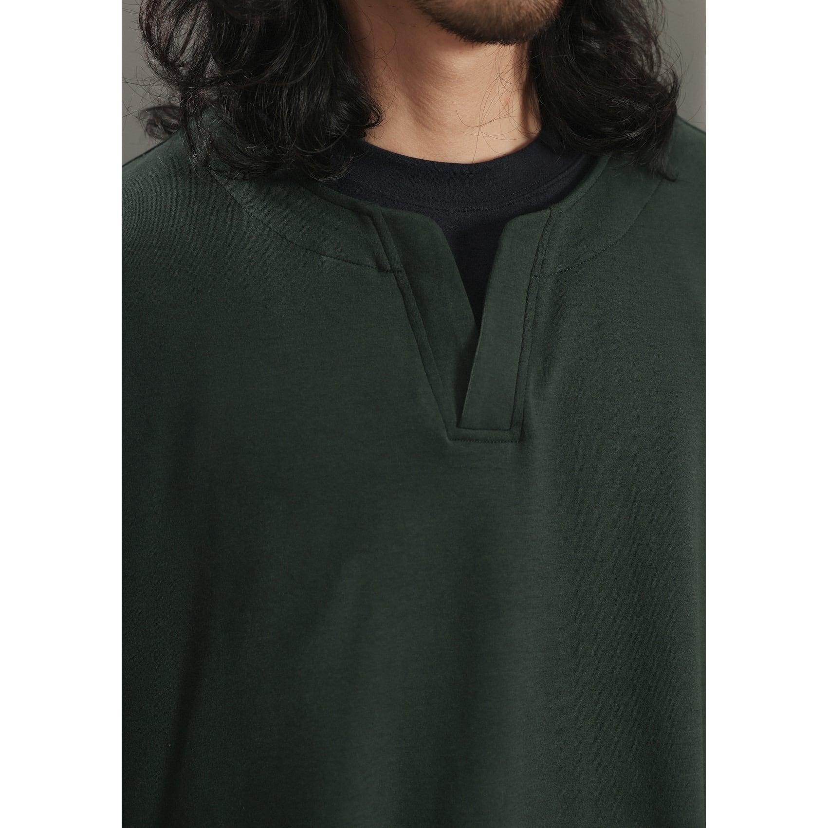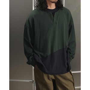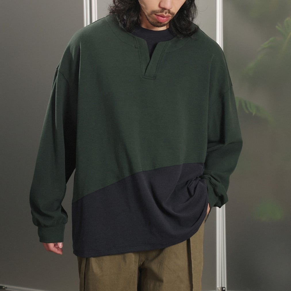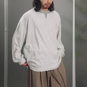 中央に浅い切れ込みがあるヘンリーネックがアクセントになった、軽めのスウェットカットソー。