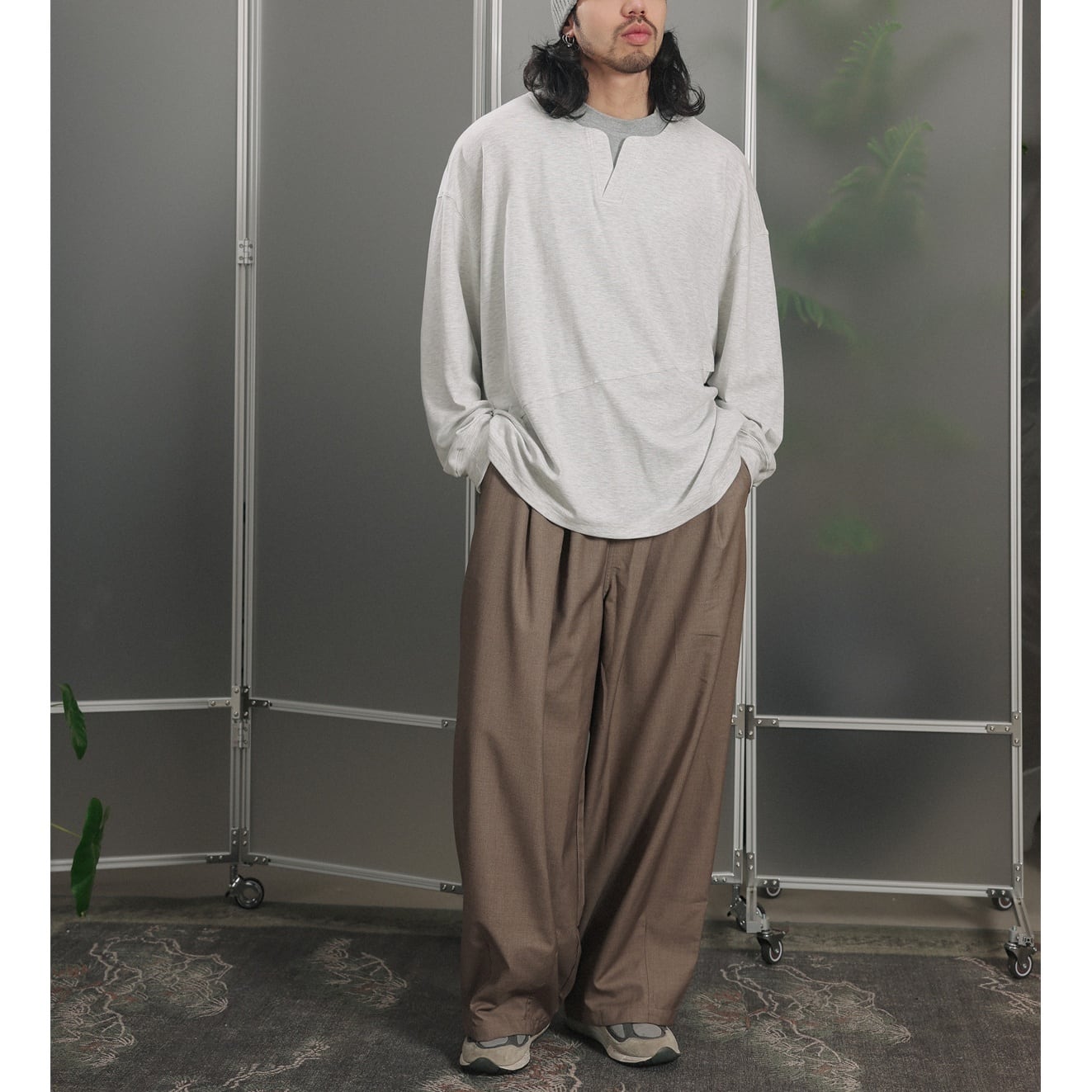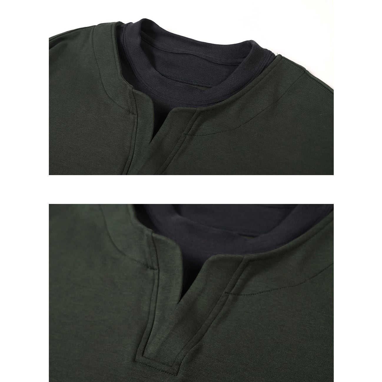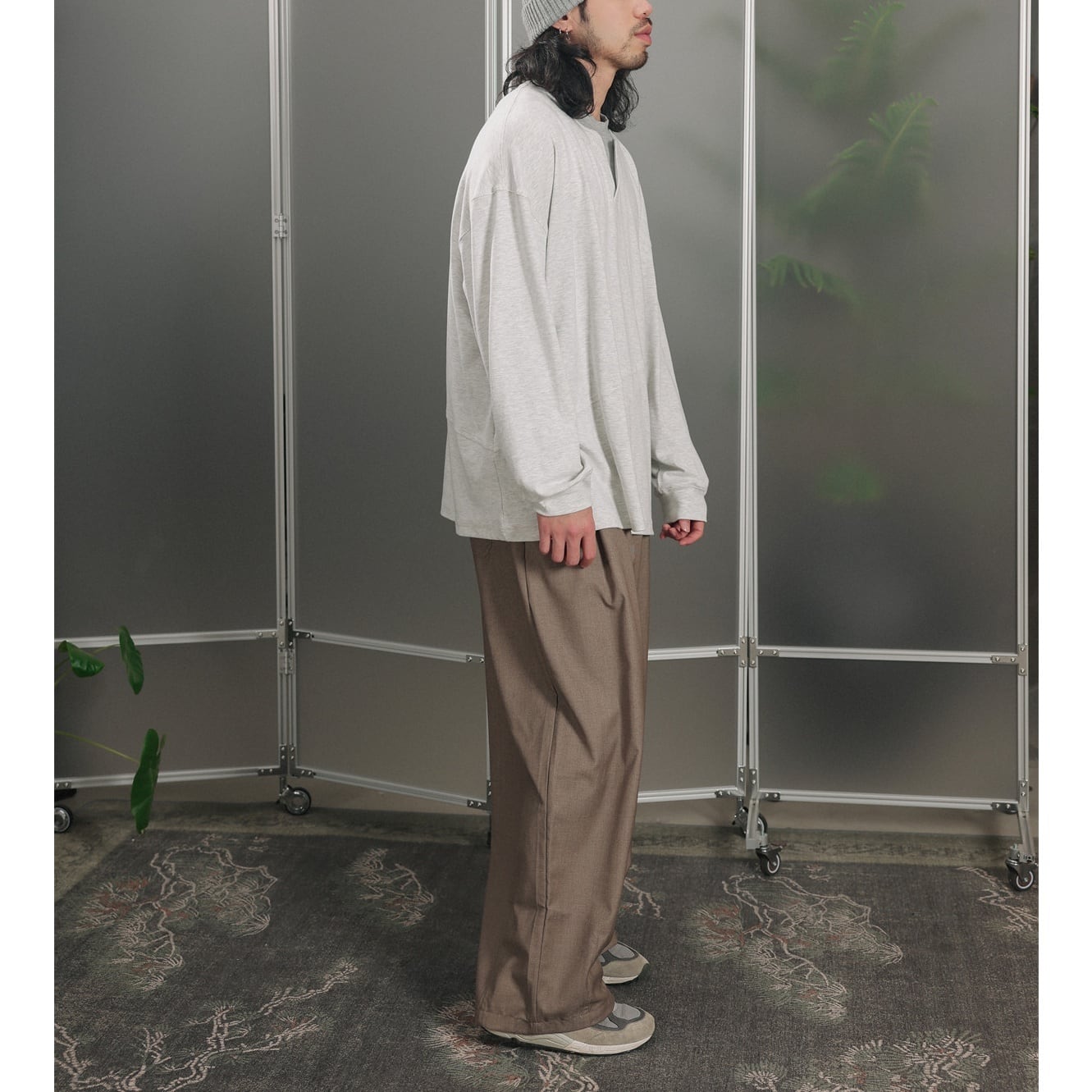 中央に浅い切れ込みがあるヘンリーネックがアクセントになった、軽めのスウェットカットソー。