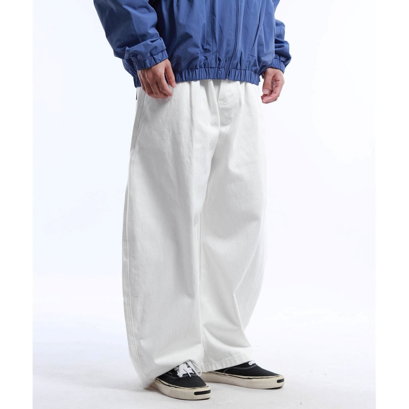 ゆったりとしたワイドシルエットに加え、カーブを描いたラインが特徴で、トレンド感のあるスタイリングを演出します。
