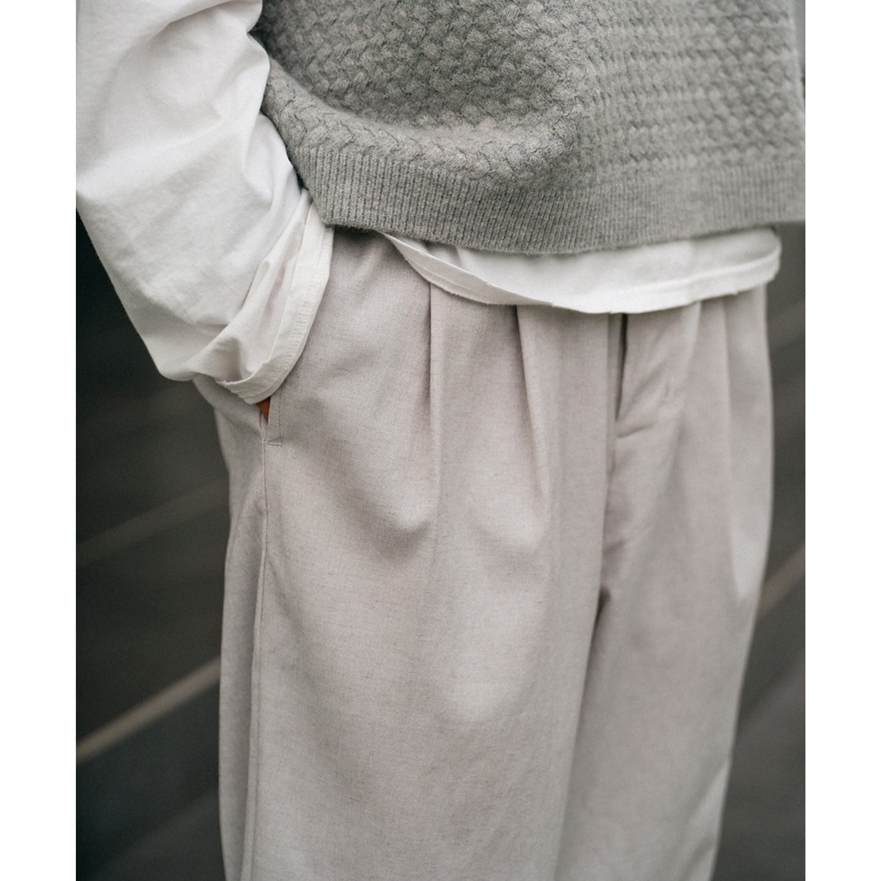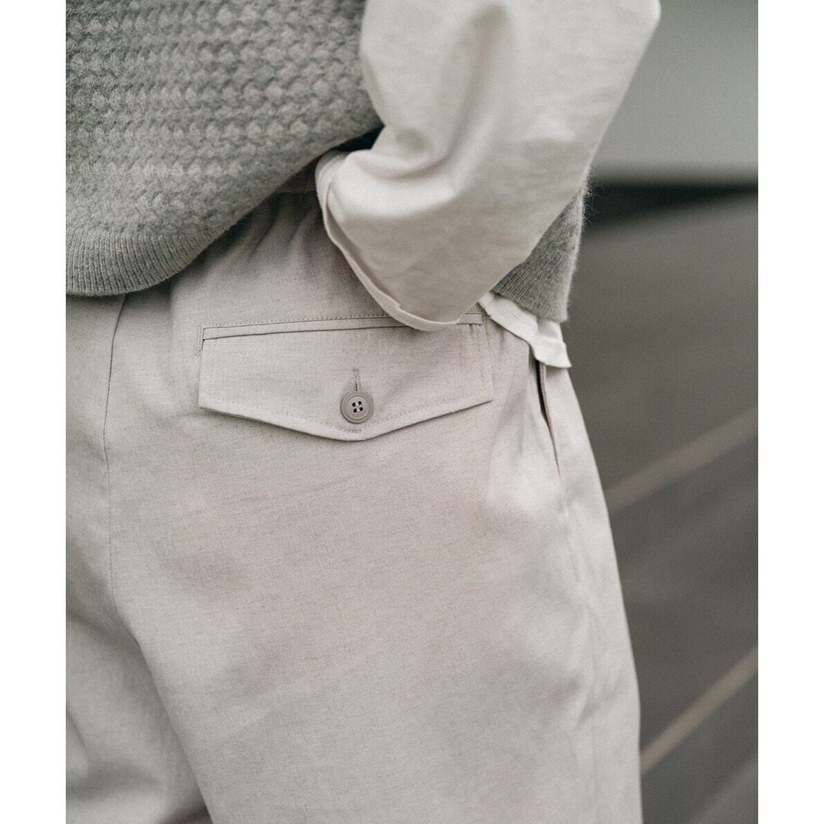 フロントにプリーツを入れることで、ラフさの中にも程よい端正さをプラスしています。