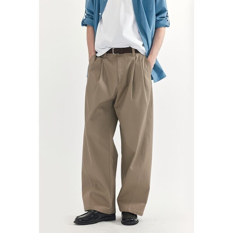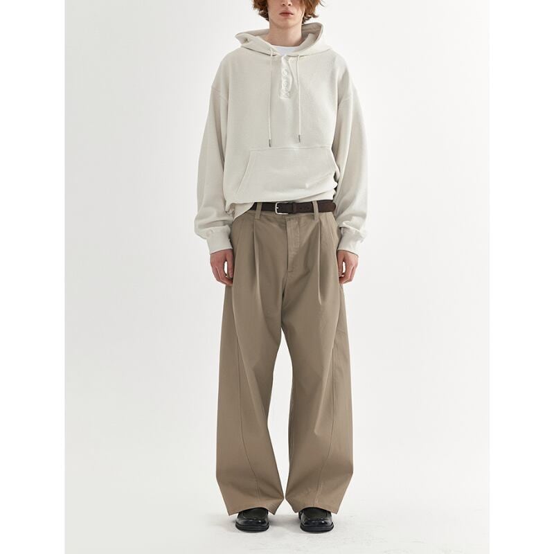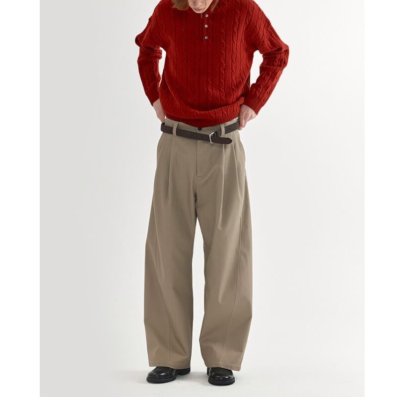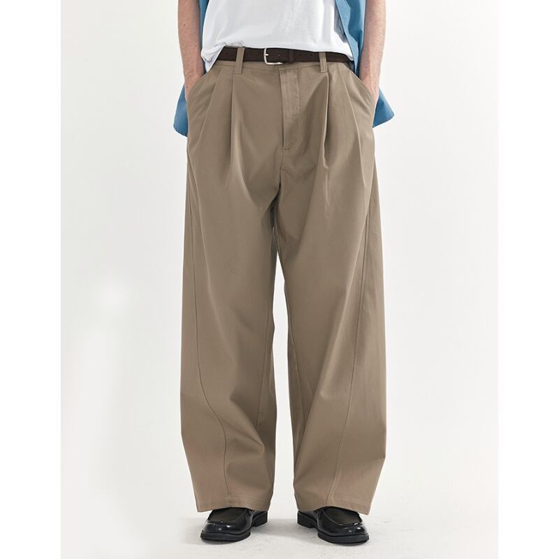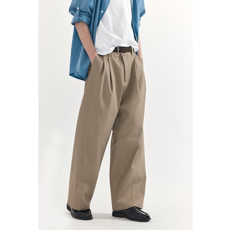 タックが入ったワイドシルエットのチノトラウザーズパンツ。